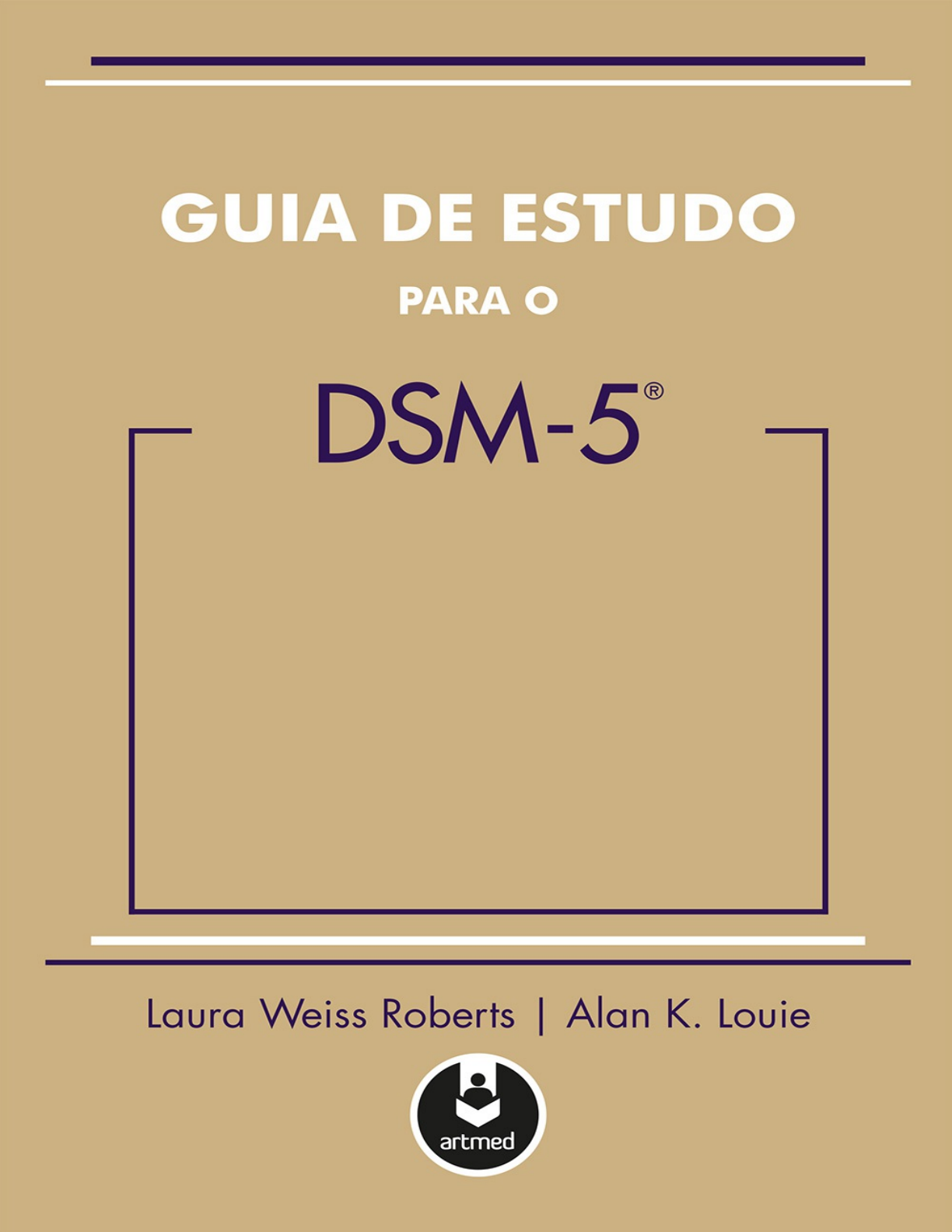 <p>Aviso</p><p>Todo esforço foi feito para garantir a qualidade</p><p>editorial desta obra, agora em versão digital.</p><p>Destacamos, contudo, que diferenças na</p><p>apresentação do conteúdo podem ocorrer em</p><p>função das características técnicas específicas de</p><p>cada dispositivo de leitura.</p><p>Nota</p><p>A medicina é uma ciência em constante evolução. À medida que novas</p><p>pesquisas e a própria experiência clínica ampliam o nosso</p><p>conhecimento, são necessárias modificações na terapêutica, onde</p><p>também se insere o uso de medicamentos. Os autores desta obra</p><p>consultaram as fontes consideradas confiáveis, num esforço para</p><p>oferecer informações completas e, geralmente, de acordo com os</p><p>padrões aceitos à época da publicação. Entretanto, tendo em vista a</p><p>possibilidade de falha humana ou de alterações nas ciências médicas, os</p><p>leitores devem confirmar estas informações com outras fontes. Por</p><p>exemplo, e em particular, os leitores são aconselhados a conferir a bula</p><p>completa de qualquer medicamento que pretendam administrar, para se</p><p>certificar de que a informação contida neste livro está correta e de que</p><p>não houve alteração na dose recomendada nem nas precauções e</p><p>contraindicações para o seu uso. Essa recomendação é particularmente</p><p>importante em relação a medicamentos introduzidos recentemente no</p><p>mercado farmacêutico ou raramente utilizados.</p><p>Tradução:</p><p>Régis Pizzato</p><p>Revisão técnica:</p><p>Neury José Botega</p><p>Psiquiatra. Professor Titular do Departamento de Psicologia Médica e</p><p>Psiquiatria da</p><p>Faculdade de Ciências Médicas da Universidade Estadual de Campinas.</p><p>Versão impressa desta edição: 2017</p><p>2017</p><p>Obra originalmente publicada nos Estados Unidos por American Psychiatric</p><p>Publishing, uma Divisão da American Psychiatric Association, Arlington,</p><p>VA.</p><p>Copyright © 2015. Todos os direitos reservados.</p><p>ISBN 9781585624645</p><p>First published in the United States by American Psychiatric Association</p><p>Publishing, a Division of American Psychiatric Association, Arlington, VA.</p><p>Copyright © 2015. All rights reserved.</p><p>First published in Brazil by Artmed Editora Ltda., a Grupo A Educação S.A.</p><p>company, in Portuguese. Artmed Editora Ltda. is the exclusive publisher of</p><p>Study Guide to DSM-5, first edition, (Copyright © 2015) authored by Laura</p><p>Weiss Roberts, M.D., M.A., and Alan K. Louie, M.D. in Portuguese for</p><p>distribution in Brazil only.</p><p>Permission for use of any material in the translated work must be authorized</p><p>in writing by Artmed Editora Ltda.</p><p>The American Psychiatric Association played no role in the translation of this</p><p>publication from English to the Portuguese language and is not responsible</p><p>for any errors, omissions, or other possible defects in the translation of the</p><p>publication.</p><p>Tradução em língua portuguesa por Artmed Editora Ltda., uma empresa</p><p>Grupo A Educação S.A.</p><p>Artmed Editora Ltda. é a editora exclusiva desta obra de autoria de Laura</p><p>Weiss Roberts, M.D., M.A. e Alan K. Louie, M.D. em língua portuguesa para</p><p>distribuição exclusiva no território brasileiro.</p><p>Permissão para utilização de quaisquer materiais desta obra deve ser obtida</p><p>exclusivamente com Artmed Editora Ltda. por escrito.</p><p>Gerente editorial – Biociências: Letícia Bispo de Lima</p><p>Colaboraram nesta edição:</p><p>Coordenadora editorial: Cláudia Bittencourt</p><p>Capa sobre arte original: Kaéle Finalizando Ideias</p><p>Preparação de originais: Camila Wisnieski Heck</p><p>Editoração: Techbooks</p><p>Produção digital: Loope | www.loope.com.br</p><p>R643g Roberts, Laura Weiss.</p><p>Guia de estudo para o DSM-5 [recurso eletrônico] / Laura Weiss Roberts, Alan K. Louie ;</p><p>tradução: Régis Pizzato ; revisão técnica: Neury José Botega. – Porto Alegre : Artmed, 2017.</p><p>e-PUB.</p><p>Editado como livro impresso em 2017.</p><p>ISBN 978-85-8271-400-3</p><p>1. Psiquiatria. I. Louie, Alan K. II. Título.</p><p>CDU 616.89</p><p>Catalogação na publicação: Poliana Sanchez de Araujo – CRB 10/2094</p><p>Reservados todos os direitos de publicação, em língua portuguesa, à</p><p>ARTMED EDITORA LTDA., uma empresa do GRUPO A EDUCAÇÃO</p><p>S.A.</p><p>Av. Jerônimo de Ornelas, 670 – Santana</p><p>90040-340 Porto Alegre RS</p><p>Fone: (51) 3027-7000 Fax: (51) 3027-7070</p><p>Unidade São Paulo</p><p>Rua Doutor Cesário Mota Jr., 63 – Vila Buarque</p><p>01221-020 São Paulo SP</p><p>Fone: (11) 3221-9033</p><p>SAC 0800 703-3444 – www.grupoa.com.br</p><p>É proibida a duplicação ou reprodução deste volume, no todo ou em parte,</p><p>sob quaisquer</p><p>formas ou por quaisquer meios (eletrônico, mecânico, gravação, fotocópia,</p><p>distribuição na Web</p><p>e outros), sem permissão expressa da Editora.</p><p>http://www.loope.com.br</p><p>http://www.grupoa.com.br</p><p>Autores</p><p>Laura Weiss Roberts, M.D., M.A.</p><p>Chairman and Katharine Dexter McCormick and Stanley McCormick</p><p>Memorial Professor, Department of Psychiatry and Behavioral Sciences,</p><p>Stanford University School of Medicine, and Chief, Psychiatry Service,</p><p>Stanford Hospital and Clinics, Stanford, California; and Editor-in-Chief,</p><p>Academic Psychiatry</p><p>Alan K. Louie, M.D.</p><p>Professor, Associate Chair, and Director of Education, Department of</p><p>Psychiatry and Behavioral Sciences, Stanford University School of Medicine,</p><p>Stanford, California</p><p>Allyson C. Rosen, Ph.D.</p><p>Clinical Associate Professor (Affiliated) of Psychiatry and Behavioral</p><p>Sciences, Stanford University School of Medicine, Stanford, California;</p><p>Clinical Neuropsychologist, VA Palo Alto Health Care System, Palo Alto,</p><p>California</p><p>Ann C. Schwartz, M.D.