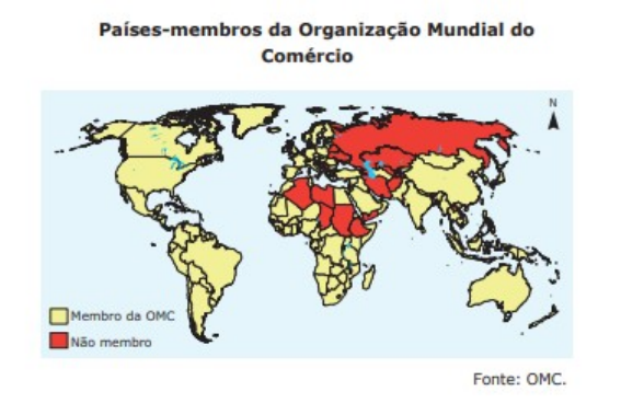 <p>CRIAÇÃO DA OMC – ORGANIZAÇÃO MUNDIAL DO COMÉRCIO</p><p>O comércio multilateral surgiu com a criação do Acordo Geral de Tarifas e Comércio (GATT, pela sigla em inglês) assinado em 1947, que foi uma reação ao excesso de protecionismo do comércio internacional, predominante no período compreendido entre as duas guerras mundiais.</p><p>Naquela época, percebia-se a necessidade de maior liberalização do comércio, existindo um consenso mundial de que uma das causas da 2.ª Guerra Mundial podia ser atribuída ao grande protecionismo comercial vigente entre 1933 e 1939 devido à crise econômica de 1929, o que resultou em uma queda de mais de 35% na produção mundial e gerou grande desemprego nos países industrializados, os quais adotaram políticas protecionistas na tentativa de salvar seus mercados internos.</p><p>Nesse contexto, começaram as discussões no intuito de se criar uma organização internacional que pudesse regulamentar o comércio internacional e que pudesse evitar os protecionismos em qualquer país.</p><p>Em 1944, na Conferência de Bretton Woods, definiram-se os princípios do sistema financeiro internacional com a criação do Fundo Monetário Internacional (FMI) e do Banco Mundial (Bird). Com a expectativa de crescimento do comércio mundial, sugeriu-se, nessa mesma conferência, a criação da Organização Internacional do Comércio (OIC), formando o tripé do sistema econômico multilateral, que disciplinaria o comércio de bens e serviços em escala mundial.</p><p>No entanto, a OIC não chegou a ser formada, pois o Senado dos EUA se negou a ratificá-la, alegando que sua criação comprometeria o comércio internacional do país. Com o impasse, a solução foi a criação de um acordo provisório e simplificado, que durou até 1995, quando foi substituído pela Organização Mundial do Comércio (OMC), como visto no mapa a seguir.</p><p>Princípios da OMC</p><p>Visando estabelecer um comércio internacional livre e transparente, a OMC possui alguns princípios básicos.</p><p>Entre eles, pode-se citar:</p><p>• Não discriminação dos países–membros: É um dos princípios mais importantes da OMC. Um país deve estender aos demais países-membros qualquer vantagem ou privilégio concedido a um deles.</p><p>• Concorrência leal: A OMC tenta garantir um comércio justo, leal e sem distorções, inibindo práticas comerciais desleais como o protecionismo, o dumping e os subsídios agrícolas ou industriais, que distorcem as condições de comércio entre os países.</p><p>• Proibição de restrições quantitativas: Impede o uso de restrições quantitativas (proibições e quotas) como meio de proteção. O único meio de proteção admitido é a tarifa, por ser o mais transparente.</p><p>• Tratamento preferencial: Não se pode tratar de forma diferenciada as mercadorias nacionais em detrimento das estrangeiras.</p><p>Os blocos econômicos apresentam alguns estágios de integração e podem ser classificados em:</p><p>• Zona de Livre Comércio (ZLC): Neste tipo de bloco, as ambições de integração são bastante limitadas. Busca-se apenas o crescimento comercial entre os países-membros com a redução ou a eliminação de vários impostos das importações e das restrições quantitativas, o que ocorre com a eliminação das barreiras tarifárias ou não tarifárias dentro do bloco. Um importante exemplo é o Nafta.</p><p>• União Aduaneira: Pode ser considerado um estágio intermediário de integração entre os países. Na união aduaneira, além de todas as características da ZLC, há a definição da TEC (Tarifa Externa Comum) com relação ao comércio com o resto do mundo. O Mercosul é um exemplo desse tipo de integração.</p><p>• Mercado Comum – Além de todas as características da união aduaneira, permite-se o livre trânsito dos meios de produção (capital, serviços e mão de obra) entre os países-membros e busca-se a unificação das legislações fiscais, monetárias, ambientais, trabalhistas, entre outras, para estabelecer um mercado realmente comum entre os países-membros. Alguns países da União Europeia, como o Reino Unido, a Dinamarca, a Bulgária, a Polônia, entre outros, estão nesse estágio de integração, pois ainda não adotaram o euro, a moeda única.</p><p>• União ou integração econômica e monetária – Além de todas as características do mercado comum, da adoção de uma moeda comum, há a criação de um Banco Central e a institucionalização de uma política monetária única para todos os países-membros. Dezesseis países da União Europeia estão nesse estágio, aqueles que adotaram o euro: França, Alemanha, Eslovênia, Chipre, entre outros.</p><p>• Integração política e institucional – Integração total entre os países-membros: ocorre quando há unificação de diversas instituições sociais, políticas, econômicas e militares. Ainda não há nenhum bloco nesse estágio. Acredita-se que a União Europeia possa ser o primeiro a atingir esse patamar de integração.</p><p>BLOCOS ECONÔMICOS</p><p>Os blocos econômicos podem ser considerados como um grande grupo de países que visam aumentar as trocas comerciais regionais. Surgiram em um contexto amplo de difusão da globalização, a qual faz com que as economias do mundo todo se conectem, transformando um mundo em um grande grupo de trocas comerciais, culturais, políticas e sociais.</p><p>Esses blocos passaram a se formar com o intuito de diminuir as fronteiras impostas pelos países, havendo trocas significativas, como mão de obra, serviços, capitais e fluxo de mercadorias. Além disso, também é um objetivo de aumentar o PIB e o lucro das empresas.</p><p>MERCOSUL</p><p>O Mercosul é a sigla para Mercado Comum do Sul, bloco econômico composto atualmente por quatro países da América do Sul, criado em 26 de março de 1991</p><p>Os países que formam o Mercosul são cinco: Argentina, Brasil, Paraguai, Uruguai 