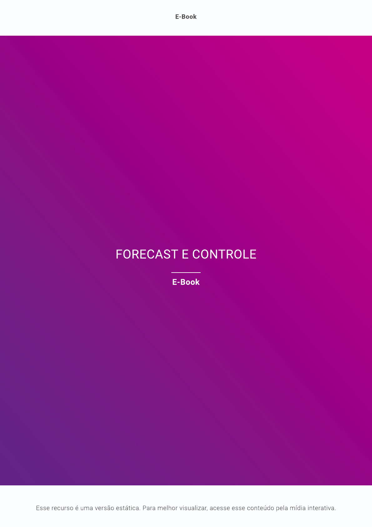 <p>E-Book FORECAST E CONTROLE E-Book Esse recurso é uma versão estática. Para melhor visualizar, acesse esse conteúdo pela interativa.</p><p>E-Book Forecast e Controle Olá, estudante! o orçamento empresarial faz a projeção dos valores necessários para que a empresa alcance seus objetivos, em todas as áreas, departamentos, setores e ou seja, abrangendo a organização na totalidade. Para que esses objetivos sejam alcançados, é necessário fazer o controle da execução do orçamento, comparando os resultados reais com os orçados. Essa comparação não pode ser efetuada apenas no final do ano, e sim, no máximo, mensalmente, para que as variações entre real e orçado sejam calculadas e os motivos da diferença identificados. Assim, torna-se possível a tomada de decisões para manter o rumo da empresa. Para darmos início, clique no ícone da figura a seguir e reflita sobre a frase e o que ela pode significar: "Controle seu destino ou alguém controlará." - Jack Welch John Frances Welch Jr. foi um executivo americano, considerado o gestor do século XX, que comandou a General Eletric nos Estados Unidos nas décadas de 1980 e 1990. Ele escreveu vários livros e é um exemplo para muitos líderes empresariais no mundo atual. 2 de 26 páginas</p><p>E-Book o destino de uma empresa tem que ser controlado, e o orçamento é um dos itens importantes para isso. Ao fim desta unidade, você será capaz de: entender a importância do controle orçamentário; identificar metodologias de controle por atividade, matricial e Balanced Scorecard; calcular as variações entre real e orçado. Bons estudos! Controle Orçamentário o controle orçamentário é muito importante para que os gestores avaliem as possíveis distorções do real em relação ao orçado e sejam capazes de adotar medidas corretivas e preventivas, evitando a perpetuação de desvios, que podem impactar sobremaneira o resultado empresarial. No vídeo a seguir, o gerente de planejamento da EZTEC S.A., empresa do ramo de incorporação e construção, informa alguns benefícios obtidos com a adoção de um sistema informatizado, que, além de outras funcionalidades, tem o módulo de orçamento e controle orçamentário. Vídeo VIDEOAULA 1 Controle orçamentário e suas ferramentas Clique aqui para abrir o vídeo Comparar o orçado com o realizado 3 de 26 páginas</p><p>E-Book o controle orçamentário é a ferramenta que permite à organização verificar o quão próximos os resultados estão do que foi planejado. Assim, os gestores comparam as metas estabelecidas e o que foi efetivamente atingido. Por meio do controle orçamentário, é possível identificar a variação de cada uma das contas orçadas e onde devemos buscar o entendimento das causas, de modo que seja elaborado um plano de ação que forneça condições de alcançar o proposto nos meses subsequentes ao desvio. As empresas precisam de controle orçamentário para tomar decisões subsidiadas em fatos. Saiba Mais A fim de complementar o conteúdo, leia o item 6.4, "Por que a empresa precisa de acompanhamento?", da página 92 a 98. 00:21.6 Embora muitos gestores prefiram acompanhar apenas os macro-objetivos, tais como retorno sobre o patrimônio líquido, lucro líquido, EBITDA ou geração de caixa, é fundamental que as peças orçamentárias sejam analisadas individualmente, para que seja possível entender como o resultado foi construído e se não há possibilidade de maiores ganhos. Quando se tem conhecimento de um desvio e não se desenvolve nenhuma ação para corrigi-lo, a utilização do orçamento é perda de tempo e energia. Amplitude de controle A alta administração, com o comitê orçamentário, precisa determinar qual será a amplitude de controle dentro da organização, seja ele mais abrangente, em que os resultados de todos os departamentos serão acompanhados, seja ele mais limitado, em que apenas os que demandam maiores entradas ou saídas de recursos são controlados. É preciso definir, ademais, quais são as contas que serão monitoradas, uma vez que existem as que estão sob a ação dos gestores e outras que, embora vinculadas a determinado centro de custo, não estão sob monitoramento do gestor da área. 4 de 26 páginas</p><p>E-Book Outro aspecto que deve ser determinado é qual o montante monetário e a variação percentual que poderá ter de diferença entre realizado e orçado, para que seja o gatilho de ações, como a ação de monitorar ou aplicar medidas corretivas. A cultura organizacional influencia o controle orçamentário, e, no artigo anexo, é explorada essa influência no processo de planejamento e controle orçamentário. Saiba Mais artigo apresenta uma pesquisa teórica sobre a influência da cultura organizacional no processo de planejamento e controle orçamentário. Acesse: usp.br/rco/article/view/34801 Conteúdo completo disponibilizado no formato digital. Considerando, ainda, a possibilidade de grandes variações, há de se estabelecer a necessidade de intervenção no orçamento, para que seja revisado, o que evita a perda de utilidade deste em decorrência de total descompasso com a realidade. Quanto maior o controle, maior o trabalho dos gestores, porém maiores serão as possibilidades de atingir as projeções estabelecidas. (Clique nas setas para avançar ou retornar o conteúdo) As contas contábeis devem ser analisadas de acordo com sua ordem de importância e sua tolerância para desvios. Quanto maior a importância e mais baixa a tolerância para desvios, mais rígido deve ser o controle aplicado. A graduação da importância de uma conta contábil normalmente é de acordo com o seu percentual em relação ao total de que faz parte. É usual que custos e despesas sejam ordenados de acordo com o percentual em relação ao total de custos e despesas, respectivamente; já as contas patrimoniais, em relação ao total do ativo. 5 de 26 páginas</p><p>E-Book Não obstante, é possível utilizar um