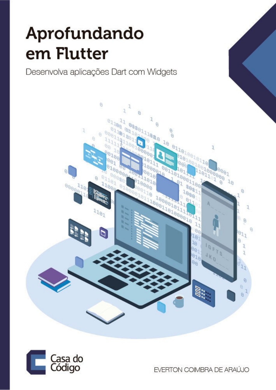 <p>Sumário</p><p>ISBN</p><p>Agradecimentos</p><p>Sobre o autor</p><p>Prefácio</p><p>Sobre o livro</p><p>1. Introdução</p><p>2. Ambientando-se com o Flutter</p><p>3. A Splash Screen na inicialização da aplicação</p><p>4. Persistência de dados com Shared Preferences</p><p>5. Um menu com opções de acesso e início com animações</p><p>6. Abrindo o Drawer via código e uma animação com BLoC</p><p>7. Rotas, transições entre elas e o formulário para palavras</p><p>8. Persistência na inserção e BLoC na recuperação de dados e animação na</p><p>transição de rotas</p><p>9. Remoção de dados e atualização do ListView com destaque para alterações</p><p>realizadas</p><p>10. Funcionamento e interação do usuário com o jogo e o teclado para as letras</p><p>11. Validação da letra escolhida e verificação de vitória e derrota</p><p>12. Fechamento para o app</p><p>13. Os estudos não param por aqui</p><p>ISBN</p><p>Impresso: 978-65-86110-75-3</p><p>Digital: 978-65-86110-76-0</p><p>Caso você deseje submeter alguma errata ou sugestão, acesse</p><p>http://erratas.casadocodigo.com.br.</p><p>Agradecimentos</p><p>Este é um espaço que considero muito importante em meus livros. É o momento</p><p>para reconhecer o apoio direto ou indireto de pessoas fundamentais para mim</p><p>durante o processo de pesquisa e escrita do livro. Se você já leu outros livros</p><p>meus, certamente achará esta introdução parecida, mas aqui, nesta seção, sou</p><p>assim.</p><p>Não posso jamais deixar de agradecer ao apoio de meus filhos, pessoas-chave</p><p>em minha vida. No momento em que me encontro, pessoal e profissionalmente,</p><p>duas pessoinhas são muito importantes para os momentos de relaxamento: Maria</p><p>Clara e Vicente Dirceu. Meus caçulas, minhas joias mais preciosas. Meu filho</p><p>Gabriel, conversamos quase todos os dias e, na maioria das vezes, é você quem</p><p>me dá conselhos. Comecei a escrever este livro depois de um desafio do Biel,</p><p>que está sempre me motivando a desbravar. Obrigado, meus amados filhos.</p><p>Um agradecimento muito especial, mais como uma dedicatória, é para meu pai,</p><p>Élio Pedroso Araújo, e minha irmã, Alba Lucínia Coimbra de Araújo. Que Deus</p><p>ilumine muito vocês.</p><p>Um hiato pessoal, me permitam. Conheci a dança no período de escrita deste</p><p>livro. Vocês não sabem como essa atividade faz bem para a vida, para a mente e</p><p>o poder que ela tem de nos trazer felicidade. Se não sabem dançar, aprendam. Se</p><p>sabem dançar, dancem mais. Bolero, tango, samba, forró ou o gênero que você</p><p>gostar. Na dança, no meu caso, conheci pessoas e grupos maravilhosos, do bem,</p><p>todos dispostos a ajudar e a ensinar. Além de vivermos momentos espetaculares</p><p>que são perpetuados com essa atividade, nos desenvolvemos, pois nos pontos de</p><p>dificuldades, a dança relaxa a mente e as soluções chegam. Dance!</p><p>Voltando, em relação à revisão técnica, uma vez mais meu sincero e grande</p><p>agradecimento à excelente pessoa, competentíssimo profissional: Leonan Fraga</p><p>Leonardo, que mantém sempre seu LinkedIn atualizado. O Leonan tem sido um</p><p>grande amigo, parceiro de testes, que em muitos momentos tira minhas dúvidas</p><p>sobre problemas que ele já resolveu. Hoje o cara está muito bem colocado em</p><p>uma grande multinacional de TI. Focado em aplicações web e dispositivos</p><p>móveis, ele está sempre disponível para trocar informações. No início da escrita</p><p>do livro, comecei a pensar em quem convidar para escrever o prefácio. Comigo</p><p>em várias atividades de revisão, escolhi o Leonan já antes de iniciar a escrita. A</p><p>satisfação de ter meu livro prefaciado por esse cara, é imensurável. Obrigado,</p><p>Leonan. Carinho, gratidão e respeito.</p><p>Embora este texto seja repetitivo, sua força só aumenta cada vez que o escrevo.</p><p>Agradeço muito à Casa do Código, principalmente à Vivian Matsui, um anjo que</p><p>sempre me acompanha nos trabalhos que desenvolvo, sempre paciente e</p><p>procurando tempo para ler e contribuir com as revisões dos livros. Obrigado,</p><p>Vivian e este agradecimento se estende a toda a equipe da editora.</p><p>De maneira geral, agradeço sempre aos meus colegas de trabalho do</p><p>Departamento de Computação da UTFPR, campus Medianeira, meu paraíso</p><p>profissional, pelo coleguismo e pelos ouvidos.</p><p>Não poderia concluir os agradecimentos sem fazê-los também aos meus alunos e</p><p>alunas. Queridas pessoinhas que estão aos poucos se soltando mais e vendo que</p><p>a cara feia não é de bravo, mas sim de alguém que deseja que tenham um futuro</p><p>bom, respeitoso e com muito orgulho de ser programador.</p><p>Sobre o autor</p><p>Everton Coimbra de Araújo atua na área de ensino de linguagens de</p><p>programação e desenvolvimento. É tecnólogo em processamento de dados pelo</p><p>Centro de Ensino Superior de Foz do Iguaçu, possui mestrado em Ciência da</p><p>Computação pela UFSC e doutorado pela UNIOESTE em Engenharia Agrícola,</p><p>na área de Estatística Espacial. É professor da Universidade Tecnológica Federal</p><p>do Paraná (UTFPR), campus Medianeira, onde leciona disciplinas no curso de</p><p>Ciência da Computação e de mestrados. Já ministrou aulas de Algoritmos,</p><p>Técnicas de Programação, Estrutura de Dados, Linguagens de Programação,</p><p>Orientação a Objetos, Análise de Sistemas, UML, Java para Web, Java EE,</p><p>Banco de Dados e .NET e nos últimos dois anos tem se dedicado de corpo e</p><p>alma ao desenvolvimento mobile.</p><p>Possui experiência na área de Ciência da Computação, com ênfase em Análise e</p><p>Desenvolvimento de Sistemas, e atua principalmente nos seguintes temas:</p><p>Desenvolvimento Web com Java e .NET, Persistência de Objetos e agora em</p><p>Dispositivos Móveis. O autor é palestrante em seminários de informática</p><p>voltado