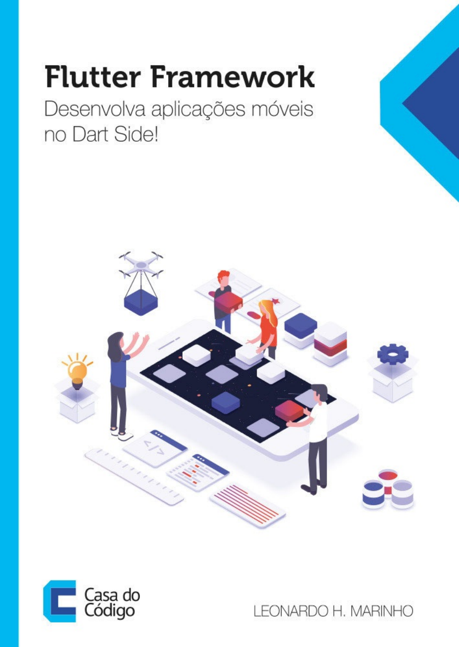 <p>Sumário</p><p>ISBN</p><p>Prefácio</p><p>Dedicatórias</p><p>Afinal, quem é este que vos fala?</p><p>1. Introdução</p><p>2. Quais dores o Flutter curou?</p><p>3. O que preciso para desenvolver em Flutter?</p><p>4. A arquitetura Flutter</p><p>5. A base do framework, Dart!</p><p>6. Widgets, Widgets por toda a parte!</p><p>7. Dependências</p><p>8. Prototipação</p><p>9. Avançando com o Flutter</p><p>10. Criando um aplicativo complexo</p><p>11. Banco de dados</p><p>12. Testes automatizados em Widgets</p><p>13. Mudança do ícone do aplicativo</p><p>14. Será o Flutter a bala de prata?</p><p>ISBN</p><p>Impresso e PDF: 978-65-86110-26-5</p><p>EPUB: 978-65-86110-28-9</p><p>MOBI: 978-65-86110-27-2</p><p>Caso você deseje submeter alguma errata ou sugestão, acesse</p><p>http://erratas.casadocodigo.com.br.</p><p>Prefácio</p><p>Programadores são máquinas de resolver problemas. Resolvemos problemas de</p><p>vários segmentos e para vários tipos de pessoas, seja através de sistemas</p><p>gerenciais, pontos de venda (pdv), gestão de educação, contabilidade ou saúde.</p><p>Cada segmento necessita dos cuidados da tecnologia, e nós somos os artesãos</p><p>que constroem estes artefatos de forma completamente manual através de um</p><p>teclado e mouse. Assim como um oleiro que constrói vasos e artefatos com barro</p><p>e argila, nós construímos softwares utilizando as ferramentas que melhor se</p><p>adaptam aos projetos que vamos desempenhar. A escolha das ferramentas</p><p>corretas impacta diretamente na qualidade do que estamos construindo quando</p><p>produto final.</p><p>Neste livro, criaremos juntos aplicativos verdadeiramente performáticos,</p><p>multiplataforma e atrativamente bonitos. Desconstruiremos a barreira que foi</p><p>plantada na mente dos desenvolvedores para dispositivos móveis de que criar</p><p>aplicativos é chato, custoso, lento e difícil. Estou escrevendo este livro para que</p><p>seja um verdadeiro divisor de águas na sua carreira.</p><p>Flutter veio com uma proposta totalmente diferente de seus antecessores, o que</p><p>traz bastante curiosidade aos desenvolvedores e esperanças para que seja um</p><p>framework que realmente divida águas no meio tecnológico. A criação de</p><p>aplicativos móveis principalmente para as plataformas Android e iOS é cada dia</p><p>mais importante com o crescimento do público que dispõe de smartphones.</p><p>Como especialistas em tecnologia precisamos nos atentar para este gigante</p><p>mercado emergente e cheio de ótimas oportunidades que clama por nós todos os</p><p>dias.</p><p>Por isso, quero ser o seu aliado na caminhada com os estudos do Flutter e</p><p>conseguir somar toda a minha experiência acadêmica e profissional para tornar</p><p>isso possível e muito mais rápido. Conhecer a linguagem Dart e Flutter deixou</p><p>de ser um extra e passou a ser uma exigência do mercado móvel.</p><p>Quer um bom incentivo para estudar Flutter? A Nubank, Agibank, iFood, e</p><p>várias outras gigantes utilizam Flutter. Se elas já estão atentas à novidade, quem</p><p>somos nós para ir na contramão?</p><p>Neste livro veremos quais dores o Flutter veio para curar, a arquitetura de</p><p>software fantástica por baixo dele, razões pelas quais Dart foi a linguagem</p><p>escolhida para o Flutter, o que são Widgets e como aproveitá-los ao máximo,</p><p>gerenciamento de dependências, prototipação de aplicativos, requisições http,</p><p>banco de dados local, testes automatizados, estilização de um aplicativo e muito</p><p>mais! Tudo na prática, bem "coding".</p><p>O público-alvo deste livro são pessoas que tenham domínio de programação e</p><p>que preferencialmente já tenham tido contato com programação para</p><p>dispositivos móveis. Nada impede que novatos leiam e entendam os princípios</p><p>apresentados aqui, porém, com conhecimento prévio o conteúdo será muito mais</p><p>aproveitado.</p><p>Nos exemplos que serão apresentados utilizaremos o Flutter na versão</p><p>1.12.13+hotfix.8, e a linguagem Dart 2.7.0. Como normalmente saem muitas</p><p>atualizações para o Flutter e a linguagem Dart, é bastante provável que no</p><p>momento em que você estiver lendo este livro algo já tenha mudado de versão.</p><p>Sem pânico, é possível rodar os exemplos sem problemas já que normalmente o</p><p>próprio Flutter acusa o que há de errado e dá o caminho para a alteração, quando</p><p>ele próprio não a realiza sozinho.</p><p>Os códigos de todos os exemplos estão disponíveis para download no final de</p><p>cada capítulo.</p><p>Boa leitura e sucesso!</p><p>Dedicatórias</p><p>A Deus, que me sustentou até aqui e aliviou o peso de todos os desafios gigantes</p><p>que estou vivendo desde quando decidi entrar para o ramo tecnológico. A cada</p><p>degrau que consegui subir na escada da vida, senti visivelmente o alívio e a</p><p>poderosa mão Dele me guiando.</p><p>Aos meus pais, Avalcir e Adriana, o meu muito obrigado! Podem ter certeza de</p><p>que nada foi em vão. Honrarei todo o esforço e dificuldades que passamos juntos</p><p>para eu chegar até aqui. Vocês me trazem muito orgulho e faço de tudo para</p><p>também orgulhá-los!</p><p>A Vanessa, minha eterna “irmãzinha mala” que meus pais me deram de presente,</p><p>espero de coração poder sempre ajudá-la e aconselhá-la mostrando que os seus</p><p>sonhos dependem apenas de você para se concretizarem! Desejo sucesso para</p><p>você, e conte sempre comigo para a realização dos seus sonhos!</p><p>Aos amigos, ex-professores e pessoas maravilhosas que passaram/estão pela</p><p>minha vida, muito obrigado pelos seus ensinamentos, puxões de orelha,</p><p>conselhos e preocupação. Podem ter certeza de que nada disso foi em vão e que</p><p>estou fundamentando a minha vida em tudo de melhor que vocês construíram no</p><p>meu intelecto e caráter.</p><p>E por último, mas não menos importante, o meu muito obrigado aos membro