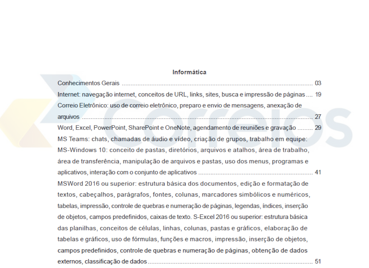 <p>INFORMÁTICA</p><p>3</p><p>CONCEITOS GERAIS DE INFORMÁTICA</p><p>BIT, BYTE, KILOBYTE,</p><p>MEGABYTE, GIGABYTE, TERABYTE</p><p>Os computadores “entendem” impulsos elétricos,</p><p>positivos ou negativos, que são representados por 1 ou 0. A</p><p>cada impulso elétrico damos o nome de bit (BInary digiT).</p><p>Quando um conjunto de 8 bits é formado o computador</p><p>já consegue interpretar os comandos que damos para ele.</p><p>1 Byte, é formado por um conjunto de 8bits, e um byte</p><p>refere-se ao tamanho de qualquer tecla no seu teclado.</p><p>Ou seja, quando escrevemos uma palavra no teclado, como</p><p>por exemplo: blog , o computador interpreta cada letra como 8</p><p>bits, ou 1 byte, então a palavra blog possui, 32 bits e 4 bytes.</p><p>Essas palavras estranhas referem-se, em linguagem</p><p>computacional, ao tamanho de tudo em informática, desde o</p><p>tamanho de uma letra ao tamanho de um arquivo.</p><p>A partir do byte a contagem é feita em relação a 1024, ou</p><p>seja, 1024 bytes, correspondem a 1Kb (kilobyte). E agora</p><p>segue assim por diante:</p><p>1 Byte = 8 bits</p><p>1 kilobyte (kB ou Kbytes) = 1024 bytes</p><p>1 megabyte (MB ou Mbytes) = 1024 kilobytes</p><p>1 gigabyte (GB ou Gbytes) = 1024 megabytes</p><p>1 terabyte (TB ou Tbytes) = 1024 gigabytes</p><p>1 petabyte (PB ou Pbytes) = 1024 terabytes</p><p>1 exabyte (EB ou Ebytes) = 1024 petabytes</p><p>1 zettabyte (ou Zbytes) = 1024 exabytes</p><p>1 yottabyte (ou Ybytes) = 1024 zettabytes.</p><p>Entao afinal, qual a diferença entre essas</p><p>nomenclaturas?</p><p>Apenas ao tamanho do arquivo ou quantidade de arquivo</p><p>a que se referem, mas se tratando de Hd, Memória, CD-</p><p>ROM, DVD-Roms, Pendrives e etc…, onde é muito comum</p><p>vermos esta nomenclatura, a diferença se faz na capacidade</p><p>que estes dispositivos tem de armazenar arquivos, quanto</p><p>maior a capacidade, mais arquivos podemos armazenar.</p><p>Vale lembrar que existe muita diferença entre por</p><p>exemplo b(minúsculo) e B(maiúsculo).</p><p>Na tabela, o k (minúsculo) é o símbolo de quilo, M</p><p>(maiúsculo) é o símbolo de mega, G (maiúsculo) é o</p><p>símbolo de giga, e m (minúsculo) é o símbolo de mili. Esses</p><p>múltiplos nada mais são do que números.</p><p>Quando eles vão à frente de alguma coisa, essa coisa é</p><p>multiplicada por esse número.</p><p>É assim que estes símbolos funcionam.</p><p>Na informática, temos o símbolo de byte que é B</p><p>(maiúsculo) e o símbolo de bit que é b (minúsculo).</p><p>Se você sabe que seu computador tem tantos</p><p>megabytes de memória, você deve escrever por</p><p>exemplo: xxxM (mega) B (bytes), com o M e o B maiúsculos.</p><p>Se você escrever Mb (Maiúsculos e b-minúsculo),</p><p>leremos “megabit” e se você escrever mb (minúsculo e b-</p><p>minúsculo) leremos milibit, o que sequer nem existe!!</p><p>b = bit</p><p>B = byte</p><p>k = quilo (103)</p><p>M = mega (106)</p><p>G = giga (109)</p><p>Então: Um quilobyte é 1 kB e não 1 KB.</p><p>TIPOS DE COMPUTADORES</p><p>Existem muitos tipos de computadores com diferentes</p><p>formatos e tamanhos e cada um deles oferece</p><p>características que se encaixam às diversas necessidades.</p><p>Os computadores de mesa ou desktops:</p><p>Os computadores de mesa ou desktops são os mais</p><p>comuns nas casas e nos escritórios.</p><p>Esse tipo de computador não é muito fácil de</p><p>ser transportado porque dependem de energia elétrica e</p><p>possuem muitas partes.</p><p>Notebooks ou portáteis</p><p>São computadores que você pode transportar com</p><p>facilidade porque todas suas partes estão integradas numa</p><p>só peça com tamanho e peso menores que o de um desktop.</p><p>SISTEMAS OPERACIONAIS</p><p>Há muitos tipos de Sistemas Operacionais, cuja</p><p>complexidade varia e depende de que tipo de funções é provido,</p><p>e para que o computador será usado. Alguns sistemas são</p><p>responsáveis pela gerência de muitos usuários, outros controlam</p><p>dispositivos de hardware como bombas de petróleo.</p><p>O sistema operacional funciona com a iniciação de</p><p>processos que este irá precisar para funcionar corretamente.</p><p>Esses processos poderão ser arquivos que necessitam de</p><p>ser frequentemente atualizados, ou arquivos que processam</p><p>dados úteis para o sistema. Poderemos ter acesso a vários</p><p>processos do sistema operacional a partir do gerenciador de</p><p>tarefas, onde se encontram todos os processos que estão</p><p>em funcionamento desde a inicialização do sistema</p><p>operacional até a sua utilização atual.</p><p>O sistema operacional é uma coleção de programas</p><p>que:</p><p>- Inicializa o hardware do computador.</p><p>- Fornece rotinas básicas para controle de dispositivos.</p><p>- Fornece gerência, escalonamento e interação de tarefas.</p><p>- Mantém a integridade de sistema.</p><p>Um Sistema Operacional muito simples para um sistema de</p><p>controle de segurança poderia ser armazenado numa memória</p><p>ROM (Só de Leitura - um chip que mantém instruções para um</p><p>computador), e assumir o controle ao ser ligado o computador.</p><p>Sua primeira tarefa seria reajustar (e provavelmente testar) os</p><p>sensores de hardware e alarmes, e então ativar uma rotina</p><p>monitorando ininterruptamente todos os sensores introduzidos.</p><p>Se o estado de qualquer sensor de entrada for mudado, é</p><p>ativada uma rotina de geração de alarme.</p><p>Em um grande computador multiusuário, com muitos</p><p>terminais, o Sistema Operacional é muito mais complexo.</p><p>Tem que administrar e executar todos os pedidos de</p><p>usuários e assegurar que eles não interferiram entre si. Tem</p><p>que compartilhar todos os dispositivos que são seriais por</p><p>natureza (dispositivos que só podem ser usados por um</p><p>usuário de cada vez, como impressoras e discos) entre todos</p><p>os usuários que pedem esse tipo de se