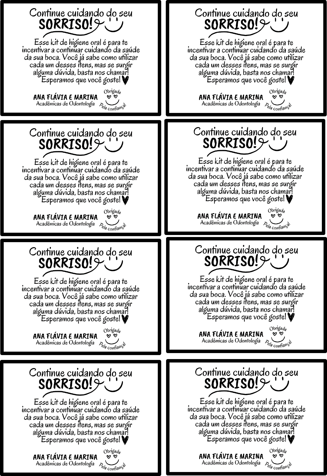 <p>Continue cuidando do seu Continue cuidando do seu SORRISO! SORRISO! Esse kit de higiene oral é para te Esse kit de higiene oral é para te incentivar a continuar cuidando da saúde incentivar a continuar cuidando da saúde da sua boca. Você já sabe como utilizar da sua boca. Você já sabe como utilizar cada um desses itens, mas se surgir cada um desses itens, mas se surgir alguma dúvida, basta nos chamar! alguma dúvida, basta nos chamar! Esperamos que você goste! que você goste! Obrigada Obrigada ANA FLÁVIA E MARINA ANA FLÁVIA E MARINA Acadêmicas de Odontologia Pela Acadêmicas de Odontologia Pela Continue cuidando do seu Continue cuidando do seu SORRISO! SORRISO! Esse kit de higiene oral é para te Esse kit de higiene oral é para te incentivar a continuar cuidando da saúde incentivar a continuar cuidando da saúde da sua boca. Você já sabe como utilizar da sua boca. Você já sabe como utilizar cada um desses itens, mas se surgir cada um desses itens, mas se surgir alguma dúvida, basta nos chamar! alguma dúvida, basta nos chamar! Esperamos que você goste! Esperamos que você goste! Obrigada Obrigada ANA FLÁVIA E MARINA ANA FLÁVIA E MARINA Acadêmicas de Odontologia Acadêmicas de Odontologia Pela Continue cuidando do seu Continue cuidando do seu SORRISO! SORRISO! Esse kit de higiene oral é para te Esse kit de higiene oral é para te incentivar a continuar cuidando da saúde incentivar a continuar cuidando da saúde da sua boca. Você já sabe como utilizar da sua boca. Você já sabe como utilizar cada um desses itens, mas se surgir cada um desses itens, mas se surgir alguma dúvida, basta nos chamar! alguma dúvida, basta nos chamar! Esperamos que você goste! Esperamos que você goste! Obrigada Obrigada ANA FLÁVIA E MARINA ANA FLÁVIA E MARINA Acadêmicas de Odontologia Pela Acadêmicas de Odontologia Pela Continue cuidando do seu Continue cuidando do seu SORRISO! SORRISO! Esse kit de higiene oral é para te Esse kit de higiene oral é para te incentivar a continuar cuidando da saúde incentivar a continuar cuidando da saúde da sua boca. Você já sabe como utilizar da sua boca. Você já sabe como utilizar cada um desses itens, mas se surgir cada um desses itens, mas se surgir alguma dúvida, basta nos chamar! alguma dúvida, basta nos chamar! que você goste! que você goste! Obrigada Obrigada ANA FLÁVIA E MARINA ANA FLÁVIA E MARINA Acadêmicas de Odontologia P ela Acadêmicas de Odontologia Pela</p>