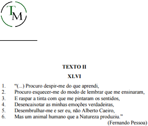 <p>TEOREMA MILITAR</p><p>2º SIMULADO EFOMM – 1º DIA – PORTUGUÊS, INGLÊS E REDAÇÃO</p><p>PORTUGUÊS</p><p>TEXTO PARA A PRÓXIMA QUESTÃO</p><p>1. Em “(...) Procuro despir-me do que aprendi,”</p><p>(verso 1), a função morfossintática das palavras em</p><p>negrito é, respectivamente:</p><p>a) objeto direto e pronome pessoal reto; objeto direto</p><p>e pronome oblíquo.</p><p>b) partícula integrante do verbo e pronome oblíquo;</p><p>objeto indireto e preposição.</p><p>c) pronome oblíquo e objeto direto; combinação da</p><p>preposição e objeto direto.</p><p>d) partícula integrante do verbo e pronome pessoal;</p><p>objeto indireto e pronome demonstrativo.</p><p>e) objeto direto e preposição; objeto indireto e</p><p>pronome pessoal.</p><p>2. Assinale a alternativa em que todos os verbos são</p><p>defectivos.</p><p>a) Chover – Advir – Provir</p><p>b) Reaver – Caber – Haver</p><p>c) Precaver(-se) – Construir – Carregar</p><p>d) Abolir – Colorir – Computar</p><p>e) Entupir – Requerer – Valer</p><p>3. Assinale a afirmativa cujos verbos preenchem</p><p>corretamente as lacunas do trecho abaixo.</p><p>A maior parte das pessoas __________ a existência de</p><p>efeitos colaterais causados pelos remédios. E muitos</p><p>médicos, a sua grande maioria, não ___________ os</p><p>problemas que os remédios podem causar. Há anos</p><p>venho defendendo a introdução de um sistema</p><p>internacional de monitoramento de medicamentos,</p><p>para que os médicos __________ informados quando</p><p>seus companheiros de outros países detectarem</p><p>problemas.</p><p>a) desconhece – conhece – ser</p><p>b) desconhece – conhecem – sejam</p><p>c) desconhecem – conhece – serem</p><p>d) desconhece – conhecem – serem</p><p>e) desconhecem – conhecem – sejam</p><p>4. O uso do verbo no subjuntivo, exprimindo</p><p>conjectura, está presente na alternativa:</p><p>a) Não quero que você me deseje mal.</p><p>b) Procuro um carro que seja confortável, espaçoso e</p><p>seguro.</p><p>c) Há quem pense que somos os únicos seres</p><p>existentes no universo.</p><p>d) As mulheres tendem a aceitar mais interferências</p><p>alheias em suas escolhas.</p><p>e) Por mais que eu tente, não consigo compreender os</p><p>fundamentos da física quântica.</p><p>5. Completam adequadamente as lacunas abaixo,</p><p>respectivamente:</p><p>I. ______________ no saguão do hospital minha mãe,</p><p>meu pai e eu.</p><p>II. É importante saber que cada um dos estudantes</p><p>__________direito à assistência médica ao ingressar</p><p>na Universidade.</p><p>III. Foi difícil se conscientizar de que ele __________</p><p>os amores de sua mãe.</p><p>a) Estavam – terá – era</p><p>b)Estavam – terão – era</p><p>c) Estávamos – terá – era</p><p>d) Estavam – terão – eram</p><p>e) Estávamos – terão – eram</p><p>6. Assinale alternativa que completa adequadamente</p><p>as lacunas.</p><p>I. Os motivos __________ deixamos de visitá-los são</p><p>vários.</p><p>II. Vamos elaborar uma lista __________ produtos</p><p>queremos informações.</p><p>III. O jovem ainda não decidiu __________ partido se</p><p>filiará.</p><p>IV. Os homens __________ se deparou a insultaram.</p><p>a) por que - cujos - qual - com que</p><p>b) por que - de cujos - a qual - com os quais</p><p>c) porque - de cujos - em qual - com os quais</p><p>d) pelos quais - sobre cujo - qual - com quem</p><p>e) pelos quais - sobre cujo - em qual - com quem</p><p>7. Analise as afirmativas abaixo e, a seguir, assinale a</p><p>alternativa correta</p><p>I. O presente do indicativo expressa situações</p><p>atemporais.</p><p>II. O presente do indicativo não expressa eventos</p><p>Ocorridos no passado.</p><p>TEOREMA MILITAR</p><p>2º SIMULADO EFOMM – 2º DIA – PORTUGUÊS, INGLÊS E REDAÇÃO</p><p>III. O pretérito perfeito do indicativo expressa o fato</p><p>passado habitual.</p><p>a) Somente I está correta.</p><p>b) Somente II está correta.</p><p>c) Somente III está correta.</p><p>d) Somente I e II estão corretas.</p><p>e) Somente II e III estão corretas.</p><p>8. Observe o verbo sublinhado na sentença abaixo.</p><p>Que outro tempo verbal pode ser usado nesse verbo</p><p>para que ele expresse uma ideia semelhante à ideia</p><p>que está expressando no futuro do pretérito? Se eu</p><p>pudesse, eu viajaria para o Havaí todo o ano.</p><p>a) Pretérito imperfeito do Subjuntivo.</p><p>b) Pretérito imperfeito do Indicativo.</p><p>c) Pretérito mais-que-perfeito do Indicativo.</p><p>d) Pretérito perfeito do Subjuntivo.</p><p>e) Pretérito perfeito do Indicativo.</p><p>9. Analise as afirmativas abaixo, colocando entre</p><p>parênteses a letra V, quando se tratar de afirmativa</p><p>verdadeira, ou a letra F, quando se tratar de afirmativa</p><p>falsa. Em seguida, assinale a alternativa que apresenta</p><p>a sequência correta.</p><p>( ) A simplificação dos paradigmas flexionais verbais,</p><p>um fenômeno morfofonêmico e morfossintático,</p><p>sintaticamente e semanticamente relacionado ao</p><p>pronome pessoal sujeito, é uma característica típica do</p><p>português brasileiro.</p><p>( ) Outra característica marcante do português</p><p>brasileiro é o fenômeno da nominalização, marcada</p><p>pelo uso do modelo padrão, pelo uso do pronome</p><p>lembrete, pelo recurso da substituição com o</p><p>pronome-cópia, ou ainda pelo uso da relativa</p><p>cortadora.</p><p>( ) Figura também como característica marcante do</p><p>português brasileiro o uso do pronome-sujeito de</p><p>terceira pessoa como objeto direto, o qual tem valor</p><p>anafórico e pode ser associado ao caso genitivo da</p><p>língua latina.</p><p>a) V – F – F</p><p>b) V – V – F</p><p>c) F – V – V</p><p>d) F – F – V</p><p>e) V – F – V</p><p>10. Pertencem à classe das palavras categoremáticas:</p><p>a) pronomes, numerais e artigos.</p><p>b) artigos, preposições e conjunções.</p><p>c) subst