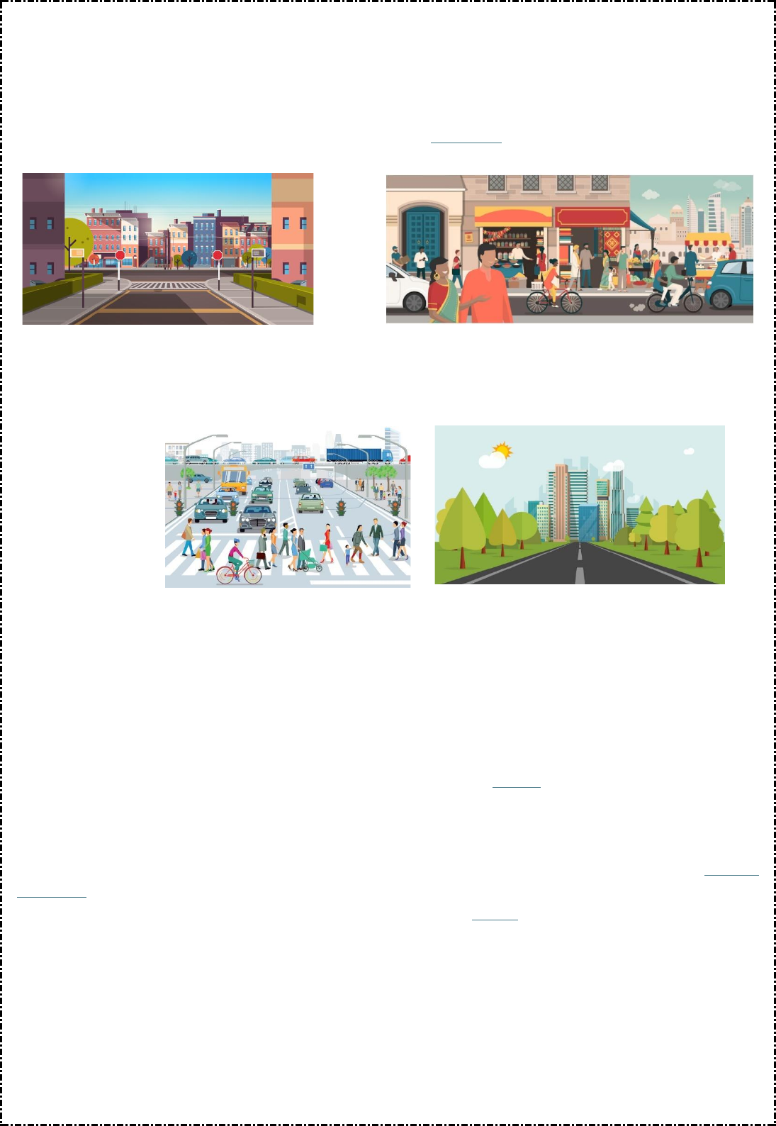 <p>Rua é um local público, isto é, todos têm direito de ir e vir por ela. A rua é o caminho utilizado pelas</p><p>pessoas e por diferentes veículos. Elas possuem calçadas, que são os espaços utilizados para as pessoas</p><p>andarem. Logo após as calçadas, são construídas as casas.</p><p>As ruas são diferentes umas das outras, por isso apresentam diversas formas: estreita, larga,</p><p>comprida, curta e sem saída. Elas podem ser muito ou pouco movimentadas, com árvores ou sem árvores, com</p><p>asfalto ou sem asfalto. Podem ter somente casas ou também comércios, como supermercados, lojas, bancos,</p><p>entre outros.</p><p>As ruas nos ajudam a nos deslocar pelas cidades.</p><p>É importante também saber que as ruas recebem nomes diferentes, pois isso ajuda na sua localização.</p><p>Podem receber nomes de:</p><p>• pedras;</p><p>• pessoas;</p><p>• árvores;</p><p>• países;</p><p>• estados;</p><p>• datas, entre outros.</p><p>É importante destacar que uma rua pode ser denominada de avenida, quando é mais larga e possui um</p><p>maior número de pessoas e veículos circulando.</p><p>As avenidas costumam ser bastante movimentadas.</p><p>Além da denominação de avenida, as ruas também podem receber o nome de alamedas, que são ruas</p><p>ou avenidas com uma grande quantidade de árvores dispostas nas calçadas.</p><p>As alamedas são repletas de árvores.</p><p>As ruas são o início das pequenas mudanças que ocorrem na cidade. Antes as ruas eram sem asfalto,</p><p>com poucos carros, mas, com o passar dos tempos, elas começaram a ser asfaltadas, recebendo maior número</p><p>de carros e lojas. Assim, muitas delas deixaram de ser um espaço calmo e tornaram-se muito movimentadas.</p><p>As ruas também têm como objetivo permitir que as pessoas se desloquem de um lugar para o outro.</p><p>Quando a distância é curta, nós podemos ir a pé; contudo, se a distância é grande, devemos usar um meio de</p><p>transporte, que pode ser uma bicicleta, ônibus, carro, etc.</p><p>Bairros são áreas compartimentadas, que compõem uma cidade ou município, cujas características</p><p>estão associadas ao processo de formação do local e às pessoas que nele vivem e que formam</p><p>uma comunidade. Essa divisão geográfica deu-se mediante a necessidade de facilitar não só a localização mas</p><p>também os estudos e pesquisas em determinadas áreas, pois muitas destas se expandem com rapidez.</p><p>Cada bairro possui suas particularidades, e essas estão especialmente associadas a sua ocupação e</p><p>ao local em que se encontram.</p><p>Você já reparou que as regiões centrais das cidades possuem características geralmente comuns? Ou</p><p>já reparou que as regiões mais periféricas se assemelham quanto a sua composição? Pois é, isso faz com que</p><p>existam os tipos de bairro, organizados segundo a ocupação das comunidades.</p><p>https://escolakids.uol.com.br/geografia/o-comercio.htm</p><p>https://escolakids.uol.com.br/historia/as-cidades.htm</p><p>https://escolakids.uol.com.br/geografia/meios-de-transporte.htm</p><p>https://escolakids.uol.com.br/geografia/meios-de-transporte.htm</p><p>https://escolakids.uol.com.br/historia/cidades-espacos-publicos-e-privados.htm</p><p>De forma geral, os bairros podem ser constituídos por ruas, casas, edifícios,</p><p>condomínios, indústrias, comércios, praças, shoppings, monumentos, entre outros. Podem também, segundo</p><p>sua localização, representar a cidade em alguns aspectos, como financeiro, turístico, tecnológico, entre</p><p>outros.</p><p>Tipos de bairro</p><p>Primeiramente é necessário dizer que não há uma classificação oficial para determinar os tipos de bairros. Os</p><p>bairros recebem determinadas denominações segundo as suas características, a sua comunidade, e a</p><p>quantidade de comércios, residências, indústrias, empresas e repartições públicas.</p><p>Também podem ser classificados segundo o valor dos imóveis que neles se encontram. Portanto, os elementos</p><p>observados de acordo com o senso comum é que nos fazem apontar alguns tipos de bairros, como:</p><p>1) Bairros residenciais</p><p>Nos bairros residenciais, as casas ou condomínios existem em</p><p>maior número.</p><p>São aqueles em que há predomínio de residências, podendo ser</p><p>casas térreas, sobrados e até condomínios. Nesses locais há pouca</p><p>presença de comércios. Cria-se neles uma identidade, pois</p><p>a população compõe uma comunidade que frequenta</p><p>diariamente lugares comuns e possui necessidades comuns.</p><p>Os bairros residenciais estão espalhados pela cidade, e cada um apresenta suas particularidades. Esses</p><p>podem ser mais ou menos populosos que outros; maiores ou menores em extensão territorial que outros; mais</p><p>arborizados ou menos que outros; mais próximos ou distantes dos grandes centros que outros etc.</p><p>2) Bairros comerciais</p><p>Nos bairros comerciais, há predomínio de comércios. [1]</p><p>São constituídos principalmente de comércios. As ruas nesses bairros são</p><p>repletas de lojas de roupas, brinquedos, materiais de construção,</p><p>eletrônicos, ou de estabelecimentos como padarias, açougues, frutarias,</p><p>salões de beleza, entre outros.</p><p>Devido à existência desses comércios, os bairros comerciais tendem a</p><p>ser bastante movimentados. Os centros das cidades costumam ter muitos bairros desse tipo, mas eles podem</p><p>ser encontrados em diversas regiões. O comércio localizado no centro das cidades facilita com que a</p><p>população de todos os outros bairros possa deslocar-se até ele sem percorrer grandes distâncias.</p><p>3) Bairros industriais</p><p>Os bairros industriais encontram-se em regiões mais</p><p>afastadas da cidade.</p><p>São aqueles em que predominam as indústrias e fábricas.</p><p>Por necessitarem de áreas maiores e, por vezes, produzirem</p><p>não só poluição como também muitos ruíd