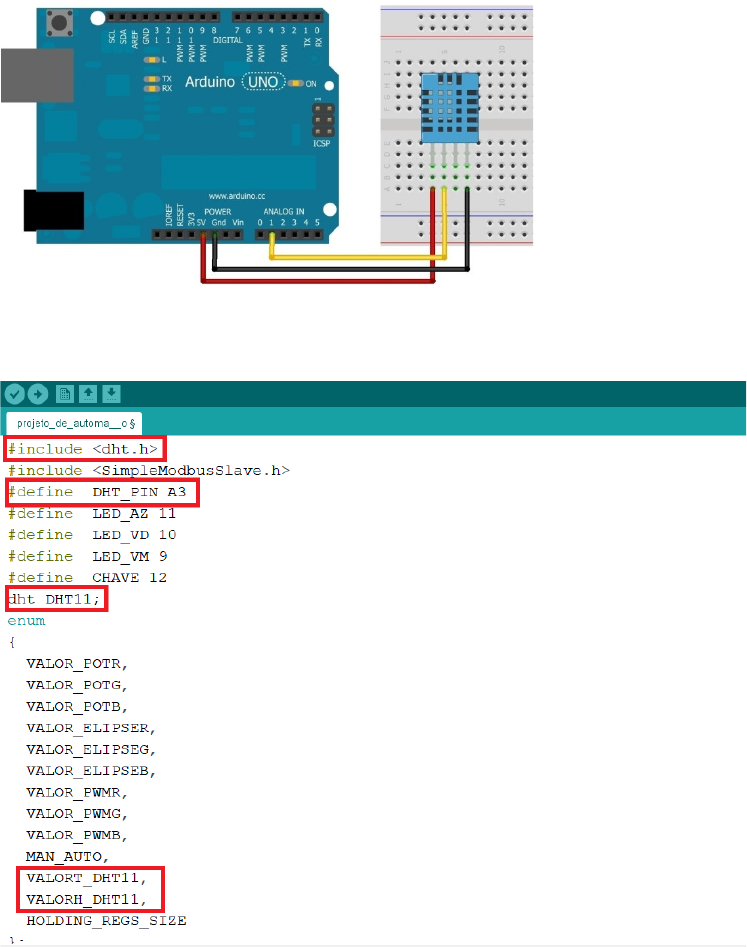 <p>ROTEIRO DE PRÁTICA LABORATORIAL 03</p><p>1. Componente curricular: Projetos de Automação industrial</p><p>2. Título do roteiro de aula prática: IHM – SCADA.</p><p>3. Tempo previsto: 4 horas</p><p>Um sistema supervisório com uma Interface Homem Máquina (IHM) intuitiva é sem dúvida um grande facilitador para quem fiscaliza e opera eventos em uma planta industrial.</p><p>Nesta prática, o aluno será responsável por criar uma IHM própria, que contenha todos os elementos da automação realizada e seja a mais intuitiva possível.</p><p>Antes de começarmos vamos acrescentar um dispositivo de controle de temperatura e umidade o DHT11 no projeto da prática 2, para tanto precisamos efetuar as seguintes ligações:</p><p>Figura 1</p><p>Depois que as ligações estiverem corretas, vamos inserir as linhas de código no projeto da prática 2:</p><p>Figura 2</p><p>Figura 3</p><p>Após esta modificação vamos voltar ao Elipse SCADA e efetuar a aquisição destes novos dados através da inserção de mais 2 Tag’s, como visto na prática anterior.</p><p>Criação da IHM</p><p>Figura 4: Exemplo de IHM</p><p>Fonte: Google imagens</p><p>Figura 3 – Sugestão de IHM</p><p>Fonte : Próprio Autor</p><p>Para realizar esta tarefa, basta abrir o Elipse SCADA e selecionar o menu “Bitmap”.</p><p>Neste ponto os alunos já estão familiarizados com o software e estarão livres para criar uma IHM de modo que fique o mais intuitivo possível. O professor deverá auxiliá-los quanto às fontes de bitmaps (Google imagens), bem como instruí-los sobre qualquer programa de desenho disponível. Podendo utilizar o Microsoft Paint, ou mesmo o Microsoft Power Point (disponíveis nos computadores do polo). Caso tenha acesso, o aluno poderá utilizar outros softwares que ele tenha mais facilidade como o CorelDraw ou PhotoShop.</p><p>Para inserir animações na tela devemos acionar o menu “Animation”.</p><p>Na aba “Zonas”, devemos informar quais imagens comporão a animação, devendo relacioná-la com propriedades do texto existente. (referência prática 02). Inclusive as “TAGs”.</p><p>Esta prática é feita por 4 grupos de alunos, e as imagens da IHM deverão constar no relatório, podendo ser uma mesma imagem para cada integrante do grupo.</p><p>image4.jpeg</p><p>image5.png</p><p>image6.png</p><p>image7.png</p><p>image8.png</p><p>image1.jpeg</p><p>image2.png</p><p>image3.png</p>