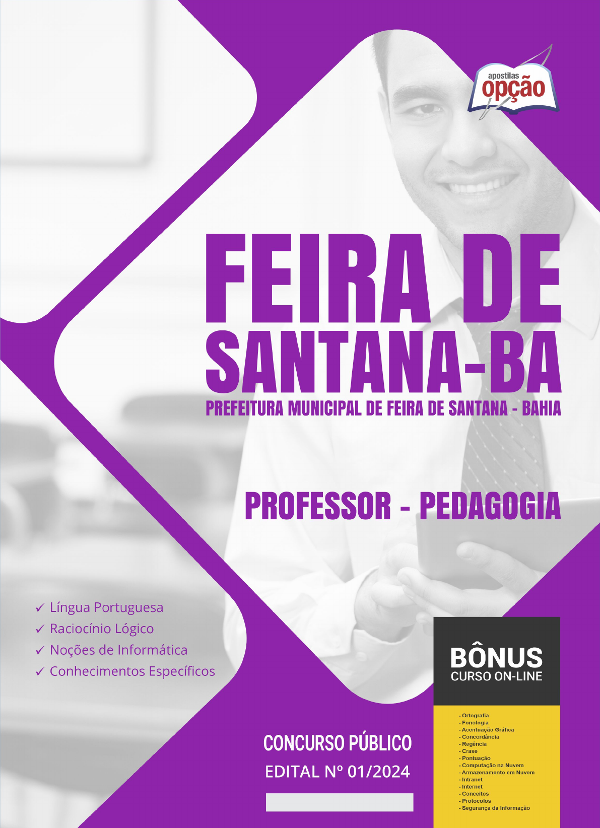 <p>FEIRA DE SANTANA-BA</p><p>PREFEITURA MUNICIPAL DE FEIRA DE SANTANA - BAHIA</p><p>Professor – Pedagogia</p><p>EDITAL Nº 01, DE 30 DE JULHO DE 2024</p><p>CÓD: OP-251JL-24</p><p>7908403558940</p><p>• A Opção não está vinculada às organizadoras de Concurso Público. A aquisição do material não garante sua inscrição ou ingresso na</p><p>carreira pública,</p><p>• Sua apostila aborda os tópicos do Edital de forma prática e esquematizada,</p><p>• Dúvidas sobre matérias podem ser enviadas através do site: www.apostilasopção.com.br/contatos.php, com retorno do professor</p><p>no prazo de até 05 dias úteis.,</p><p>• É proibida a reprodução total ou parcial desta apostila, de acordo com o Artigo 184 do Código Penal.</p><p>Apostilas Opção, a Opção certa para a sua realização.</p><p>ÍNDICE</p><p>Língua Portuguesa</p><p>1. Compreensão e interpretação de textos ................................................................................................................................... 5</p><p>2. Tipologia textual ........................................................................................................................................................................ 5</p><p>3. Acentuação gráfica ..................................................................................................................................................................... 6</p><p>4. Ortografia oficial ........................................................................................................................................................................ 6</p><p>5. Emprego das classes de palavras ............................................................................................................................................... 7</p><p>6. Sintaxe da oração e do período ................................................................................................................................................. 15</p><p>7. Pontuação .................................................................................................................................................................................. 19</p><p>8. Concordância nominal e verbal ................................................................................................................................................. 22</p><p>9. Regência nominal e verbal ......................................................................................................................................................... 24</p><p>10. Significação das palavras ............................................................................................................................................................ 25</p><p>Raciocínio Lógico</p><p>1. Noções de Lógica. Diagramas Lógicos: conjuntos e elementos ................................................................................................. 31</p><p>2. Lógica da argumentação ............................................................................................................................................................ 35</p><p>3. Tipos de Raciocínio. Conectivos Lógicos. Proposições lógicas Simples e compostas ................................................................. 39</p><p>4. Elementos de teoria dos conjuntos ........................................................................................................................................... 43</p><p>5. Análise combinatória ................................................................................................................................................................. 45</p><p>6. Probabilidade ............................................................................................................................................................................. 48</p><p>Noções de Informática</p><p>1. Internet e Aplicativos. Navegadores (Browser) .......................................................................................................................... 53</p><p>2. Ferramentas de busca. ............................................................................................................................................................... 59</p><p>3. Correios Eletrônicos ................................................................................................................................................................... 61</p><p>4. Editores de Apresentação. Editores de Planilhas. Editores de Texto. Pacote Microsoft Office .................................................. 64</p><p>Conhecimentos Específicos</p><p>Professor – Pedagogia</p><p>1. As diferentes correntes do pensamento pedagógico brasileiro e as implicações na organização do sistema de educação bra-</p><p>sileiro ......................................................................................................................................................................................... 75</p><p>2. A didática e o processo de ensino/aprendizagem: planejamento, estratégias, metodologias .................................................. 76</p><p>3. Avaliação da aprendizagem na Educação Infantil e no Ensino Fundamental- Anos Iniciais e a Educação Infantil ..................... 76</p><p>4. A sala de aula como espaço de aprendizagem .......................................................................................................................... 86</p><p>5. As teorias do currículo ............................................................................................................................................................... 87</p><p>6. As contribuições da psicologia da educação para a pedagogia ................................................................................................. 90</p><p>7. Alfabetização e letramento .......