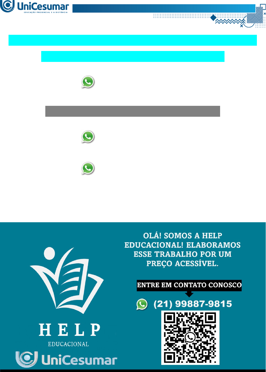 <p>MAPA – PRODUÇÃO DO CONHECIMENTO CIENTÍFICO, TECNOLÓGICO E DISRUPÇÃO - 53_2024</p><p>(21) 99887-9815</p><p>ASSESSORIA NOS SEUS TRABALHOS</p><p>(21) 99887-9815</p><p>(21) 99887-9815</p><p>Olá, estudante!</p><p>Para realização da atividade MAPA da disciplina Produção de Conhecimento Científico, Tecnológico e Disruptivo, proponho considerar a aprendizagem e discussões realizadas ao longo dos conteúdos. Nesta atividade você terá o desafio de elaborar um Projeto de Pesquisa relacionado com a sua área de atuação. Para isso, você deverá: ler atentamente o contexto inicial, pensar em um tema e em um problema de pesquisa na sua área e, por fim, realizar e enviar a atividade solicitada</p><p>Leitura do contexto:</p><p>Conversamos em nossos encontros sobre a importância da pesquisa científica para o desenvolvimento pessoal e profissional dos acadêmicos, pois ela favorece uma postura curiosa, criativa, crítica e investigativa. É preciso lembrar que o processo de elaboração da problematização da pesquisa não nasce de repente, é preciso imersão do pesquisador no tema escolhido. Esse processo é científico, exige organização e disciplina para materializar as ideias e assim definir o problema de pesquisa, até a definição das estratégias a serem adotadas.</p><p>A pesquisa científica é um processo que começa com a escolha de um tema, seguida pela formulação de um problema, com base no raciocínio científico e na compreensão do estado da arte sobre esse problema. Este conhecimento inicial surge a partir do estudo e verificação de pesquisas já existentes relacionadas ao mesmo tema.</p><p>O tema é uma escolha muito pessoal, pois é sobre este que o pesquisador vai se debruçar, fazendo leituras, se aprofundando, escrevendo, discutindo e apresentando seus trabalhos. A problematização é expressa em forma de uma pergunta, que se torna o problema central de pesquisa e que busca responder algo que se relaciona intimamente com o tema escolhido.</p><p>Atividade:</p><p>Após ler os conteúdos disponíveis na última unidade do livro e refletir sobre a pesquisa em sua área, vamos colocar as mãos na massa: agora que você já se inteirou sobre o assunto, pense em um tema e um problema de pesquisa dentro de sua área.</p><p>a) Escreva, em dois parágrafos (mínimo de 10 linhas), o contexto deste tema escolhido, explicando como este tema se encontra contemporaneamente.</p><p>b) Após isso, dentro deste contexto que você escreveu, apresente uma pergunta de pesquisa, ou seja, um problema de pesquisa.</p><p>c) Explique a importância de seu problema de pesquisa para o contexto que você apresentou.</p><p>Orientações importantes:</p><p>1. Leia o livro da disciplina.</p><p>2. Assista às aulas conceituais e ao vivo.</p><p>3. Baixe o "Formulário Padrão do MAPA", disponível no ambiente Studeo, na pasta “Material da Disciplina”, e preencha corretamente todos os campos solicitados.</p><p>4. Anexe seu “Formulário Padrão do MAPA” respondido, no espaço específico da atividade MAPA.</p><p>5. Lembre-se de clicar em “Finalizar” para efetivar sua participação</p><p>6. Caso utilize materiais de outros autores, não se esqueça de referenciar corretamente, pois o uso de trechos ou textos não referenciados será considerado plágio</p><p>7. A equipe de professores mediadores está à sua disposição para o atendimento das dúvidas por meio do “Fale com o Mediador” em seu Studeo. Aproveite essa ferramenta!</p><p>Bons estudos, sucesso!</p><p>Boa Atividade!</p><p>OLÁ! SOMOS A HELP EDUCACIONAL! ELABORAMOS ESSE TRABALHO POR UM PREÇO ACESSÍVEL.</p><p>ENTRE EM CONTATO CONOSCO</p><p>(21) 99887-9815</p><p>image1.png</p><p>image2.png</p><p>image3.png</p>