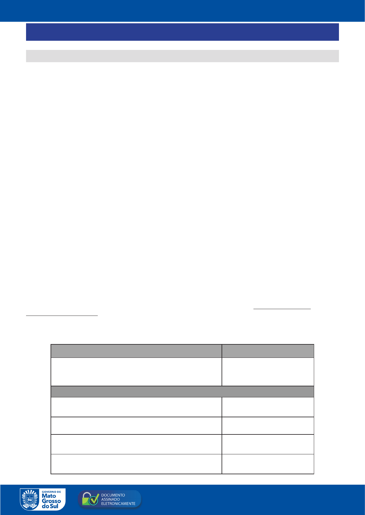 <p>Diário Oficial Eletrônico n. 11.606 9 de setembro de 2024 Página 93</p><p>A autenticidade deste documento pode ser verificada no endereço http://imprensaoficial.ms.gov.br</p><p>CONCURSO PÚBLICO E PROCESSO SELETIVO</p><p>Secretaria de Estado de Administração</p><p>EDITAL n. 1/2024 – SAD/SED/AEDU</p><p>PROCESSO SELETIVO SIMPLIFICADO – SAD/SED/AEDU/2024</p><p>OS SECRETÁRIOS DE ESTADO DE ADMINISTRAÇÃO E DE EDUCAÇÃO, no uso de suas atribuições legais, com</p><p>fundamento no art. 37, inciso IX, da Constituição Federal e art. 27, inciso IX, da Constituição Estadual, tornam</p><p>pública, para conhecimento dos interessados, a abertura das inscrições para o Processo Seletivo Simplificado</p><p>– SAD/SED/AEDU, destinado à seleção de pessoal, a ser contratado por tempo determinado, visando atender</p><p>necessidade temporária de excepcional interesse público existente nas Escolas da Rede Estadual de Ensino,</p><p>nos termos do art. 2º, inciso IX, da Lei Estadual n. 4.135, de 15 de dezembro de 2011, na forma das normas e</p><p>condições a seguir expostas:</p><p>1. DISPOSIÇÕES PRELIMINARES</p><p>1.1. A realização do Processo Seletivo Simplificado – SAD/SED/AEDU, visa a contratação de profissionais com</p><p>formação escolar de nível médio, conforme especificado no item 2 deste Edital, para atender as necessidades das</p><p>Escolas da Rede Estadual de Ensino.</p><p>1.2. O Processo Seletivo Simplificado – SAD/SED/AEDU será realizado sob responsabilidade da Secretaria de</p><p>Estado de Administração, em conjunto com a Secretaria de Estado de Educação, conduzido pela Coordenadoria</p><p>de Processos Seletivos – CPROS/SSIP/SAD.</p><p>1.3. Poderá participar do Processo Seletivo Simplificado – SAD/SED/AEDU todo profissional que possua os</p><p>requisitos básicos e demais condições exigidas para o exercício da função, conforme especificado no item 2 deste</p><p>Edital, bem como nos dispositivos normativos atinentes à matéria.</p><p>1.4. A inscrição do candidato no Processo Seletivo Simplificado – SAD/SED/AEDU, implicará o conhecimento e a</p><p>aceitação irrestrita das normas e exigências contidas neste Edital e em outros que vierem a ser publicados como</p><p>complementação das informações no Diário Oficial Eletrônico, certificando-se que preenche todos os requisitos</p><p>exigidos para exercer a função a que concorre.</p><p>1.5. É de inteira responsabilidade do candidato, acompanhar todos os atos publicados sobre o Processo Seletivo</p><p>Simplificado – SAD/SED/AEDU no Diário Oficial Eletrônico, por meio do endereço www.spdo.ms.gov.br, e do site</p><p>www.concursos.ms.gov.br, tomar conhecimento de seu conteúdo e não alegar desconhecimento de qualquer tipo</p><p>ou natureza.</p><p>1.6. O Processo Seletivo Simplificado – SAD/SED/AEDU será realizado de acordo com o Cronograma de Atividades</p><p>abaixo, o qual possui caráter exclusivamente informativo e poderá sofrer alterações, atualizações ou acréscimos,</p><p>a critério da Administração Estadual, circunstância esta que será divulgada mediante edital próprio:</p><p>Atividade Período</p><p>Inscrição e Envio de documentos para a Avaliação</p><p>Curricular</p><p>Das 8 horas do dia 9 de</p><p>setembro às 17 horas do dia</p><p>23 de setembro de 2024</p><p>Publicação dos resultados preliminares das solicitações de</p><p>inscrição e da Avaliação Curricular</p><p>9 de outubro de 2024</p><p>Período Recursal 9 e 10 de outubro de 2024</p><p>Publicação dos resultados dos recursos relativos às</p><p>solicitações de inscrição e à Avaliação Curricular</p><p>16 de outubro de 2024</p><p>Publicação dos resultados definitivos das solicitações de</p><p>inscrição e da Avaliação Curricular</p><p>16 de outubro de 2024</p><p>Diário Oficial Eletrônico n. 11.606 9 de setembro de 2024 Página 94</p><p>A autenticidade deste documento pode ser verificada no endereço http://imprensaoficial.ms.gov.br</p><p>Atividade Período</p><p>Convocação dos candidatos habilitados e aprovados dentro</p><p>da pontuação mínima exigida na Etapa II para a realização</p><p>presencial da Entrevista de Verificação dos Candidatos</p><p>Cotistas Negros</p><p>16 de outubro de 2024</p><p>Realização à distância da Entrevista de Verificação dos</p><p>Candidatos Cotistas Negros</p><p>21 e 22 de outubro de 2024</p><p>Divulgação do resultado Preliminar da Entrevista de</p><p>Verificação dos Candidatos Cotistas Negros e da Análise</p><p>Documental dos Candidatos Indígenas e PCD</p><p>24 de outubro de 2024</p><p>Recurso da Entrevista de Verificação dos Candidatos</p><p>Cotistas Negros e da Análise Documental dos Candidatos</p><p>Indígenas e PCD</p><p>24 e 25 de outubro de 2024</p><p>Publicação dos Resultados definitivos da Entrevista de</p><p>Verificação dos Candidatos Cotistas Negros e da Análise</p><p>Documental dos Candidatos Indígenas e PCD</p><p>31 de outubro de 2024</p><p>Publicação do resultado final e homologação do Processo</p><p>Seletivo Simplificado</p><p>31 de outubro de 2024</p><p>Publicação da convocação dos candidatos aprovados</p><p>dentro do quantitativo de vagas oferecidas, para</p><p>apresentação de documentos, comprovação de requisitos e</p><p>contratação</p><p>31 de outubro de 2024</p><p>Período de realização da apresentação de documentos,</p><p>comprovação de requisitos e contratação dos candidatos</p><p>aprovados dentro do quantitativo de vagas oferecidas</p><p>6 de novembro de 2024</p><p>2. DAS FUNÇÕES, SUAS ESPECIFICAÇÕES E REQUISITOS</p><p>2.1. A função oferecida, a carga horária, a remuneração e as atribuições básicas a serem exercidas são as</p><p>especificadas no quadro abaixo:</p><p>Cargo: Assistente de Atividades Educacionais</p><p>Número de Vagas: 415 (quatrocentos e quinze) vagas</p><p>Requisitos</p><p>Obrigatórios: Comprovação da Conclusão do Ensino Médio</p><p>Carga 