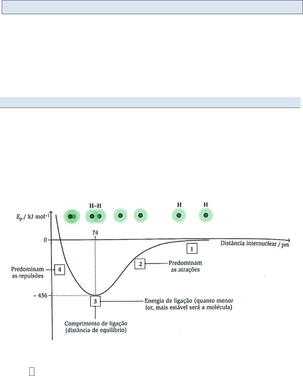 <p>Prof. Marco Pereira | www.estudafq.pt</p><p>Página 1 de 12</p><p>ESCOLA BÁSICA E SECUNDÁRIA DA CALHETA</p><p>Física e Química A – 10.º Ano</p><p>Resumo Q2.1</p><p>Unidade 2: Propriedades e transformações da matéria / 2.1. Ligação Química</p><p>2.1.1. Tipos de ligações químicas</p><p>2.1.2. Ligação covalente.</p><p>Estruturas de Lewis;</p><p>Energia de ligação e comprimento de ligação;</p><p>Geometria molecular;</p><p>Polaridades das ligações e polaridade das moléculas.</p><p>Estrutura de moléculas orgânicas e biológicas</p><p>2.1.3. Ligações intermoleculares</p><p>2.1.1. Tipos de ligações químicas</p><p>A formação de ligações químicas baseia-se no Princípio da Energia Mínima:</p><p>todos os sistemas tendem a adquirir o estado de menor energia possível, por ser esse</p><p>o estado mais estável.</p><p>Estabelece-se uma ligação química quando, durante a aproximação dos átomos, as forças</p><p>atrativas equilibram com as forças repulsivas. O estabelecimento de ligações químicas</p><p>confere maior estabilidade a um sistema de dois ou mais átomos, em comparação com a sua</p><p>energia quando os átomos estão separados.</p><p>Variação da energia potencial em função da distância internuclear na formação de uma molécula diatómica (H2)</p><p>Posição 1: Os dois átomos estão muito afastados e não interagem entre si - a energia do</p><p>sistema é zero.</p><p>Prof. Marco Pereira | www.estudafq.pt</p><p>Página 2 de 12</p><p>Posição 2: à medida que os átomos se aproximam, a energia do sistema vai diminuindo até</p><p>atingir um mínimo – as forças atrativas (núcleo – eletrão) são mais intensas do que as forças</p><p>repulsivas (núcleo – núcleo e eletrão-eletrão).</p><p>Posição 3: Os núcleos atingem uma distância mínima (a que corresponde uma energia</p><p>mínima) à qual está associado um estado de máxima estabilidade formando-se a ligação</p><p>química:</p><p>- a distância entre os núcleos dos átomos quando a energia é mínima corresponde a</p><p>uma distância de equilíbrio denominada por comprimento de ligação.</p><p>- quanto maior for o valor (em módulo) da energia mínima, maior será a estabilidade da</p><p>molécula. Denomina-se energia de ligação e o seu valor corresponde à energia que é</p><p>necessário fornecer para quebrar a ligação entre os átomos.</p><p>Posição 4: Se a distância entre os dois núcleos diminuísse, as forças de repulsão (núcleo -</p><p>núcleo e eletrão-eletrão) seriam mais intensas do que as forças atrativas (núcleo – eletrão),</p><p>o que levava a um aumento da energia da molécula. O sistema tornar-se-ia instável.</p><p>Tipos de ligação química</p><p>Ligação covalente Ligação iónica Ligação metálica</p><p>Ocorre entre átomos de</p><p>não metais que se ligam</p><p>através da partilha de</p><p>eletrões, como na</p><p>molécula de H2.</p><p>Resulta da transferência</p><p>de eletrões de valência</p><p>entre os átomos que se</p><p>ligam.</p><p>Ocorre entre metais (que</p><p>formam catiões) e não</p><p>metais (que formam</p><p>aniões).</p><p>Desta atração resulta uma</p><p>estrutura em rede muito</p><p>ordenada.</p><p>Os átomos mantêm-se</p><p>juntos devido às forças de</p><p>atração que exercem sobre</p><p>os eletrões de valência dos</p><p>átomos vizinhos.</p><p>Esta atração é tão forte que</p><p>os eletrões de valência</p><p>acabam por ter liberdade</p><p>de movimento, deslocando-</p><p>se ao longo da estrutura –</p><p>eletrões deslocalizados</p><p>2.1.2. Ligação covalente.</p><p>Nas ligações covalentes existe partilha significativa de eletrões de valência entre os átomos</p><p>que formam a molécula.</p><p>Para analisar as ligações covalentes que se estabelecem entre os átomos recorre-se à</p><p>notação de Lewis, de acordo com a qual os eletrões de valência do átomo são representados</p><p>por pontos (ou cruzes) à volta do símbolo químico.</p><p>Por convenção, os quatro primeiros eletrões são colocados sequencialmente em torno dos</p><p>quatro lados do símbolo do elemento e os restantes são adicionados posteriormente,</p><p>formando pares.</p><p>Prof. Marco Pereira | www.estudafq.pt</p><p>Página 3 de 12</p><p>Regra do octeto - quando um átomo estabelece urna ligação covalente, partilha eletrões até</p><p>estar rodeado de oito eletrões de valência.</p><p>Esta regra não se aplica ao átomo de hidrogénio, que apenas pode estabelecer uma ligação,</p><p>ou seja, só partilha dois eletrões, uma vez que só possui um eletrão de valência.</p><p>Exemplos: Formação da molécula de H2O e Cl2 com as notações de Lewis dos átomos. A</p><p>estabilidade destas moléculas segue a regra dos octeto à excepção do Hidrogénio que segue</p><p>a regra do dupleto.</p><p>Tipos de ligação covalente:</p><p>• Ligação covalente simples: Ligação em que há partilha de dois eletrões (um de cada</p><p>átomo), ou seja, há partilha de um par de eletrões.</p><p>• Ligação covalente dupla: Ligação em que há partilha de quatro eletrões (dois de cada</p><p>átomo), ou seja, há partilha de dois pares de eletrões.</p><p>• Ligação covalente tripla: Ligação em que há partilha de seis eletrões (três de cada</p><p>átomo), ou seja, há partilha de três pares de eletrões.</p><p>ENERGIA DE LIGAÇÃO E COMPRIMENTO DE LIGAÇÃO</p><p>A energia de ligação e o comprimento de ligação são dois parâmetros que permitem</p><p>caracterizar a ligação covalente.</p><p>Energia de ligação - é a energia necessária para quebrar uma dada ligação numa mole de</p><p>moléculas no estado gasoso. Corresponde ao valor absoluto da energia potencial mínima da</p><p>molécula na posição de equilíbrio.</p><p>A energia de ligação avalia a força de uma ligação covalente:</p><p>Maior estabilidade = Maior energia de ligação = Maior número de eletrões partilhados</p>
