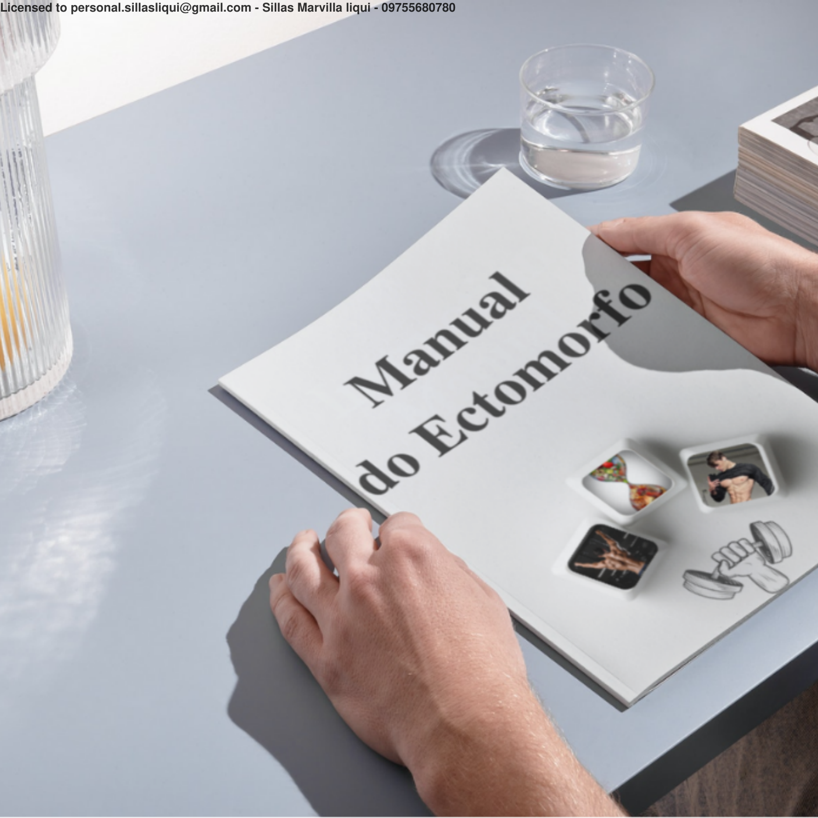 <p>Licensed to personal.sillasliqui@gmail.com - Sillas Marvilla liqui - 09755680780</p><p>Esse material foi criado e é de autoria exclusiva de Manual do Ectomorfo E</p><p>declaramos</p><p>que é expressamente proibido</p><p>reproduzir, publicar, distribuir, difundir ou,</p><p>de qualquer forma tornar o conteúdo</p><p>desse material acessivo a terceiros para</p><p>fins de comunicação pública ou de</p><p>comercialização,</p><p>colocando-os disponíveis em qualquer</p><p>site ou rede social, serviço online, fórum</p><p>de discussão ou message board</p><p>(afixação para consulta), ou em cópias</p><p>de papel sem a prévia autorização do Manual do Ectomorfo.</p><p>As sugestões de hábitos e orientações</p><p>retratados neste livro têm como único</p><p>objetivo informar e educar. Este livro</p><p>digital está disponível baseando-se no</p><p>completo entendimento de que ele não</p><p>oferece nenhum tipo de prescrição médica</p><p>e de que não tem intenção nenhuma de</p><p>substituir orientações médicas ou diagnósticos de profissionais da área da saúde.</p><p>É de total importância que, antes de começar qualquer prática de novos hábitos</p><p>alimentares, inclusive os alimentos sugeridos neste livro, você tenha uma</p><p>aprovação completa de algum profissional licenciado da área.</p><p>Aviso legal</p><p>Manual do Ectomorfo suporte@manualectomorfo.com</p><p>Licensed to personal.sillasliqui@gmail.com - Sillas Marvilla liqui - 09755680780</p><p>Introdução ............................................................. 05</p><p>O Que é ser ectomorfo? .......................... 07</p><p>Entendendo sua genética ..................... 09</p><p>Porque a testosterona é importante? ............................. 10</p><p>Entendendo seu metabolismo rápido ........................... 13</p><p>Macronutrientes</p><p>O que são? ........................................................... 17</p><p>Proteínas ................................................... 18</p><p>Como Calcular a Quantidade de Proteínas que devo</p><p>Comer por Dia?... 19</p><p>Alimentos Ricos em Proteínas ................................ 20</p><p>Carboidratos .................................................................. 24</p><p>Alimentos Ricos em Carboidratos ................................ 18</p><p>Lista de Carboidratos .................................... 33</p><p>Lipídios (Gordura) .......................................... 34</p><p>Como Calcular a % de Gordura/BF ............................. 37</p><p>Tabela de BF .................................................... 39</p><p>Quantas G de Gordura Tenho que Comer por</p><p>Dia?........... 40</p><p>Alimentos Ricos em Gorduras Saudáveis ......................... 41</p><p>Lista de Gordura Trans (ruins) ..................... 44</p><p>Como montar sua dieta</p><p>Necessidades Calóricas ........................................ 46</p><p>Hidratação Adequada .............................. 47</p><p>Dicas para Manter-se Hidratado ........................................ 49</p><p>Como montar a dieta ..................................... 50</p><p>Exemplo de dieta ....................... ...................52</p><p>Montando o café da manhã ...................................... 53</p><p>Montando o almoço ............................................... 54</p><p>Montando pré-treino ....................................................... 55</p><p>Montando a janta ................................................. 56</p><p>Montando o lanche reforçado ................................................. 57</p><p>Montando a ceia ........................... 58</p><p>Considerações finais ...................................... 59</p><p>Importância da aveia......................... 60</p><p>Importância do pão integral ...................... 61</p><p>ÍNDICE</p><p>Como montar seu Treino</p><p>Meu treino .....................................................63</p><p>Anatomia do Bíceps ..................................64</p><p>Treino de Bíceps............................................................. 65</p><p>Variações Rosca Martelo .......................... 67</p><p>Treino de Bíceps ..................... 70</p><p>Anatomia do Ante - Braço ............................. 72</p><p>Treino de Ante - Braço ........................... 74</p><p>Anatomia do Peito ........................................................... 77</p><p>Porção Superior do Peito ................................................... 78</p><p>Porção Medial do Peito?... ..............................................81</p><p>Porção Inferior do Peito ................................ 85</p><p>Anatomia do Ombro ...................................... 86</p><p>Porção Anterior do Ombro ...........................................................</p><p>87</p><p>Porção Média do Ombro ................................................... 89</p><p>Porção Posterior do Ombro ......................................... 91</p><p>Anatomia do Tríceps ................................................ 93</p><p>Exercícios de Tríceps .................................................................. 94</p><p>Anatomia Costas ................................ 102</p><p>Exercícios de Costas .................................... 104</p><p>Anatomia das Pernas .......................................... 113</p><p>Treino de Pernas ............................. 115</p><p>Fortalecimento da Lombar .................................................... 128</p><p>Importância do Abdômen ............................................. 131</p><p>Exercícios de Abdômen ............................................ 133</p><p>Hipertrofia e Número de Repetições ..................... 138</p><p>Manual do Ectomorfo suporte@manualectomorfo.com</p><p>Licensed to personal.sillasliqui@gmail.com - Sillas Marvilla liqui - 09755680780</p><p>ÍNDICE</p><p>Manual do Ectomorfo suporte@manualectomorfo.com</p><p>Fichas de