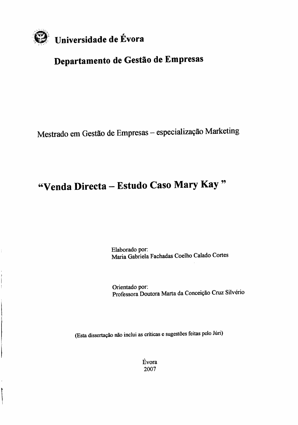 <p>, :+,{.Qii.'-"*-{']rrÊ: '.ft#- Universidade de Evora</p><p>|1!"</p><p>Departamento de Gestão de Empresas</p><p>Mestrado em Gestão de Empresas - espe cialização Marketing</p><p>ooVenda Directa-Estudo Caso Mary Kay "</p><p>Elaborado por:</p><p>Maria Gabriela Fachadas coelho calado cortes</p><p>Orientado por:</p><p>Professora Doutora Marta da Conceição Cruz Silvério</p><p>(Esta dissertação não inclui as críticas e sugestões feitas pelo Júri)</p><p>Évora</p><p>2007</p><p>ffi Universidade de Évora</p><p>Departamento de Gestão de Empre§as</p><p>Mestrado em Gestão de Empresas - espe cialização Marketing</p><p>o'Venda Directa-Estudo Caso Mary Kay "</p><p>Elaborado por:</p><p>Maria Gabriela Fachadas Coelho Calado Cortes )t L 1o6</p><p>Orientado por:</p><p>Professora Doutora Marta da Conceição Cruz Silvério</p><p>(Esta dissertação não inclui as críücas e sugestões feitas pelo Júri)</p><p>Evora</p><p>2007</p><p>"&</p><p>R.§</p><p>n</p><p>lF-</p><p>una, atifuls eilp no camTntigão.'</p><p>Tnnillrutdsla</p><p>(Fundadora daMary Kay)</p><p>Resumo</p><p>O objectivo desta dissertação é estudar as vantagens competitivas do marketing directo</p><p>aplicãdas a uma empresa d-e venda directa, do sector dos cosméticos, Mary Kay.</p><p>No marketing directo, a informação disponível, sobre o comportamento e preferências</p><p>dos client.r, é utilizada paÍa estabelecer ê manter um contacto directo com eles'</p><p>Neste estudo, foram analisadas a missão e a filosofia da empre§a MK-</p><p>.Graças</p><p>a elas,</p><p>Mary Kay ArU transformou uma micro empresa, numa empresa internacional, única no</p><p>,,rndo, pela forma somo tem ajudado e motivado as mulheres'</p><p>A Mary Kay está presente no Mercado português desde 1994. Está representada em</p><p>mais aõ so faíses, àndo mais de 1.6 mihôes dé Consultoras. Anualmente, faúxamais</p><p>de 3 .200 milhões de dolares.</p><p>para finalizar, serão expostas conclusões, sugestões e limitações notadas ao longo de</p><p>todo o estudo. Serão apôntados caminhos para novos estudos nesta irea.</p><p>palavras-chaves: Mary Kay Aslu Mary Kuy, venda Directa e sucesso</p><p>"Direct Sale - Mary KaY Case StudY"</p><p>Abstract</p><p>The aim of this essay is to study the competitive advantages of the_direct marketing</p><p>applied to a company of direct sales, from the cosmetics sector, Mary Kay</p><p>In direct marketing, the available information about the customers' preferences and</p><p>behaviour is used tó establish and keep a direct contact with them.</p><p>In this study the mission and philosophy of the comp any Mary Kay were analysed.</p><p>Thanks to thenq Mary Kay esn traníformed a micro company into an international</p><p>company, unique in thã *oitd due to the way it has helped and motivated women.</p><p>Mary Kayis present inthe portuguese market since lgg4.It is represented in more than</p><p>30 countries and has more thaã 1.6 million consultants. It profits more than 3200</p><p>million dollars a year.</p><p>Finally, some conclusions, suggestions and limitations observed throughout the study</p><p>will bá mentioned. Some indications to new studies in this aÍeawill be pointed out.</p><p>I(ey Words: Mary Kay Ash, Mary Kuy, Direct sale and Success</p><p>Agradecimentos</p><p>Circunstâncias especiais acompanharam a realização desta dissertação. Obstáculos de</p><p>víria ordenr, situaçOes de entusiasmo, esperança e muita força, mas, tambénr, de</p><p>hesitação e áesânimo, aconteceram em vari-os momentos. É nestas alturas que mais se</p><p>apreciâ o calor humano daqueles 9u0, de alguma maneir4 podem ajudar'</p><p>Este trabalho não teria sido possível, sem a colaboração de algumas pessoas, a quem</p><p>neste momento, desejo agradecer:</p><p>A professora Doutora Marta Silvério, pela orierúação, pelo auxílio e por todos os</p><p>coúecimerúos que me transmitiu.</p><p>À empresa Mary Kay, na pessoa da Dr." Inês Noronha, pelos dados que me</p><p>disponibilizou sobre a empresa.</p><p>À Directora Sénior Executiva Dulce Araújo, à Directora de Vendas Paula Moreira e à</p><p>Consultora de Belezalsabel Cortes, pelo apoio logístico que me deram.</p><p>Aos meus pais, irmã e amigos, pelo incentivo e suporte emocional que me dispensararn,</p><p>ao longo darealização de toda a dissertaçào.</p><p>Índice</p><p>ÍI\IOfCn DE FIGI]RAS .............o...........r....r.......................r........r.......o..............r. .....12</p><p>ÍUOICrc DE TABELAS .......................o..o....r....o.....o............o.............r.......r.............. l3</p><p>LISTA DE ABREYIATURAS E SIGLAS ............................................r.................. 14</p><p>I - INTRODUÇÃO ........................r.......................o...............t................o...o............. l5</p><p>f - INTRODUÇÃO o.!o.......tr......r....o.oo.r.....o.o...o............r...o.......oi.....o.........ooto............ 16</p><p>[ - ENQUADRAMENTO TEORICO.........................r......r............................r....... l9</p><p>1.MARtr(ETTNG .....r..o..............r......r.........................r............................o......r........... 21</p><p>1.1. A Nova Função dO Mar{rgtill$ ........................o........................e ...............'..............o.... ................22</p><p>2. MARI(ETING DIRECTO ...........................r.r....................t..r.............................. 29</p><p>2.1. ItgftniçiiO de Mafketing DilWtO .......o.......o....e......oo...e ..r..o.......o......................o..e .o.o.....o.o............. 29</p><p>2.2. SiStemA de Markgting DireCtO..'.....................................................r..r.................o.......................30</p><p>2.3. Ferramentas dO Marketing Diruto..............................................o.............................................. 32</p><p>2.4. IhtAhaSe Marketing .............o.......o..........r..............r...o......