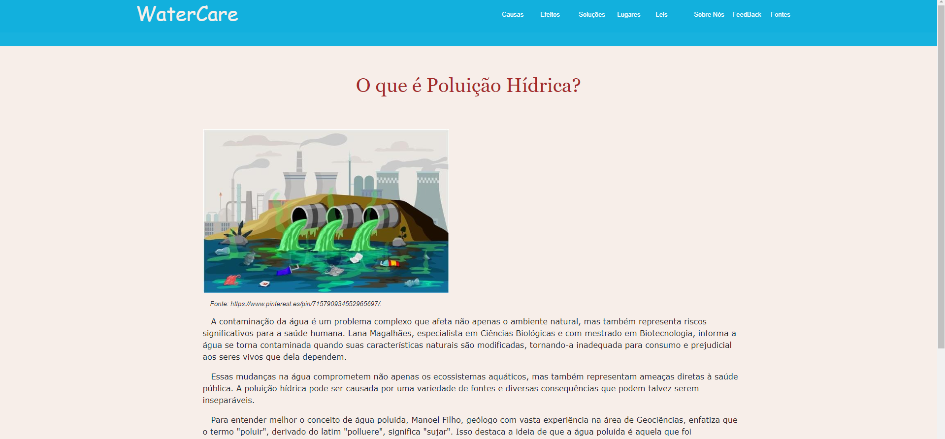 <p>WaterCare Causas Efeitos Soluções Lugares Leis Sobre Nós FeedBack Fontes O que é Poluição Hídrica? Fonte: https://www.pinterest.es/pin/715790934552965697 A contaminação da água é um problema complexo que afeta não apenas o ambiente natural, mas também representa riscos significativos para a saúde humana. Lana Magalhães, especialista em Ciências Biológicas e com mestrado em Biotecnologia, informa a água se torna contaminada quando suas características naturais são modificadas, tornando-a inadequada para consumo e prejudicial aos seres vivos que dela dependem. Essas mudanças na água comprometem não apenas os ecossistemas aquáticos, mas também representam ameaças diretas à saúde pública. A poluição hídrica pode ser causada por uma variedade de fontes e diversas consequências que podem talvez serem Para entender melhor o conceito de água poluída, Manoel Filho, geólogo com vasta experiência na área de Geociências, enfatiza que termo "poluir", derivado do latim "polluere", significa "sujar". Isso destaca a ideia de que a água poluída é aquela que foi</p>