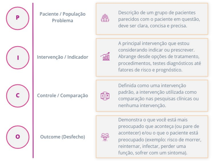 <p>Aprofundando alguns conceitos:</p><p>* Os valores de P são uma medida da probabilidade relacionada ao acaso. Mais precisamente, é a probabilidade de se encontrar um resultado de magnitude igual ou mais ampla considerando que não haja diferença real entre os grupos estudados. Se o valor de P for baixo (em geral menor do que 0,05), significa que essa probabilidade, relacionada ao acaso, é baixa (menos do que 5%). Isto é, sendo improvável que o resultado seja influenciado pelo acaso, acreditamos em uma diferença real, lembrando que esse resultado ainda pode ter sido alterado devido a algum viés e, por isso, sempre precisamos avaliar criticamente o estudo antes de olhar o resultado do valor de P. Um efeito com um valor de P baixo é chamado de resultado “estatisticamente significativo”, que não devemos confundir com um resultado clinicamente importante.</p><p>* Os intervalos de confiança (ICs) costumam ser mais informativos do que os valores de P, pois avaliam a imprecisão. Eles são uma estimativa da faixa de valores que provavelmente inclui o valor real. Em geral, os ICs são colocados em 95%, que significa a faixa de valores que tem uma probabilidade de 95% de incluir novos resultados em caso de repetição do estudo com mesma metodologia. Se o IC 95% para a diferença entre os grupos de tratamento e controle é pequeno e não se sobrepõe ao ponto de “não efeito” (0 para uma diferença ou 1 para uma razão), acreditamos que o resultado é real (isto é, com um valor de P menor do que 0,05).</p><p>Aplicando a evidência na prática clínica</p><p>Vamos voltar ao caso exemplo desta unidade. Sr. Varonil retorna uma semana após a prescrição das medicações para mostrar os resultados de exames e diz que não iniciou a espironolactona.</p><p>Fonte: Freepik.com</p><p>Estudo de caso</p><p>· – Dra. Ana, esse remédio aqui (mostra caixa da espironolactona fechada) que você mandou eu tomar eu nem comecei. O Juca meu vizinho falou que esse remédio faz crescer os peitos. É verdade?</p><p>· – Então, Sr. Varonil, em 10% dos pacientes pode acontecer isso sim. Mas vale a pena tomar, ela reduz mortalidade e hospitalização.</p><p>· – Tudo bem, doutora. Se você está dizendo, eu acredito em você.</p><p>Ao chegar em casa Ana Cristina entra em contato o seu tutor do Programa Mais Médicos para discutir o caso do Sr. Varonil e tirar algumas dúvidas que teve. “Igor, semana passada usei pela primeira vez as fontes secundárias para uma dúvida que tive e me ajudou muito. Em poucos minutos resolvi minha dúvida.</p><p>Contudo, queria entender melhor o conceito de ‘Recomendação forte’ e ‘Recomendação fraca’ que apareceu (print da tela do Dynamed). Ah, também tive muita dificuldade na hora de falar com ele da importância de usar a espironolactona. Você poderia sugerir alguma leitura?”. O médico explica sobre os níveis de evidência e grau de recomendação, conversa sobre decisão compartilhada e indica alguns textos sobre os assuntos. Sugere que Ana Cristina faça uma pesquisa sobre GRADE. Sugere também que Ana inicie a conversa sobre cuidados paliativos com o Sr. Varonil e a família.</p><p>E você entende o significado da classificação GRADE?</p><p>O sistema GRADE (Grading of Recommendation, Assessment, Development and Evaluation – Graus de Recomendação, Avaliação, Desenvolvimento e Avaliações) surgiu em 2000, por meio de uma colaboração de pesquisadores, epidemiologistas e estatísticos que tinham como objetivo desenvolver um sistema ideal de classificação da qualidade das evidências e determinação da força das recomendações para as diretrizes de prática clínica. A intenção era criar um sistema transparente e sensível para graduar as evidências e recomendações que fosse universal, na tentativa de que um mesmo modelo de classificação fosse seguido pelo maior número de organizações.</p><p>O GRADE classifica a qualidade da evidência em quatro níveis: alto, moderado, baixo e muito baixo, conforme pode ser visto na figura a seguir. A evidência baseada em ensaios clínicos randomizados e controlados é classificada inicialmente como alta qualidade, estudos observacionais são classificados como de baixa qualidade. O estudo pode ter uma melhora ou piora da sua classificação a depender da presença de vieses, tamanho do efeito e dose-resposta, inconsistência e imprecisão.</p><p>Figura 17 – Graduação dos níveis de evidência de acordo com o sistema GRADE.</p><p>Fonte: Brasil (2014).</p><p>Nível de evidência representa a confiança na informação utilizada em apoio a uma determinada recomendação. No sistema GRADE, a avaliação da qualidade da evidência é realizada para cada desfecho analisado para uma dada tecnologia, utilizando o conjunto disponível de evidência. Os níveis de evidência podem ser considerados como: alto, moderado, baixo ou muito baixo, conforme descrito no quadro.</p><p>Cinco são os fatores que podem diminuir a qualidade da evidência nos ensaios clínicos: limitação do estudo, inconsistência, imprecisão, direcionamento e viés de publicação. Em relação aos estudos observacionais, o GRADE considera-os como baixo nível, podendo aumentar se houver:</p><p>· 1) grande magnitude de efeito do tratamento;</p><p>· 2) evidência de uma gradiente dose-resposta;</p><p>· 3) viés de seleção contrário (pacientes em piores condições recebem a intervenção e mesmo assim têm efeito melhor que o grupo não tão grave).</p><p>Graduação do nível de evidência e suas respectivas descrições.</p><p>· Alto</p><p>· Moderado</p><p>· Baixo</p><p>· Muito Baixo</p><p>Fonte: Brasil (2014).</p><p>A força da recomendação expressa a ênfase para que seja adotada ou rejeitada uma determinada conduta, considerando potenciais vantagens e desvantagens. São consideradas vantagens os efeitos benéficos na melhoria na qualidade de vida, aumento da sobrevida e redução dos custos. São c