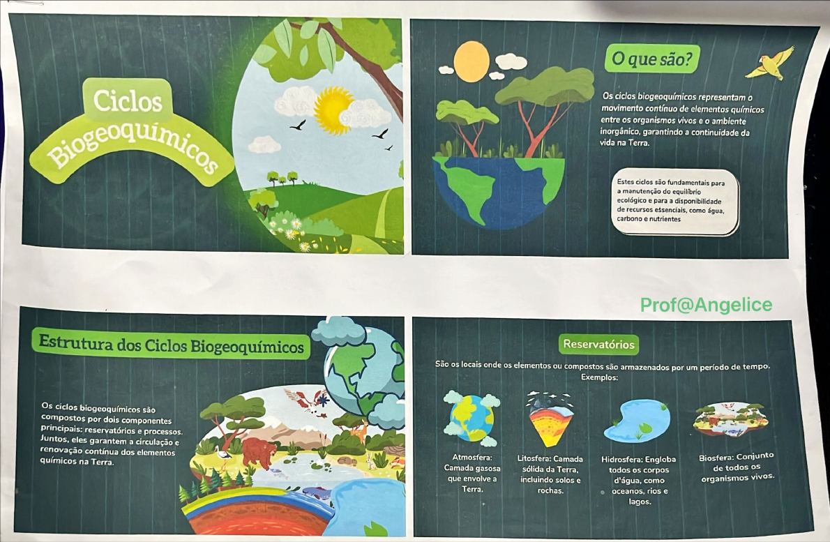 <p>que são? Os ciclos biogeoquímicos representam Ciclos movimento contínuo de elementos químicos entre os organismos vivos e ambiente inorgânico, garantindo a continuidade da vida na Terra. Estes ciclos são fundamentais para a manutenção do equilíbrio ecológico e para a disponibilidade de recursos essenciais, como água, carbono e nutrientes Prof@Angelice Reservatórios Estrutura dos Ciclos Biogeoquímicos São os locais onde os elementos ou compostos são armazenados por um período de tempo. Exemplos: Os ciclos são dois Juntos, renovação compostos principais: eles reservatórios contínua por garantem componentes circulação e processos. a e dos elementos Atmosfera: Litosfera: Camada Hidrosfera: Engloba Biosfera: Conjunto de todos os químicos na Terra. Camada gasosa sólida da Terra, todos os corpos que envolve a incluindo solos e d'água, como organismos vivos. Terra. rochas. oceanos, rios e</p><p>Processos Ciclo da Água São as ações ou reações que movem os elementos entre os reservatórios. Exemplos: ciclo da água, também conhecido como ciclo hidrológico, descreve a contínua movimentação da água na Terra. A água circula entre a atmosfera, a terra e os corpos Evaporação: Decomposição: Assimilação: d'água através de processos físicos, Transformação da Quebra de matéria Absorção de Acúmulo de garantindo a disponibilidade de de água líquida em orgânica por nutrientes pelas partículas no água para todos os seres vivos. vapor. organismos plantas. fundo de corpos decompositores. ho pg pg d Etapas Pontos-chave: Ciclo da Água Evaporação: Ocorre quando a água na superfície se transforma em vapor devido ao calor do sol. Principal fonte de umidade para a atmosfera. Transpiração: Processo pelo qual as plantas liberam vapor d'água através de seus Junto com a evaporação, forma a "evapotranspiração" vapor d'água na atmosfera se resfria e se transforma em de água ou cristais de gelo. Essas ou cristais agrupam-se para formar nuvens. Precipitação: Ocorre quando as ou cristais nas nuvens se tornam pesados suficiente para cair. Pode ser na forma de neve, granizo ou orvalho. Infiltração: Parte da água da se infiltra no solo, contribuindo para os Escoamento superficial: A água que não se infiltra escoa sobre a superfície da terra, alimentando rios, lagos eventualmente, oceanos.</p><p>atmosfera do carbono Etapas CO2 fotossíntese respiração do carbono é a sequência de emissão de processos que regula fluxo de gás carbônico carbono entre a atmosfera, terra, oceanos e organismos vivos. carbono é um elemento fundamental para a vida, sendo a base estrutural de orgânicas como proteínas, CO2 respiração carboidratos e lipídios. decomposição e combustível fóssil Pontos-chave Ciclo do carbono A Influência Humana no Ciclo do As plantas verdes, algas e certas bactérias capturam CO2 da atmosfera e, com a ajuda da energia solar, Carbono convertem em glicose e outros compostos Respiração: Todos organismos vivos, induindo plantas, animais e microrganismos, consomem compostos para obter energia, liberando CO2 como subproduto. Decomposição: Decompositores, como fungos e bactérias, quebram matéria orgânica morta, liberando carbono no solo, CO2 que pode ser usado por plantas ou liberado na atmosfera como CO2 Sedimentação e Formação de Combustíveis Restos orgánicos acumulados em ambientes aquáticos ou terrestres podem, ao longo de milhões de anos, ser transformados em combustíveis fósseis, armazenando carbono no subsolo. Queima de A queima de vegetação ou combustíveis fósseis libera carbono armazenado na forma de Combustíveis Práticas Desmatamento Industrialização Acidificação dos Fósseis Agrícolas oceanos Os oceanos absorvem uma grande quantidade de CO2 da atmosfera, onde parte dele é usado por organismos marinhos e parte fica dissolvida na água.</p><p>Etapas descreve a e entre e um elemento essencial para a sendo componente de e Ciclo do Ciclo do per de do descreve a circulação que entre ambiente terrestre e de cides C possui AS e em e E elemento a drave e ATP de e que</p><p>Ciclo do Pontos-chave: tapas Não existe o elemento animals obtém Ciclo do em forma gasosa. fostatos por meio da água dos Erosão das Rochas: fósforo é liberado das rochas através da erosão, fornecendo fosfatos solúveis que podem ser pelas plantas. Assimilação: Quando chega Quando as rochas sofrem As plantas absorvem fosfatos do solo e os incorporam moléculas orgânicas. nesse estado, processo processos erosivos ou de retorno ao ecossistema Consumo e Excreção: volta é tardio. solo Animais obtêm fósforo ao consumir plantas e outros animais. Eles excretam fósforo em seus pelas plantas. retornando-o ao ambiente. Decomposição: Quando plantas e animais morrem, decompositores liberam fósforo contido em seus corpos de volta dissolvido ao solo ou água. A decomposição na água. Sedimentação: da matéria Em corpos d'água, fósforo pode se ligar a partículas e sedimentar, formando novas rochas ou é capar de devolver ou águs depósitos no leito Movimento Geológico: Absorvem Parte desse aproveitado da matéria orgânica PO do solo. levado pelas para rios/lagos/mares e acaba Através de processos tectônicos, rochas ricas em fósforo podem ser trazidas de volta à superfície, As plantas absorvem se aderindo reiniciando ciclo. dissolvidos no solo na água para Etapas Ciclo do Enxofre Terra Transporte Oceano Emissões Compostos SO2 Vulcânicas Reduzidos SO2 / SO2 SO2 S clo do enxofre descreve a ulação e transformação do Compostos Compostos Chuva Reduzidos Reduzidos ofre entre a atmosfera, litosfera, S S Deposição Vapores, Emissões Chuva outras osfera e biosfera. enxofre é Seca Spray Deposições etc Marinho Vegetais elemento essencial para a vida, Emissões Emissões ndo presente em aminoácidos, Blogênicas Oceanos Costeiras minas e coenzimas. Solo Rios Oceano Rochas Sedimento Magma</p><p>Ciclo do enxofre A Int