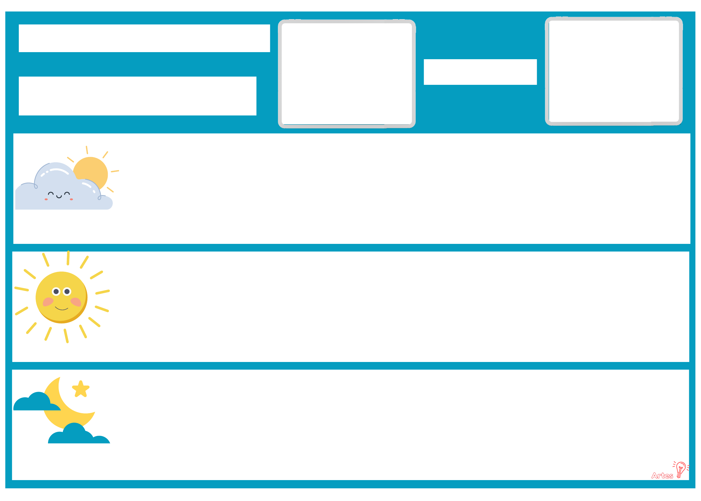 <p>QUADRO DE ROTINAS DIÁRIAS</p><p>HOJE É:</p><p>O DIA ESTÁ:</p><p>MANHÃ</p><p>TARDE</p><p>NOITE Taty</p><p>ArtesArtes</p><p>QUADRO DE ROTINAS DIÁRIAS</p><p>HOJE É:</p><p>O DIA ESTÁ:</p><p>MANHÃ</p><p>TARDE</p><p>NOITE Taty</p><p>ArtesArtes</p><p>ACORDAR ARRUMAR A</p><p>CAMA</p><p>ESCOVAR</p><p>OS DENTES</p><p>IR AO</p><p>BANHEIRO TOMAR CAFÉ ALMOÇAR</p><p>IR A ESCOLA BRINCAR</p><p>GUARDAR OS</p><p>BRINQUEDOS</p><p>TOMAR</p><p>BANHO ASSISTIR TV</p><p>ARRUMAR OS</p><p>BRINQUEDOS LAVAR AS MÃOS ESTUDAR EDUCACÃO</p><p>FÍSICA RECREIO BEBER ÁGUA</p><p>VESTIR A</p><p>ROUPA</p><p>ROBÓTICA NATAÇÃO</p><p>CORTAR O</p><p>CABELO</p><p>AJUDAR EM</p><p>CASA</p><p>AJUDAR EM</p><p>CASA</p><p>USAR O</p><p>CELULAR</p><p>BRINCAR COM</p><p>AMIGOS</p><p>DORMIR</p><p>JANTAR</p><p>CLÍNICA Taty</p><p>ArtesArtes</p><p>ACORDAR ALMOÇAR</p><p>TOMAR BANHO</p><p>ROBÓTICA</p><p>AJUDAR EM</p><p>CASA</p><p>AJUDAR EM</p><p>CASA</p><p>ARRUMAR A</p><p>CAMA</p><p>ESCOVAR</p><p>OS DENTES</p><p>IR AO</p><p>BANHEIRO TOMAR CAFÉ</p><p>IR A ESCOLA BRINCAR</p><p>ARRUMAR OS</p><p>BRINQUEDOS ASSISTIR TV</p><p>GUARDAR OS</p><p>BRINQUEDOS</p><p>LAVAR AS</p><p>MÃOS ESTUDAR EDUCACÃO</p><p>FÍSICA RECREIO BEBER ÁGUA</p><p>VESTIR A</p><p>ROUPA</p><p>NATAÇÃO</p><p>PENTEAR OS</p><p>CABELOS</p><p>USAR O</p><p>CELULAR</p><p>BRINCAR COM</p><p>AMIGOS</p><p>JANTAR</p><p>DORMIR CLÍNICA Taty</p><p>ArtesArtes</p><p>SEGUNDA - FEIRA SÁBADO</p><p>SEXTA - FEIRA</p><p>QUINTA - FEIRA</p><p>QUARTA - FEIRA</p><p>TERÇA - FEIRA</p><p>DOMINGO</p><p>ENSOLARAD</p><p>O</p><p>NUBLADO CHUVOSO Taty</p><p>ArtesArtes</p>