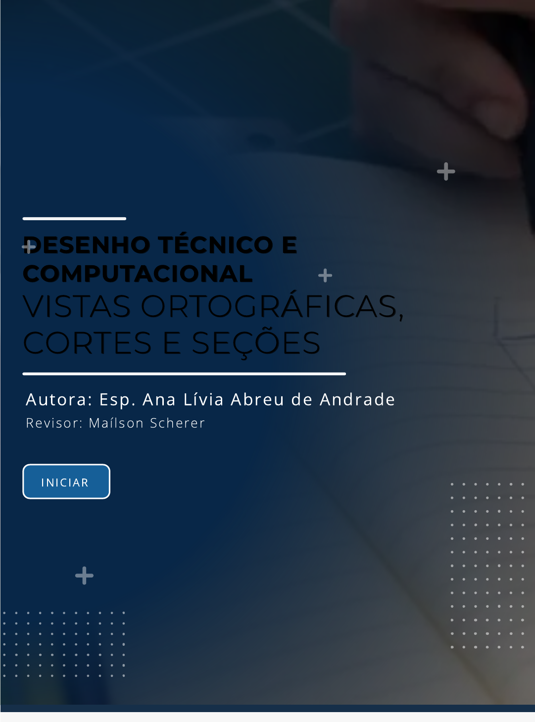 <p>DESENHO TÉCNICO EDESENHO TÉCNICO E</p><p>COMPUTACIONALCOMPUTACIONAL</p><p>VISTAS ORTOGRÁFICAS,VISTAS ORTOGRÁFICAS,</p><p>CORTES E SEÇÕESCORTES E SEÇÕES</p><p>Autora: Esp. Ana Lívia Abreu de Andrade</p><p>Revisor : Maí lson Scherer</p><p>IN IC IAR</p><p>introdução</p><p>Introdução</p><p>Nesta unidade, abordaremos temas importantes para o desenho técnico</p><p>como: Introdução à Geometria descritiva, onde conheceremos a geometria</p><p>em três dimensões; o Sistema de Projeção, seus elementos e como ele está</p><p>presente no nosso dia a dia; veremos o Método da Dupla Projeção de Monge,</p><p>e sua importância para a con�guração dos desenhos técnicos atuais; as Vistas</p><p>Ortográ�cas, suas características e representações; Cortes e Seções, como</p><p>devem ser executados e sua importância para a compreensão do desenho.</p><p>A partir dessas informações você estará preparado(a) para executar e</p><p>interpretar desenhos técnicos de peças e equipamentos, elaborados</p><p>conforme as prescrições das normas técnicas brasileiras.</p><p>Geometria vem das palavras em grego: Geo = Terra e Metria = Medida, ou</p><p>seja, Medida da terra. Trata-se de um ramo da Matemática que investiga as</p><p>formas e as dimensões das �guras que existem na natureza.</p><p>Acredita-se que os estudos em geometria se iniciaram com os</p><p>Elementos de Euclides (330 A.C. – 260 a.C.), nascido na Síria,</p><p>estudante em Atenas, é reconhecido historicamente como um dos</p><p>matemáticos mais importantes, embora pouco se tenha</p><p>conhecimento sobre sua vida. Sabe-se que ensinou Matemática na</p><p>escola criada por Ptolomeu Soter, em Alexandria, e se tornou</p><p>notável pela forma brilhante de ensinar geometria e álgebra,</p><p>sempre atraindo para suas aulas um grande número de discípulos.</p><p>(MEDEIROS, 2019, on-line ).</p><p>Geometria DescritivaGeometria Descritiva</p><p>Figura 2.1 - Euclides (300 AC)</p><p>Fonte: Patrick Guenette / 123RF.</p><p>Os conceitos da Geometria Descritiva constituem a base do Desenho Técnico,</p><p>onde se incluem o Desenho Arquitetônico, o Desenho Mecânico, o Desenho</p><p>Elétrico, entre outros. Ainda que esses conceitos já fossem abordados de</p><p>forma intuitiva desde a Antiguidade (como vemos nos desenhos de Leonardo</p><p>Da Vinci, com suas geniais invenções, porém sem normas ou escalas e cotas),</p><p>as bases da Geometria Descritiva foram criadas no �nal do século 18 pelo</p><p>francês Gaspard Monge.</p><p>Figuras 2.2 - Gaspar Monge (1746-1818)</p><p>Fonte: Magnus Manske / Wikimedia Commons.</p><p>Gaspard Monge foi um matemático, nascido em Beaune, 10 de maio de 1746</p><p>e falecido em Paris em 28 de julho de 1818, criador da geometria descritiva e</p><p>da geometria diferencial. Ele serviu na área militar como ministro da Marinha,</p><p>e esteve envolvido na reforma do sistema educacional francês, sendo um dos</p><p>fundadores da École Polytechnique (Escola politécnica).</p><p>Monge atuou na área acadêmica e militar, com estudos na área de defesa de</p><p>forti�cações, trazendo uma solução simples e e�caz usando não cálculos</p><p>intermináveis de aritmética, mas a geometria como resposta. A Geometria</p><p>Descritiva é o ramo da matemática aplicada que tem como objetivo o estudo</p><p>de objetos tridimensionais mediante projeções desses sólidos em planos. Em</p><p>Geometria, é comum utilizarmos os conceitos de forma e dimensão: Forma é</p><p>o aspecto, ou con�guração, de um determinado objeto (forma arredondada,</p><p>elíptica, cilíndrica, retangular etc.), enquanto dimensão é a grandeza que</p><p>caracteriza uma determinada medida desse objeto (largura, comprimento,</p><p>altura, diâmetro etc.). Os elementos fundamentais da geometria são o ponto,</p><p>a linha e o plano.</p><p>Ponto</p><p>O ponto é o elemento mais simples da geometria, não possui forma e nem</p><p>dimensão. Porém, é a partir do ponto que se é possível obter outras formas</p><p>geométricas.</p><p>Figuras 2.3 - Ponto grá�co x Ponto geométrico</p><p>Fonte: Elaborada pela autora.</p><p>Segundo Kandinsky (1997, p. 35), artista plástico russo renomado:</p><p>O ponto geométrico é um ser invisível. Deve, portanto, ser de�nido</p><p>como imaterial. Do ponto de vista material, o ponto compara-se ao</p><p>zero. Mas este zero esconde diferentes propriedades “humanas”.</p><p>Segundo a nossa concepção, este zero – o ponto geométrico –</p><p>evoca o laconismo absoluto, ou seja, a maior retenção mas, no</p><p>entanto, fala. Assim o ponto geométrico é, segundo a nossa</p><p>concepção, a última e única união do silêncio e da palavra. Eis</p><p>porque o ponto geométrico encontrou a sua forma material em</p><p>primeiro lugar na escrita – ele pertence à linguagem e signi�ca o</p><p>silêncio.</p><p>Linha</p><p>A linha pode ser de�nida como uma uma série de pontos en�leirados no</p><p>espaço, formando um traço único e contínuo. A linha é um elemento</p><p>geométrico que possui apenas uma dimensão: o comprimento.</p><p>Figuras 2.4 - Pontos formando linhas</p><p>Fonte: Elaborada pela autora.</p><p>Kandinsky (1997, p. 61) diz ainda:</p><p>A linha geométrica é um ser invisível. É o rastro do ponto em</p><p>movimento, logo seu produto. Ela nasceu do movimento – e isso</p><p>pela aniquilação da imobilidade suprema do ponto. Produz-se aqui</p><p>o salto do estático para o dinâmico.</p><p>As linhas podem variar quanto à forma, posição, direção e traçados.</p><p>Quanto à forma a linha pode ser retilínea, curva, ondulada, mista,</p><p>quebrada, fechada etc.</p><p>Figuras 2.5 - Formas das linhas</p><p>Fonte: Elaborada pela autora.</p><p>Quanto à posição pode ser vertical, horizontal e oblíqua.</p><p>Figuras 2.6 - Posição das linhas</p><p>Fonte: Elaborada pela autora.</p><p>Quanto à direção as linhas podem ser convergentes, divergentes,</