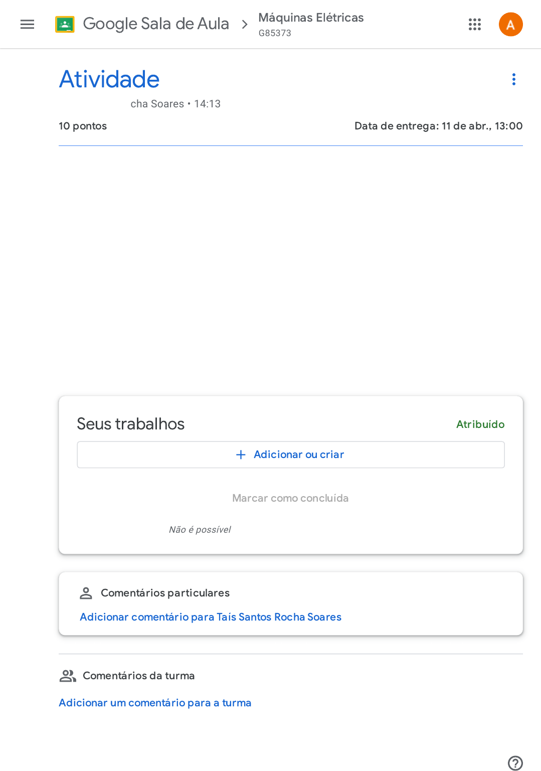 <p>09/04/2024, 14:52 Atividade</p><p>https://classroom.google.com/c/NTkwODk5NTk4NDgz/a/NjczMjY3OTIwNjU4/details?pli=1 1/1</p><p>Relatório técnico de uma partida direta de um motor com os seguintes itens:</p><p>1 - Comando :</p><p>1.1 - Conceito</p><p>1.2 - Dispositivos utilizados</p><p>1.3 - Diagrama elétrico</p><p>1.4 - Lógica de comando</p><p>1.5 - Utilização e conclusão</p><p>2 - Força :</p><p>2.1 - Conceito</p><p>2.2 - Dispositivos utilizados</p><p>2.3 - Tipos de motores</p><p>2.4 - Fechamento de motor (6 , 9 e 12 pontas)</p><p>2.5 - Diagrama elétrico</p><p>2.6 - Utilização e conclusão</p><p>Seus trabalhos</p><p>Não é possível entregar atividades após a data de entrega</p><p>Comentários particulares</p><p>Comentários da turma</p><p>Atividade</p><p>Taís Santos Rocha Soares • 14:13</p><p>10 pontos Data de entrega: 11 de abr., 13:00</p><p>Atribuído</p><p>Adicionar ou criar</p><p>Marcar como concluída</p><p>Adicionar comentário para Taís Santos Rocha Soares</p><p>Adicionar um comentário para a turma</p><p>Google Sala de Aula Máquinas Elétricas</p><p>G85373</p><p>https://classroom.google.com/h</p><p>https://classroom.google.com/c/NTkwODk5NTk4NDgz</p><p>https://www.google.com.br/intl/pt-BR/about/products</p><p>https://accounts.google.com/SignOutOptions?hl=pt-BR&continue=https://classroom.google.com/c/NTkwODk5NTk4NDgz/a/NjczMjY3OTIwNjU4/details%3Fpli%3D1&ec=GBRAiQI</p>