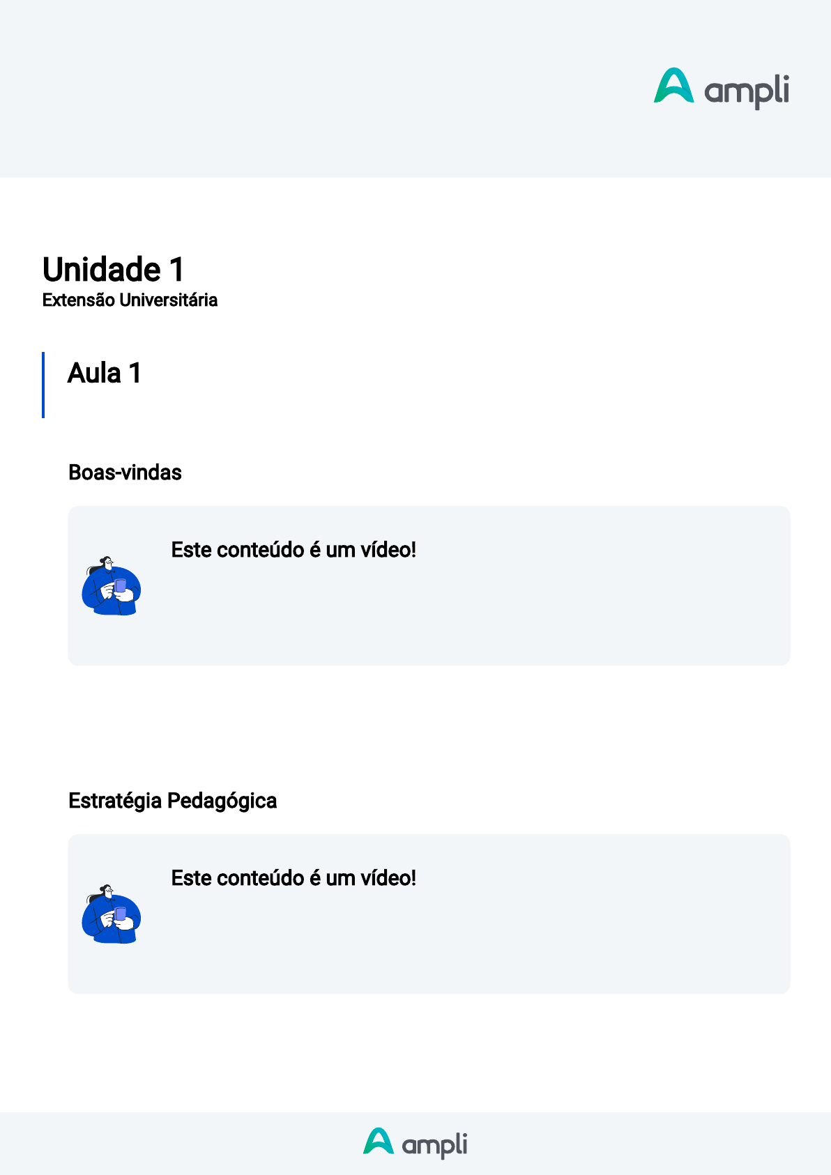 <p>Disciplina</p><p>Projeto de Extensão - Ciências</p><p>Contábeis</p><p>Unidade 1</p><p>Extensão Universitária</p><p>Aula 1</p><p>Projeto de Extensão</p><p>Boas-vindas</p><p>Este conteúdo é um vídeo!</p><p>Para assistir este conteúdo é necessário que você acesse o AVA pelo</p><p>computador ou pelo aplicativo. Você pode baixar os vídeos direto no aplicativo</p><p>para assistir mesmo sem conexão à internet.</p><p>Boas-vindas, estudante!</p><p>Iniciamos, neste momento, o projeto de Extensão Universária. Assista ao vídeo e compreenda</p><p>melhor as diretrizes e lei que amparam este projeto.</p><p>Estratégia Pedagógica</p><p>Este conteúdo é um vídeo!</p><p>Para assistir este conteúdo é necessário que você acesse o AVA pelo</p><p>computador ou pelo aplicativo. Você pode baixar os vídeos direto no aplicativo</p><p>para assistir mesmo sem conexão à internet.</p><p>Vamos mergulhar no seu Projeto de Extensão?</p><p>Assista ao vídeo sobre a estratégia pedagógica e seus programas.</p><p>Disciplina</p><p>Projeto de Extensão - Ciências</p><p>Contábeis</p><p>Jornada</p><p>Este conteúdo é um vídeo!</p><p>Para assistir este conteúdo é necessário que você acesse o AVA pelo</p><p>computador ou pelo aplicativo. Você pode baixar os vídeos direto no aplicativo</p><p>para assistir mesmo sem conexão à internet.</p><p>Chegamos a mais uma etapa!</p><p>Neste momento, falaremos sobre sua jornada, repassando as diretrizes essenciais do manual.</p><p>Para acessá-lo, clique aqui.</p><p>,</p><p>Unidade 2</p><p>Projeto de extensão I- Ciências Contábeis</p><p>Aula 1</p><p>Relatório</p><p>Vamos começar seu projeto?</p><p>https://cm-kls-content.s3.amazonaws.com/DESEN_WEBAULA/EXTENSAO/MANUAL+DE+ATIVIDADES+EXTENSIONISTAS+-+ORIENTACOES+DISCENTES.pdf</p><p>Disciplina</p><p>Projeto de Extensão - Ciências</p><p>Contábeis</p><p>Olá, estudante!</p><p>Agora que você já sabe as principais premissas de seu Projeto de Extensão, disponibilizamos</p><p>dois importantes arquivos:</p><p>Carta de Apresentação: esse documento serve para você comprovar seu vínculo com a IES ao</p><p>fazer contato com a instituição parceira onde pretende aplicar o seu projeto de extensão.</p><p>Template PDCA: modelo de documento para auxiliar na condução da aplicação da metodologia</p><p>PDCA, estão organizados em cada fase de aplicação. Esse template não precisa ser entregue, ele</p><p>existe para ajudar você na condução da elaboração de seu projeto extensionista.</p><p>Relatório Final de Atividades Extensionistas: modelo de documento para escrita �nal de seu</p><p>relatório após a realização das atividades/ações planejadas junto ao local escolhido para a</p><p>realização das atividades extensionistas. Esse é o documento comprobatório da realização da</p><p>atividade in loco. Importante, esse documento deve ser entregue em seu Ambiente Virtual, pois</p><p>será avaliado para posterior atribuição de sua nota.</p><p>https://cm-kls-content.s3.amazonaws.com/DESEN_WEBAULA/EXTENSAO/template_carta_apresentacao_projetos_ampli.pdf</p><p>https://cm-kls-content.s3.amazonaws.com/DESEN_WEBAULA/EXTENSAO/2023/_CIENCIAS%20CONTABEIS/PROJETO%20DE%20EXTENS%C3%83O%20I%20-%20CI%C3%8ANCIAS%20CONT%C3%81BEIS/TEMPLATE%20PDCA_CI%C3%8ANCIAS%20CONT%C3%81BEIS%20-%20BACHARELADO_PROJETO%20DE%20EXTENS%C3%83O%20I%20-%20CI%C3%8ANCIAS%20CONT%C3%81BEIS.docx</p><p>https://cm-kls-content.s3.amazonaws.com/DESEN_WEBAULA/EXTENSAO/2023/_CIENCIAS%20CONTABEIS/PROJETO%20DE%20EXTENS%C3%83O%20I%20-%20CI%C3%8ANCIAS%20CONT%C3%81BEIS/RELAT%C3%93RIO%20FINAL_CI%C3%8ANCIAS%20CONT%C3%81BEIS%20-%20BACHARELADO_PROJETO%20DE%20EXTENS%C3%83O%20I%20-%20CI%C3%8ANCIAS%20CONT%C3%81BEIS.docx</p>