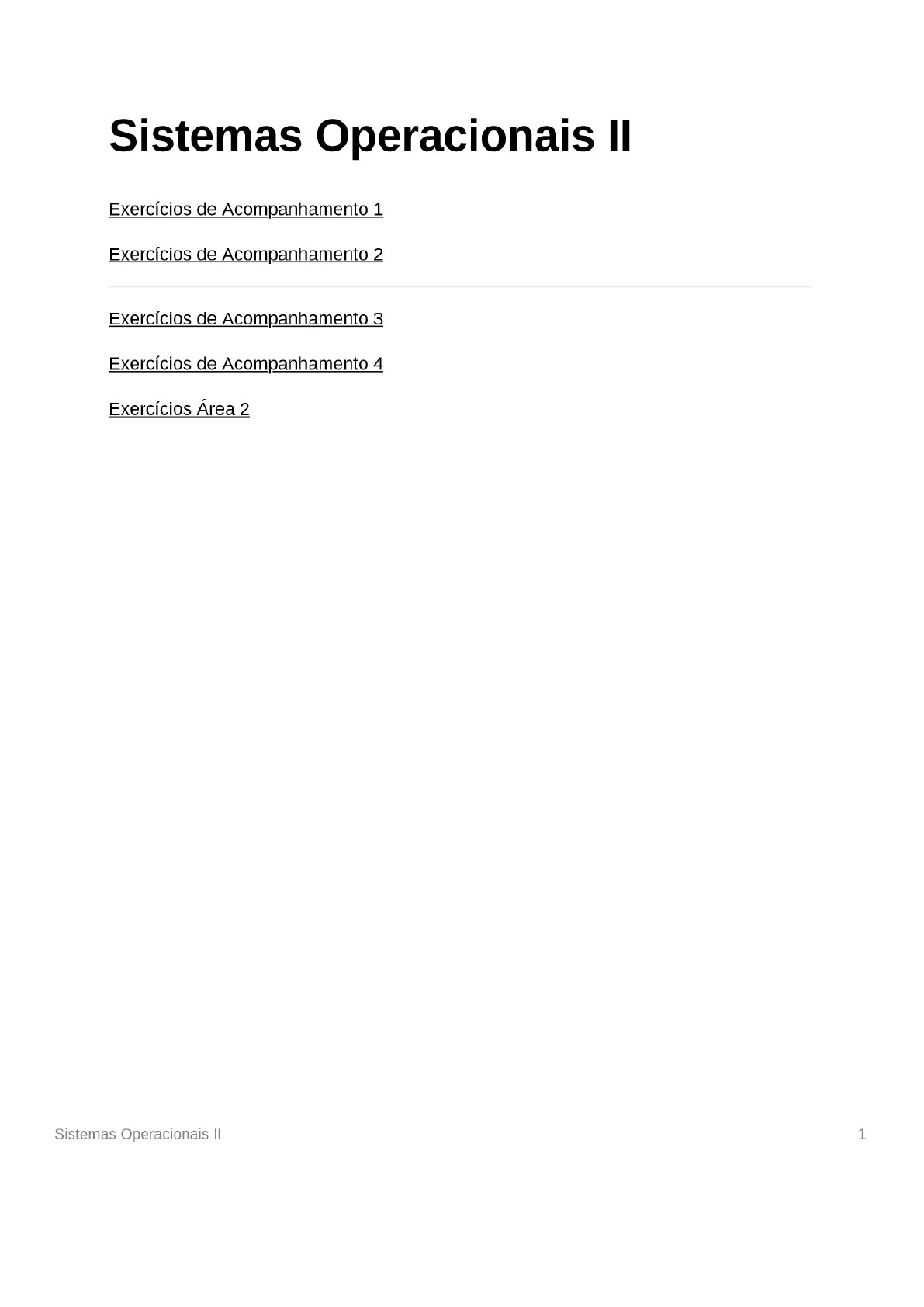 <p>Sistemas Operacionais II Exercícios de Acompanhamento 1 Exercícios de Acompanhamento 2 Exercícios de Acompanhamento 3 Exercícios de Acompanhamento 4 Exercícios Área 2 Sistemas Operacionais 1</p><p>Exercícios de Acompanhamento 1 [Questão 1] Discorra sobre programação paralela e concorrente, e aplicações multi-thread, paralelas e distribuídas. Cite e comente duas das principais dificuldades na implementação de aplicações concorrentes. Programação paralela e concorrente são dois conceitos distintos. Na programação paralela temos a execução de tarefas FISICAMENTE ao mesmo tempo; como, por exemplo, dois processos executando simultaneamente em processadores paralelos. A programação concorrente, por sua vez, conta com tarefas executando LOGICAMENTE ao mesmo tempo. Isso significa que não necessariamente há paralelismo de fato. Falando agora sobre aplicações, podemos ter aplicações multi-thread, paralelas e distribuidas. Nas aplicações multi-thread normalmente há tarefas sendo executadas em mais de uma thred, normalmente compartilhando a CPU, com a finalidade de aproveitar melhor o uso da CPU e diminuir momentos de ócio. Aplicações paralelas, por sua vez, são aplicações que contam com processos executando fisicamente ao mesmo tempo em processadores diferentes; esse tipo de aplicação é particularmente útil para resolver um problema mais rápido ou usar uma abordagem "dividir para conquistar" e resolver um problema maior diminuindo sua complexidade. Por fim, aplicações concorrentes se referem a aplicações envolvem processos em diferentes hosts que se comunicam através de uma rede; essas aplicações são úteis para distribuir trabalho ou fazer computação paralela em larga escala sobre a rede. Duas dificuldades na implementação de aplicações concorrentes são garantir a consistência de dados e evitar deadlocks e starvation. No primeiro caso, é fundamental garantir que a intercalação de processos gere um estado conscistente, ou seja, o resultado obtido ao final da execução dos processos de forma concorrente deve ser igual a algum dos resultados obtidos ao se executar os processos de forma sequencial. segundo problema, por sua vez, envolve evitar que os processos se bloqueem mutuamente e nenhum processo possa ser executado; ou que um processo acabe Exercícios de Acompanhamento 1 1</p><p>ficando sempre bloqueado esperando outros serem executados e nunca consiga acesso ao recurso desejado. [Questão 2] Discorra sobre a necessidade de sincronização de processos e explique quais as propriedades que sistemas concorrentes e distribuídos devem satisfazer. A sincronização de processos é essencial para coordenar a execução de ações entre processos, tanto em memória compartilhada quanto em memória distribuída e garantir que duas situações sejam verdadeiras: exclusão mútua e condição. Sistemas concorrentes e distribuídos deve garantir duas propriedades: Safety e Liveness. Safety diz respeito a um programa nunca entrar em um estado ruim, ou seja, em um estado inconsistente. Já liveness siginifica que um programa chegará a um estado bom, ou consistente. Essas propriedades devem ser cumpridas em todas as execuções do programa. [Questão 3] Comente as principais características das implementações baseadas em software e hardware para o operador de exclusão mútua. Em particular, quais os motivos que tornam implementações baseadas em software pouco apropriadas para uso em programação concorrente? A implementação de operador de exclusão com apoio de hardware é baseado habilitar/desabilitar interrupção e uso de instruções atômicas, como test-and-set e o swap. Já a implementação de operador de exclusão mútua baseada puramente em software não faz uso de serviços providos pelo kernel ou instruções especiais do processador para controlar os processos e seus acessos a recursos. A principal vantagem dessa abordagem é garantir uma solução independente de sistema operacional. No entanto, suas principais desvatagens envolvem o aumento da complexidade do programa, diminuição do desempenho e a introdução de busy- waiting, ou seja, a tarefa ocupa o processamento, mas não faz algo de fato útil, pois Exercícios de Acompanhamento 1 2</p><p>está esperando ser desbloqueada para continuar sua execução. São essas desvantagens que tornam o emprego de implementações puramente em software pouco apropriadas para programação concorrente. [Questão 4] Idealize (de forma breve) um sistema simples com múltiplos processos concorrentes com necessidade de controle de acesso a um recurso comum, e explique como o conceito de semáforos contadores pode ser utilizado para resolver o problema de acesso a seção crítica nesse sistema. Em particular, comente por que o uso de semáforo contador é mais conveniente no sistema idealizado em comparação ao uso de semáforo binário ou mutex. sistema possui um semáforo que é inicializado com n, sendo n o valor que indica quantos processos podem acessar esse recurso ao mesmo tempo. Dessa forma, um processo, ao chegar em sua seção crítica e com a disponibilidade de uma "vaga" livre para o acesso ao recurso ou seja com o valor do semáforo maior que 0 bloqueia uma das "vagas" disponíveis decrementa o semáforo. Terminada a seção crítica, o recurso é liberado - o semáforo é incrementado. Nesse sistema, o uso de semáforo contador é mais conveniente que o mutex e o semáforo binário, pois, nesse caso, deseja-se permitir o acesso de múltiplos processos a um recurso comum e, tanto o mutex quanto o semáforo binário, tratam-se de um caso onde apenas um processo tem acesso ao recurso por vez. [Questão 5] que são e para que servem as primitivas wait e signal? Enumere e explique as estratégias de sinalização empregadas na implementação de monitores. As primitivas signal e wait são primitivas que permitem o acesso as variáveis de condição dos monitores. No wai