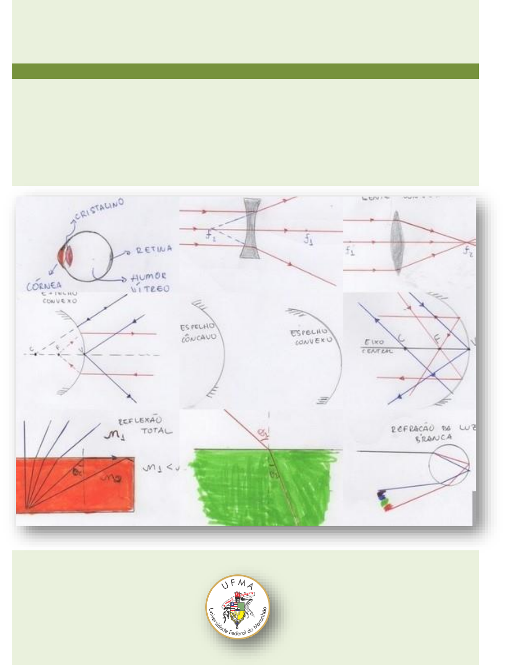 <p>ROGÉRIO DOS SANTOS CARDOSO</p><p>JERIAS ALVES BATISTA</p><p>KARLA CRISTINA SILVA SOUSA</p><p>ÓPTICA GEOMÉTRICA E A VISÃO DO</p><p>OLHO HUMANO</p><p>APRESENTAÇÃO</p><p>Caro professor, este trabalho é fruto do esforço para envolver estudantes numa</p><p>jornada em busca de uma aprendizagem que seja significativa e ao mesmo tempo crítica</p><p>(MOREIRA, 2005, p 13), que alie o saber teórico à prática experimental simples relacionada à</p><p>Óptica Geométrica. Por saber que cada turma para as quais você leciona apresenta um perfil</p><p>distinto de saberes e competências desenvolvidas e a desenvolver, a sequência didática aqui</p><p>proposta pode ser adequada para cada tipo de público com o qual será aplicada.</p><p>Sua construção se deu sob a ótica de um professor que leciona as disciplinas de</p><p>Ciências no Ensino Fundamental e Física no Ensino Médio para estudantes da rede pública e</p><p>preparatório para ENEM/Vestibular voltado a estudantes de origem popular que estudem em</p><p>escolas públicas, e que busca diuturnamente diferentes estratégias de ensino a fim de tornar a</p><p>aprendizagem dos estudantes mais rica de conceitos, significados e com a capacidade de</p><p>refletir e entender as aplicações do conhecimentos adquiridos no mundo a sua volta.</p><p>A construção desse trabalho teve por base: i - Teoria da Aprendizagem</p><p>Significativa de Ausubel que classifica aprendizagem como sendo a organização de</p><p>conhecimento e sua integração na estrutura cognitiva do aprendiz. Novos conhecimentos que</p><p>então para serem apreendidos precisam dos pontos de ancoragem, mas quando um novo</p><p>conhecimento interage com o ponto de ancoragem, o ancoradouro também sofre um processo</p><p>de mudança, a fim de se adequar ao novo conjunto de informações adquiridas; ii – Teoria dos</p><p>Campos Conceituais de Vergnaud que consiste em perceber filiações e rupturas entre o</p><p>conhecimento do estudante a partir do conteúdo formal o que permite a formulação de</p><p>metodologias que aproximem o conteúdo abordado a situações de aprendizagem que facilitem</p><p>a compreensão dos estudantes; iii – Teoria da Aprendizagem Significativa Crítica que visa</p><p>preparar o estudante para a vivência em um mundo altamente mutável, por meio da contínua</p><p>reflexão e adaptação nesse ambiente, e que ao mesmo tempo lance um olhar crítico sobre</p><p>todas as demandas, informações e situações que lhe cercam.</p><p>Ao longo deste trabalho, o autor sugere alguns sites que podem servir de apoio ao</p><p>estudo dos discentes, bem como ferramenta de consulta do professor. A fim de evitar o uso de</p><p>endereços complexos nos caminhos dos sites, fizemos o uso frequente de QR Code’s, que</p><p>tornam bastante simples a busca dos sites sugeridos pelo autor, bastando apenas o uso de</p><p>aplicativos que façam a decodificação. Este trabalho traz, também, sugestões de matérias,</p><p>documentários e sites que mostram a aplicação dos conteúdos relacionados à Óptica</p><p>Geométrica e a visão do olho humano, com intuito de tornar o contato com o conteúdo</p><p>abordado ainda mais significativo.</p><p>Esperamos que este trabalho auxilie outros professores no processo de elaboração</p><p>de atividades que sejam potencialmente significativas para os estudantes, lhes permitido a</p><p>compreensão clara sobre os temas abordados, incentivando a ação reflexiva e promovendo a</p><p>mudança de práticas que sejam prejudiciais para si ou para outros.</p><p>SUMÁRIO</p><p>1 INTRODUÇÃO .......................................................................................................... 4</p><p>2 A ÓPTICA GEOMÉTRICA ..................................................................................... 5</p><p>2.1 Conceitos iniciais para o estudo da óptica geométrica ............................................ 5</p><p>2.3 Reflexão e refração da luz.......................................................................................... 8</p><p>2.3.1 Reflexão Total ............................................................................................................ 12</p><p>2.3.2 A Formação de Imagens ............................................................................................. 13</p><p>2.3.3 Espelhos Planos e Esféricos ....................................................................................... 13</p><p>2.3.4 Refração em Interfaces Esféricas ............................................................................... 18</p><p>2.3.5 Lentes ......................................................................................................................... 18</p><p>2.4 O Olho Humano........................................................................................................ 20</p><p>2.4.1 Defeitos da Visão ....................................................................................................... 21</p><p>2.4.1.1 Miopia ........................................................................................................................ 21</p><p>2.4.1.2 Hipermetropia ............................................................................................................. 23</p><p>2.4.1.3 Presbiopia ................................................................................................................... 23</p><p>3 A SEQUÊNCIA DIDÁTICA ................................................................................... 24</p><p>3.1 Primeiro encontro..................................................................................................... 24</p><p>3.2 Segundo encontro ..................................................................................................... 30</p><p>3.3 Terceiro encontro ..................................................................................................... 36</p><p>3.4 Quarto enco