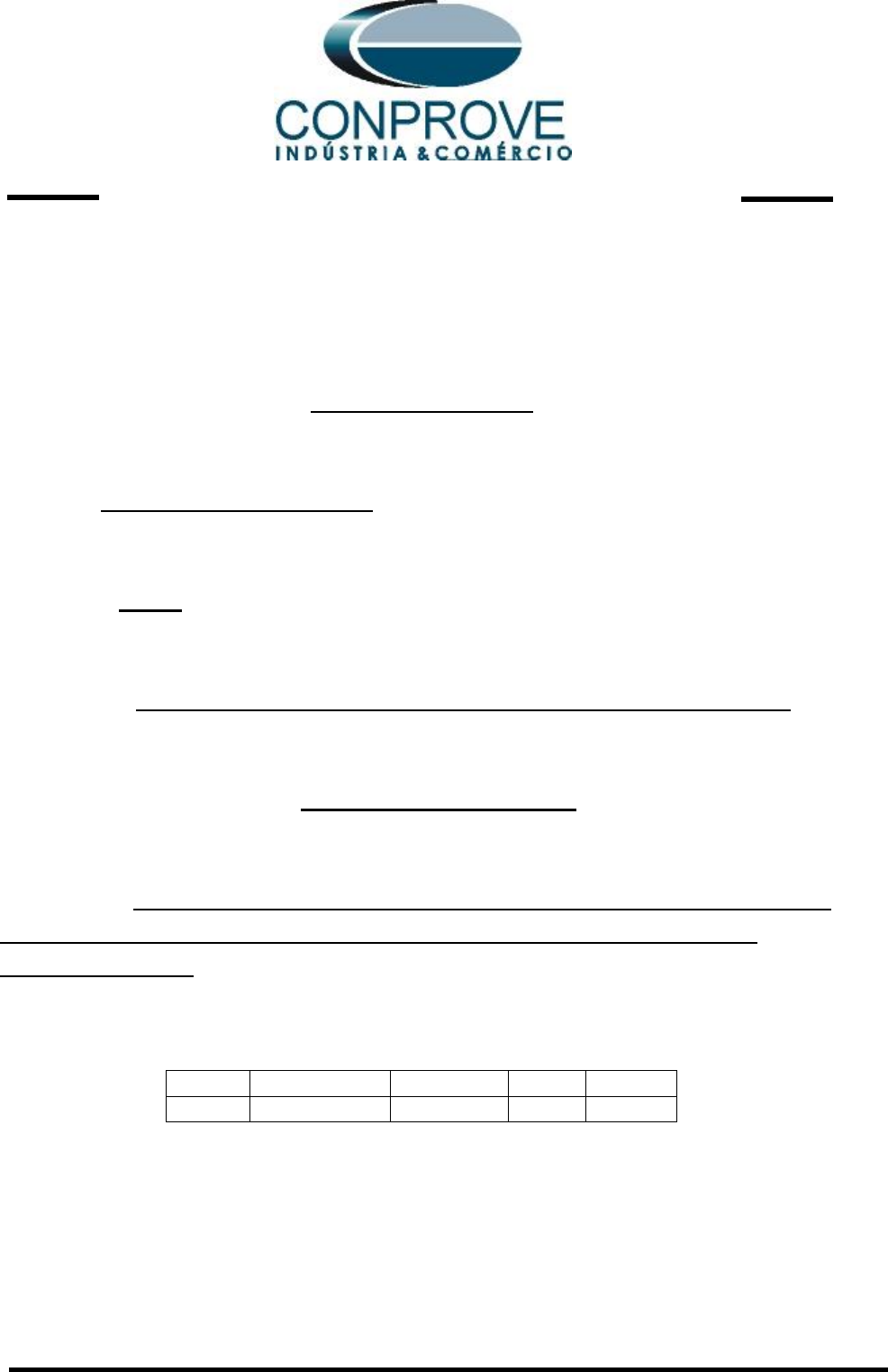 <p>INSTRUMENTOS PARA TESTES ELÉTRICOS</p><p>Rua Visconde de Ouro Preto, 77 - Bairro Custódio Pereira - Uberlândia – MG - CEP 38405-202</p><p>Fone (34) 3218-6800 Fax (34) 3218-6810</p><p>Home Page: www.conprove.com.br - E-mail: conprove@conprove.com.br</p><p>1</p><p>Tutorial de Teste</p><p>Tipo de Equipamento: Relé de Proteção</p><p>Marca: SCHWEITZER (SEL)</p><p>Modelo: 411L</p><p>Funções: 85 POTT-21 – Teleproteção acionada por distância</p><p>Ferramenta Utilizada: CE-7012 ou CE-7024</p><p>Objetivo: Realizar testes na função de teleproteção no esquema</p><p>POTT utilizando o software Sequenc para comprovar a sua</p><p>funcionalidade.</p><p>Controle de Versão:</p><p>Versão Descrições Data Autor Revisor</p><p>1.0 Versão inicial 20/09/2017 A.C.S. M.R.C.</p><p>INSTRUMENTOS PARA TESTES ELÉTRICOS</p><p>Rua Visconde de Ouro Preto, 77 - Bairro Custódio Pereira - Uberlândia – MG - CEP 38405-202</p><p>Fone (34) 3218-6800 Fax (34) 3218-6810</p><p>Home Page: www.conprove.com.br - E-mail: conprove@conprove.com.br</p><p>2</p><p>Sumário</p><p>1. Conexão com o CE-7012 ..................................................................................................... 5</p><p>1.1 Fonte Auxiliar .................................................................................................................. 5</p><p>1.2 Bobinas de corrente e tensão ........................................................................................... 5</p><p>1.3 Entradas Binárias ............................................................................................................ 7</p><p>1.4 Conexão entre os relés LOCAL e REMOTO ..................................................................... 8</p><p>2. Comunicação com o relé 411L ............................................................................................ 9</p><p>3. Parametrização do relé SEL 411L LOCAL/REMOTO....................................................... 11</p><p>3.1. General Global Settings ................................................................................................. 11</p><p>3.2. Line Configuration ......................................................................................................... 12</p><p>3.3. Relay Configuration Enables ......................................................................................... 13</p><p>3.4. Mho Phase Element Distance Reach .............................................................................. 14</p><p>3.5. Phase Element Distance Time Delay .............................................................................. 14</p><p>3.6. Mho Ground Element Distance Reach ........................................................................... 15</p><p>3.7. Zero Sequence Compensation Factor ............................................................................. 15</p><p>3.8. Ground Element Distance Time Delay ........................................................................... 16</p><p>3.9. Trip Schemes ................................................................................................................. 16</p><p>3.10. Trip Logic .................................................................................................................. 17</p><p>4. Ajustes das Saídas Binárias ............................................................................................... 18</p><p>4.1. Interface Board Output .................................................................................................. 18</p><p>4.2. Enviando os Ajustes ....................................................................................................... 19</p><p>5. Ajustes do software Sequenc ............................................................................................. 20</p><p>5.1 Abrindo o Sequenc ......................................................................................................... 20</p><p>5.2 Configurando os Ajustes ................................................................................................ 21</p><p>5.3 Sistema .......................................................................................................................... 22</p><p>6. Direcionamento de Canais ................................................................................................. 23</p><p>7. Configurações de Hardware ............................................................................................... 24</p><p>8. Restauração do Layout ...................................................................................................... 24</p><p>9. Estrutura para o teste da função 21-85POTT ...................................................................... 25</p><p>9.1 Criando as sequências de pré-falta e falta...................................................................... 26</p><p>9.2 Renomeando as entradas binárias.................................................................................. 29</p><p>9.3 Ajustando gráficos ......................................................................................................... 30</p><p>9.3 Ajustes da avaliação do tempo ....................................................................................... 32</p><p>10. Relatório ........................................................................................................................ 34</p><p>INSTRUMENTOS PARA TESTES ELÉTRICOS</p><p>Rua Visconde de Ouro Preto, 77 - Bairro Custódio Pereira - Uberlândia – MG - CEP 38405-202</p><p>Fone (34) 3218-6800 Fax (34) 3218-6810</p><p>Home Page: www.conprove.com.br - E-mail: conprove@conprove.com.br</p><p>3</p><p>APÊNDICE A .......................................................................................................................... 35</p><p>A.1 Designações de terminais .......................................................................