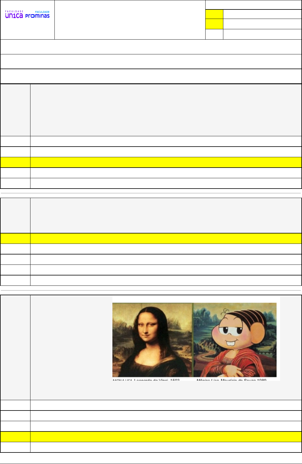 <p>Pincel Atômico - 20/09/2024 13:33:35 1/3</p><p>LETÍCIA GODINHO</p><p>AIRES</p><p>Exercício Caminho do Conhecimento - Etapa 2 (20859)</p><p>Atividade finalizada em 20/04/2024 17:10:58 (1961070 / 1)</p><p>LEGENDA</p><p>Resposta correta na questão</p><p># Resposta correta - Questão Anulada</p><p>X Resposta selecionada pelo Aluno</p><p>Disciplina:</p><p>LITERATURA: TEORIA E METODOLOGIA DE ENSINO [1084594] - Avaliação com 8 questões, com o peso total de 1,11 pontos [capítulos - 1]</p><p>Turma:</p><p>Segunda Graduação: Segunda Graduação 6 meses - Licenciatura em Letras-Português - Grupo: FPD-MARC/2024 - SGegu0A300324 [120529]</p><p>Aluno(a):</p><p>91597336 - LETÍCIA GODINHO AIRES - Respondeu 8 questões corretas, obtendo um total de 1,11 pontos como nota</p><p>[359153_1284</p><p>39]</p><p>Questão</p><p>001</p><p>A literatura como a arte das palavras e ainda por utilizar a língua para a sua</p><p>concretização, acaba se tornando um instrumento de comunicação e interação social.</p><p>Dessa forma, a literatura em âmbito geral, cumpre seu papel de transmitir os</p><p>conhecimentos culturais de ________________. Sendo, portanto, parte da própria</p><p>cultura.</p><p>Complete a frase com a opção correta.</p><p>Uma elite.</p><p>Estudiosos canônicos.</p><p>X Um povo.</p><p>Uma cidade.</p><p>Uma cultura.</p><p>[359153_1284</p><p>34]</p><p>Questão</p><p>002</p><p>Para Orlandi (1996) apud Ferreira & Dias ( 2005) o ____________________ é</p><p>constitutivo do sentido, já que a variação nas condições de produção afeta a</p><p>construção de sentidos que emergem a partir da interação entre interlocutores.</p><p>Complete a frase com a opção correta.</p><p>X contexto</p><p>conceito de texto</p><p>diálogo</p><p>texto</p><p>intertexto</p><p>[359153_1283</p><p>64]</p><p>Questão</p><p>003</p><p>Observe a imagem abaixo</p><p>Disponível em: https://beduka.com/blog/materias/portugues/o-que-e-intertextualidade/</p><p>Marque a opção que explica que tipo de relação textual existe entre as imagens.</p><p>Plágio explícito.</p><p>Intertextualidade implícita.</p><p>Plágio.</p><p>X Intertextualidade.</p><p>Interdiscursividade.</p><p>Pincel Atômico - 20/09/2024 13:33:35 2/3</p><p>[359153_1284</p><p>29]</p><p>Questão</p><p>004</p><p>(Prefeitura de Morzalândia/GO – adaptado) Leia a tira abaixo:</p><p>A</p><p>tirinha nos remete a lembrar um poema famoso, a esse tipo de relação chamamos:</p><p>Paralelismo.</p><p>Ambiguidade.</p><p>Citação.</p><p>Cópia.</p><p>X Intertextualidade.</p><p>[359155_1283</p><p>63]</p><p>Questão</p><p>005</p><p>Sobre a intertextualidade, leia as afirmações abaixo:</p><p>I- A intertextualidade sempre acontece de maneira proposital. É um recurso que deve</p><p>ser evitado, pois privilegia o plágio de textos-fontes em detrimento de elementos que</p><p>confiram originalidade a escrita.</p><p>II- Todo texto, em maior ou menor grau é um intertexto, pois é normal que durante o</p><p>processo de escrita aconteçam relações dialógicas entre o que estamos escrevendo e</p><p>os outros textos previamente lidos por nós.</p><p>III- Na intertextualidade explícita, ficam claras as fontes nas quais o texto baseou-se e</p><p>acontece, obrigatoriamente, de maneira intencional. Pode ser encontradas em textos</p><p>do tipo resumo, resenhas, citações e traduções.</p><p>IV- A intertextualidade implícita não se configura na superfície textual, visto que não</p><p>fornece para o leitor elementos que possam ser imediatamente relacionados com</p><p>algum outro tipo de texto-fonte.</p><p>Estão corretas</p><p>X II, III, IV.</p><p>Apenas I.</p><p>I, III, IV.</p><p>II e III.</p><p>I e III.</p><p>[359153_1284</p><p>28]</p><p>Questão</p><p>006</p><p>(Prefeitura de São João Batista/ SC – adaptado) Leia a afirmação abaixo:</p><p>Conforme Ingedore (2020), um texto sempre dialoga com outros textos recorrentes em</p><p>dada sociedade. Assim, a remissão, frequentemente, faz-se a “conteúdos de</p><p>consciência”, guardados na memória do interlocutor que, a partir de “pistas”</p><p>encontradas na superfície textual, são reativadas, via inferenciação. Essa afirmação</p><p>refere-se à</p><p>polifonia.</p><p>X intertextualidade.</p><p>paródia.</p><p>Pincel Atômico - 20/09/2024 13:33:35 3/3</p><p>citação</p><p>referenciação.</p><p>[359153_1284</p><p>36]</p><p>Questão</p><p>007</p><p>(Prefeitura Municipal de Cunha Porã/2020) De acordo com Beaugrande e Dressler, a</p><p>intertextualidade compreende diversas maneiras pelas quais a produção e recepção</p><p>de dado texto depende</p><p>da maneira com que o texto é lido, o interlocutor precisa estar atento ao tipo de texto e</p><p>até mesmo assunto, para que haja coerência no que está sendo lido e consiga</p><p>transformar assim símbolo em significado</p><p>do tipo de leitor que está com o material em mãos, pois para ser um bom leitor, sabe-</p><p>se que é necessário ler, interpretar e ter senso crítico para selecionar as informações e</p><p>conseguir ordená-las de maneira efetiva</p><p>da significação e do significado, ambos têm a tendência a estilizar e trazer ao texto</p><p>sutileza ou intensidade, a depender da escolha lexical, e até mesmo a pragmática da</p><p>leitura pode transformar um texto de leitor para leitor.</p><p>do conhecimento acadêmico do leitor.</p><p>X</p><p>do conhecimento de outros textos por parte dos interlocutores, isto é, diz respeito aos</p><p>fatores que tornam a utilização de um texto dependente de um ou mais textos</p><p>previamente existentes</p><p>[359153_1284</p><p>38]</p><p>Questão</p><p>008</p><p>(Prefeitura Municipal de Criciúma/2010 – adaptada) A obra de Machado de Assis é</p><p>vasta e compreende crônicas, cartas e romances. Na obra “Esaú e Jacó”, por exemplo,</p><p>temos a história de Pedro e Paulo, dois irmãos que possuem muitos desafetos tanto na</p><p>vida pessoal quanto na vida política. O título da 