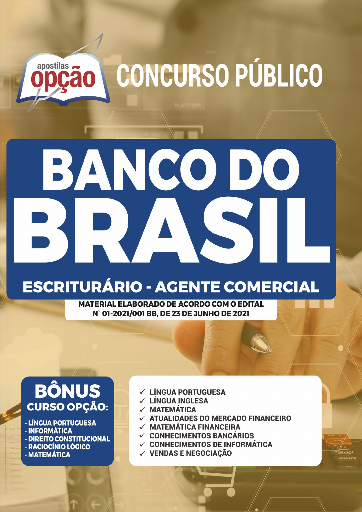 <p>BANCO DO BRASIL S.A</p><p>Escriturário - Agente Comercial</p><p>EDITAL Nº 01 - 2021/001 BB, DE 23 DE JUNHO DE 2021</p><p>CÓD: OP-106JH-21</p><p>7908403507054</p><p>• A Opção não está vinculada às organizadoras de Concurso Público. A aquisição do material não garante sua inscrição ou ingresso na</p><p>carreira pública,</p><p>• Sua apostila aborda os tópicos do Edital de forma prática e esquematizada,</p><p>• Alterações e Retificações após a divulgação do Edital estarão disponíveis em Nosso Site na Versão Digital,</p><p>• Dúvidas sobre matérias podem ser enviadas através do site: www.apostilasopção.com.br/contatos.php, com retorno do professor</p><p>no prazo de até 05 dias úteis.,</p><p>• É proibida a reprodução total ou parcial desta apostila, de acordo com o Artigo 184 do Código Penal.</p><p>Apostilas Opção, a Opção certa para a sua realização.</p><p>ÍNDICE</p><p>Língua Portuguesa</p><p>1. Compreensão de textos. . . . . . . . . . . . . . . . . . . . . . . . . . . . . . . . . . . . . . . . . . . . . . . . . . . . . . . . . . . . . . . . . . . . . . . . . . . . . . . . . . . . . . . . 01</p><p>2. Ortografia oficial. . . . . . . . . . . . . . . . . . . . . . . . . . . . . . . . . . . . . . . . . . . . . . . . . . . . . . . . . . . . . . . . . . . . . . . . . . . . . . . . . . . . . . . . . . . . . . 10</p><p>3. Classe e emprego de palavras. . . . . . . . . . . . . . . . . . . . . . . . . . . . . . . . . . . . . . . . . . . . . . . . . . . . . . . . . . . . . . . . . . . . . . . . . . . . . . . . . . . 10</p><p>4. Emprego do acento indicativo de crase. . . . . . . . . . . . . . . . . . . . . . . . . . . . . . . . . . . . . . . . . . . . . . . . . . . . . . . . . . . . . . . . . . . . . . . . . . . 18</p><p>5. Sintaxe da oração e do período. . . . . . . . . . . . . . . . . . . . . . . . . . . . . . . . . . . . . . . . . . . . . . . . . . . . . . . . . . . . . . . . . . . . . . . . . . . . . . . . . . 18</p><p>6. Emprego dos sinais de pontuação. . . . . . . . . . . . . . . . . . . . . . . . . . . . . . . . . . . . . . . . . . . . . . . . . . . . . . . . . . . . . . . . . . . . . . . . . . . . . . . . 20</p><p>7. Concordância verbal e nominal. . . . . . . . . . . . . . . . . . . . . . . . . . . . . . . . . . . . . . . . . . . . . . . . . . . . . . . . . . . . . . . . . . . . . . . . . . . . . . . . . . 21</p><p>8. Regência verbal e nominal. . . . . . . . . . . . . . . . . . . . . . . . . . . . . . . . . . . . . . . . . . . . . . . . . . . . . . . . . . . . . . . . . . . . . . . . . . . . . . . . . . . . . . 23</p><p>9. Colocação pronominal dos pronomes oblíquos átonos (próclise, mesóclise e ênclise).. . . . . . . . . . . . . . . . . . . . . . . . . . . . . . . . . . . . . 24</p><p>Língua Inglesa</p><p>1. Conhecimento de um vocabulário fundamental e dos aspectos gramaticais básicos para a compreensão de textos . . . . . . . . . . . . 01</p><p>Matemática</p><p>1. Números inteiros, racionais e reais; problemas de contagem. . . . . . . . . . . . . . . . . . . . . . . . . . . . . . . . . . . . . . . . . . . . . . . . . . . . . . . . . 01</p><p>2. Sistema legal de medidas. . . . . . . . . . . . . . . . . . . . . . . . . . . . . . . . . . . . . . . . . . . . . . . . . . . . . . . . . . . . . . . . . . . . . . . . . . . . . . . . . . . . . . . 09</p><p>3. Razões e proporções; divisão proporcional . . . . . . . . . . . . . . . . . . . . . . . . . . . . . . . . . . . . . . . . . . . . . . . . . . . . . . . . . . . . . . . . . . . . . . . . 11</p><p>4. Regras de três simples e compostas;. . . . . . . . . . . . . . . . . . . . . . . . . . . . . . . . . . . . . . . . . . . . . . . . . . . . . . . . . . . . . . . . . . . . . . . . . . . . . . 12</p><p>5. Porcentagens. . . . . . . . . . . . . . . . . . . . . . . . . . . . . . . . . . . . . . . . . . . . . . . . . . . . . . . . . . . . . . . . . . . . . . . . . . . . . . . . . . . . . . . . . . . . . . . . . 13</p><p>6. Lógica proposicional. . . . . . . . . . . . . . . . . . . . . . . . . . . . . . . . . . . . . . . . . . . . . . . . . . . . . . . . . . . . . . . . . . . . . . . . . . . . . . . . . . . . . . . . . . . 15</p><p>7. Noções de conjuntos. . . . . . . . . . . . . . . . . . . . . . . . . . . . . . . . . . . . . . . . . . . . . . . . . . . . . . . . . . . . . . . . . . . . . . . . . . . . . . . . . . . . . . . . . . . 17</p><p>8. Relações e funções; Funções polinomiais; Funções exponenciais e logarítmicas. . . . . . . . . . . . . . . . . . . . . . . . . . . . . . . . . . . . . . . . . . 17</p><p>9. Matrizes. Determinantes. Sistemas lineares. . . . . . . . . . . . . . . . . . . . . . . . . . . . . . . . . . . . . . . . . . . . . . . . . . . . . . . . . . . . . . . . . . . . . . . . 28</p><p>10. Sequências. Progressões aritméticas e progressões geométricas. . . . . . . . . . . . . . . . . . . . . . . . . . . . . . . . . . . . . . . . . . . . . . . . . . . . . . . 38</p><p>Atualidades do Mercado Financeiro</p><p>1. Os bancos na Era Digital: Atualidade, tendências e desafios. Internet banking. Mobile banking. Open banking. Novos modelos de</p><p>negócios. Fintechs, startups e big techs. Sistema de bancos-sombra (Shadow banking) . . . . . . . . . . . . . . . . . . . . . . . . . . . . . . . . . . . . 01</p><p>2. Funções da moeda . . . . . . . . . . . . . . . . . . . . . . . . . . . . . . . . . . . . . . . . . . . . . . . . . . . . . . . . . . . . . . . . . . . . . . . . . . . . . . . . . . . . . . . . . . . . 03</p><p>3. O dinheiro na era digital: blockchain, bitcoin e demais criptomoedas. . . . . . . . . . . . . . . . . . . . . . . . . . . . . . . . . . . . . . . . . . . . . . . . . . . 01</p><p>4. Marketplace . . . . . . . . . . . . . . . . . . . . . . . . . . . . . . . . . . . . . . . . . . . . . . . . . . . . . . . . . . . . . . . . . . . . . . . . . . . . . . . . . . . . . . . . . . . . . . . . . 03</p><p>5. Correspondentes bancários . . . . . . .