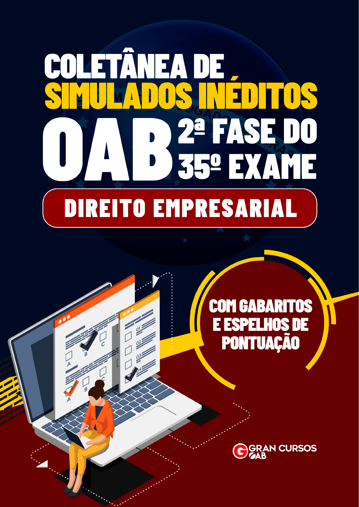 <p>Padrão de Resposta</p><p>Simulado 2ª Fase – XXXIV Exame de Ordem Unificado</p><p>Página 2 de 7</p><p>SIMULADO PREPARATÓRIO</p><p>ORDEM DOS ADVOGADOS DO BRASIL</p><p>2ª FASE – XXXIV EXAME DE ORDEM UNIFICADO</p><p>PROVA PRÁTICO-PROFISSIONAL</p><p>ÁREA: DIREITO EMPRESARIAL</p><p>Aplicação: 2022</p><p>BASEADO NO MODELO DE PROVA APLICADO PELA FGV</p><p>“Qualquer semelhança nominal e/ou situacional</p><p>presente nos enunciados das questões é mera coincidência.”</p><p>PADRÃO DE RESPOSTA – PEÇA PRÁTICO-PROFISSIONAL</p><p>Enunciado</p><p>Residentes em Juazeiro do Norte/CE, os amigos Paula, Pedro, Plínio e Patrícia resolveram abrir uma sociedade em-</p><p>presarial. Dessa forma, os 04 (quatro) amigos compõem o quadro societário da 4P Comércio de Alimentos Ltda.,</p><p>sociedade com capital social de R$100.000,00 (cem mil reais), valor totalmente integralizado, dividido em 10 quotas</p><p>de R$10.000,00 (dez mil reais) cada, distribuídas da seguinte forma: 3 quotas para Paula, 2 quotas para Pedro, 2</p><p>quotas para Plínio e 3 quotas para Patrícia, que é a sócia administradora da sociedade, conforme disposições do</p><p>contrato social. Há algum tempo, não satisfeita com os vencimentos que recebia da sociedade 4P Comércio de Ali-</p><p>mentos Ltda., Patrícia terminou praticando, de forma consciente e com o único objetivo de obter vantagem ilícita,</p><p>atos tipificados em lei como crimes, diretamente relacionados ao exercício da atividade empresarial. Tomando co-</p><p>nhecimento da situação, Paula, Pedro e Plínio procuram o seu escritório de advocacia para saber o que precisa ser</p><p>feito para resolver o problema, demonstrando interesse em excluir Patrícia da sociedade.</p><p>Com base na situação acima descrita, identifique a medida judicial pertinente, apresentando os fundamentos de</p><p>fato e de direito que devam ser aplicados ao caso concreto.</p><p>Gabarito comentado</p><p>Importante lembrar:</p><p>Dissolução parcial</p><p>Resolução da sociedade Exclusão de sócio</p><p>Autor: sócio que quer sair Autor: sociedade e demais sócios</p><p>Réu: sociedade e demais sócios Réu: sócio que será excluído</p><p>1. Endereçamento: Excelentíssimo Senhor Doutor Juiz de Direito da ... Vara Cível da Comarca de Juazeiro do Norte</p><p>do Estado do Ceará</p><p>2. Identificação das partes: No direito de recesso ou de retirada – autor: o sócio que deseja se retirar da sociedade;</p><p>réu: a sociedade e os demais sócios (litisconsórcio passivo). Na exclusão de sócio (caso da nossa questão) – autor:</p><p>a sociedade e os sócios que pretendem a exclusão (litisconsórcio ativo); réu: o sócio que será excluído. No caso</p><p>de morte do sócio – autor: o espólio ou os sucessores do sócio falecido; réu: a sociedade e os demais sócios</p><p>(litisconsórcio passivo).</p><p>Qualificação de pessoa física: Fulano de tal, nacionalidade..., estado civil..., profissão..., portador do RG n. ..., e do</p><p>CPF n. ..., residente e domiciliado na... .</p><p>Qualificação de pessoa jurídica: Nome empresarial, pessoa jurídica de direito privado, inscrita no CNPJ n. ...,</p><p>estabelecida na..., neste ato se fazendo presente por seu administrador (diretor, caso se trate de sociedade anônima)</p><p>... (pode fazer a qualificação de “pessoa física”).</p><p>3. Representação judicial: advogado assinado ao final, com mandato em anexo.</p><p>Padrão de Resposta</p><p>Simulado 2ª Fase – XXXIV Exame de Ordem Unificado</p><p>Página 3 de 7</p><p>SIMULADO PREPARATÓRIO</p><p>ORDEM DOS ADVOGADOS DO BRASIL</p><p>2ª FASE – XXXIV EXAME DE ORDEM UNIFICADO</p><p>PROVA PRÁTICO-PROFISSIONAL</p><p>ÁREA: DIREITO EMPRESARIAL</p><p>Aplicação: 2022</p><p>BASEADO NO MODELO DE PROVA APLICADO PELA FGV</p><p>“Qualquer semelhança nominal e/ou situacional</p><p>presente nos enunciados das questões é mera coincidência.”</p><p>4. Nome da ação e fundamento legal: Ação de Dissolução Parcial de Sociedade, com fundamento no... (verificar o</p><p>fundamento legal do caso concreto, que pode ser: a) art. 1.029 do CC; b) art. 1.077 do CC; ou c) art. 137 da Lei n.</p><p>6.404/76); d) art. 1.030 do CC; ou e) art. 1.028 do CC) e no art. 599 e seguintes do CPC.</p><p>5. Narrativa dos fatos (“Dos Fatos”): exposição dos fatos previstos na situação hipotética da questão. Não inventar</p><p>outros fatos nem trazer detalhes ausentes no problema. Deve-se, portanto, literalmente, copiar, de maneira integral,</p><p>a questão, conforme apresentada.</p><p>6. Fundamentação (“Do Direito”): vale a pena ressaltar que a mera transcrição dos artigos não pontua. É a parte</p><p>da peça em que deverão ser apresentados os dispositivos legais que asseguram o direito do cliente para o que se</p><p>estará elaborando na peça processual. Nessa linha, em razão das várias possibilidades de fundamentação, sugere-se</p><p>a releitura do presente capítulo.</p><p>7. Pedidos: a) a citação dos réus para, querendo, contestarem o presente feito, no prazo de 15 dias, sob pena de</p><p>revelia; b) a procedência do pedido em todos os seus termos, no sentido de declarar a resolução da sociedade</p><p>em relação ao autor (ou declarar a exclusão do sócio réu em relação à sociedade) em razão de... (especificar o</p><p>motivo em conformidade com o caso apresentado); c) a nomeação de perito para que, declarada a resolução da</p><p>sociedade (ou a exclusão do sócio réu), proceda-se à apuração dos haveres (ou do reembolso), nos termos da lei;</p><p>d) a condenação dos réus aos ônus da sucumbência, nos termos do art. 85 e do art. 603, § 1º, ambos do CPC, caso</p><p>venha a ser contestado o presente feito; e) que as intimações posteriores do presente feito sejam feitas no seguinte</p><p>endereço... (art. 106, I, do CPC); f) a produção de todas as provas em direito admitidas, especialmente por... (o</p><p>pedi