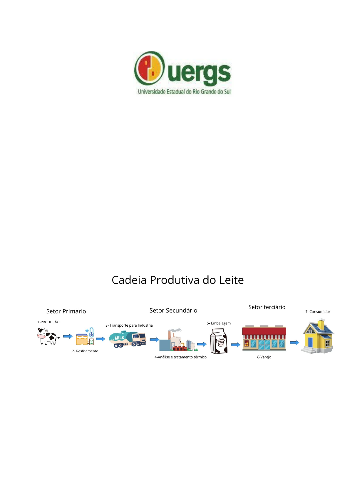 <p>Campus Regional III/Unidade em Cruz Alta</p><p>Curso de Ciência e Tecnologia de Alimentos</p><p>Diagnóstico e Elaboração de Projetos</p><p>Atividade complementar 1</p><p>Professor: Paulo Afonso Carvalho</p><p>Nome:Paulo Ricardo Pereira Data:25/09/2024</p><p>Elaborar um esquema que identifique os componentes do setor primário, secund��rio</p><p>e terciário de uma das seguintes cadeias produtivas: carne, leite, ovos, mel, frutas</p><p>ou hortaliças.</p><p>* Faça um diagrama identificando a representação esquemática de processos e</p><p>descreva-os abaixo.</p><p>1- Produção: O Brasil é o terceiro maior produtor mundial de leite, atrás apenas dos</p><p>Estados Unidos e da Índia, segundo dados da Organização das Nações Unidas para</p><p>a Alimentação e a Agricultura (FAO, 2019). O início se dá com a produção de leite</p><p>envolvendo assim os produtores, os animais, o desenvolvimento genético, a</p><p>qualidade e o preço de produtos.</p><p>2- Resfriamento:O resfriamento do leite na fazenda, imediatamente após a ordenha,</p><p>é sem dúvida uma das medidas de maior impacto sobre a qualidade do leite.</p><p>3- Transporte para Indústria: o leite é mantido em um resfriador, antes de ser</p><p>recolhido na propriedade por caminhões equipados com refrigeração.</p><p>4-Análise e tratamento térmico: é realizada a pasteurização que visa eliminar todos</p><p>os microrganismos patogênicos eventualmente presentes é extremamente</p><p>importante no sentido de assegurar ao consumidor um produto de alta qualidade</p><p>sanitária, além de propiciar um aumento da vida útil do leite pela eliminação da</p><p>maioria dos microrganismos presentes.</p><p>5-Embalagem: Após a seção de aquecimento na linha de processamento, o leite</p><p>passa por trocadores de calor para resfriamento, também de forma asséptica e, a</p><p>partir deles, é bombeado para a câmara de envase asséptico, onde é envasado em</p><p>uma embalagem quimicamente esterilizada.</p><p>6-Varejo: Após serem embalados são enviados para o mercado consumidor.</p><p>7- Consumidor: O consumidor adquire o leite no mercado, após toda essa cadeia</p><p>produtiva.</p><p>Entrega: até as 22:30h 25/09/2024, enviar arquivo digitado nas normas Uergs para</p><p>paulo-afonso@uergs.edu.br</p><p>mailto:paulo-afonso@uergs.edu.br</p>
