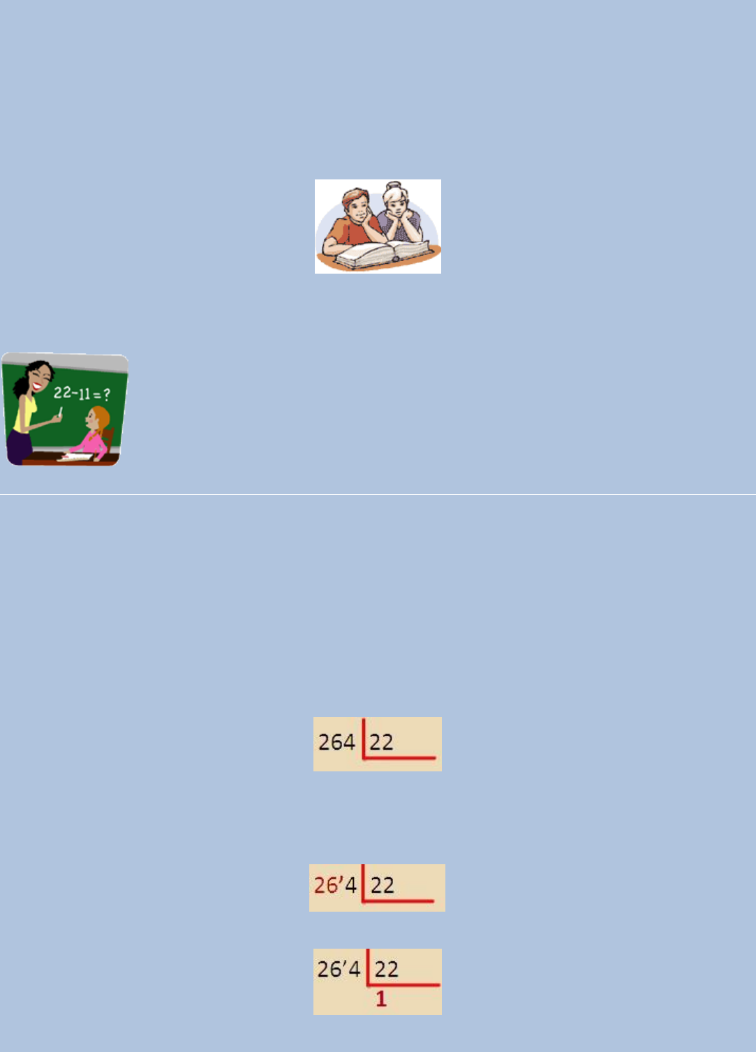 <p>COMO FAZER CONTAS DE DIVIDIR</p><p>Depois de muito esforço, os alunos da EJA conseguiram entender um pouco sobre mínimo múltiplo</p><p>comum.</p><p>O medo de números com vírgulas também diminuiu após elaborarmos uma técnica sobre multiplicação</p><p>de números decimais. Lutamos muito para entender aquelas equações fracionárias de primeiro grau e</p><p>aprendemos um pouco sobre elas. Após isso vencemos mais um desafio importante dentro da matemática,</p><p>ou seja, da transformação de números decimais para fração.</p><p>Agora, a pedido, este estudo é dedicado aos alunos do ensino fundamental a partir da 5ª série (6º ano),</p><p>da EJA, do ensino regular e enfim, a todos que possuem certa dificuldade em realizar contas de dividir.</p><p>Após um bom aprendizado deste estudo tentaremos entender a divisão de números decimais.</p><p>É muito importante aprender a usar a calculadora como ferramenta de auxílio no trabalho, nas</p><p>lojas, nos supermercados, enfim, na vida cotidiana e no âmbito profissional. Você pode verificar como é útil a</p><p>calculadora neste artigo: Como tirar porcentagem na calculadora, porém, na sala de aula é muito importante que o</p><p>aluno faça e refaça as contas no caderno sem o uso da calculadora. Com o uso constante de celulares e calculadoras</p><p>em sala de aula, a maioria dos alunos não querem mais saber de fazer contas de matemática em seu caderno e assim,</p><p>perdem um tesouro do conhecimento muito importante em sua vida, que é fazer contas de dividir, um dos alicerces da</p><p>matemática que vai garantir ao estudante amor e desempenho pela disciplina ao longo do tempo. Muitos alunos vão</p><p>ignorando estas técnicas de conhecimentos a partir da 5ª série (6º ano), período ideal para o aprendizado de matemática.</p><p>Bom, vamos praticar as contas de dividir.</p><p>Calcule o quociente, passo a passo:</p><p>a)</p><p>O número 264 é chamado de dividendo. O número 22 é chamado de divisor e resultado desta divisão é</p><p>chamado de quociente.</p><p>Como começar? Dos números do dividendo 264, qual é o número que podemos dividir por 22? Será o 2?</p><p>Não, este é menor que 22. Será o 26? Sim. Este é imediatamente maior que 22. Portanto, vamos marcar</p><p>o 26 com um tracinho, assim:</p><p>Pergunta-se: 26 dividido por 22? Não é 2, pois 2 X 22 = 44. Será o 1? Sim, é a resposta que mais se</p><p>aproxima de 26, ou seja, 1 X 22 = 22. Nossa continha fica assim:</p><p>Multiplica-se 1 x 22 = 22. Pergunta-se: de 22 até 26 existem quantos números? 4 números. Basta subtrair:</p><p>26 – 22 = 4. Portanto, nossa conta fica assim:</p><p>http://elisiofisica.blogspot.com/2010/11/minimo-multiplo-comum-exercicios.html</p><p>http://elisiofisica.blogspot.com/2010/11/minimo-multiplo-comum-exercicios.html</p><p>http://elisiofisica.blogspot.com/2010/01/multiplicacao-de-numeros-decimais-para.html</p><p>http://elisiofisica.blogspot.com/2010/01/multiplicacao-de-numeros-decimais-para.html</p><p>http://elisiofisica.blogspot.com/2010/03/equacoes-fracionarias-do-primeiro-grau.html</p><p>http://elisiofisica.blogspot.com/2010/01/transformacao-de-numeros-decimais-em.html#more</p><p>http://elisiofisica.blogspot.com/2011/01/como-tirar-porcentagem-na-calculadora.html</p><p>http://4.bp.blogspot.com/_ny-b3q8Cmg0/TRva58Re6kI/AAAAAAAAAWw/lXlMddUtrvk/s1600/escola18p.gif</p><p>http://2.bp.blogspot.com/_ny-b3q8Cmg0/TRvamxeMTbI/AAAAAAAAAWs/NqTlWncYq3k/s1600/escola50p.gif</p><p>http://2.bp.blogspot.com/_ny-b3q8Cmg0/TRvJHQst-BI/AAAAAAAAAVc/qqMic48GH0w/s1600/Div1.jpg</p><p>http://3.bp.blogspot.com/_ny-b3q8Cmg0/TRvJiHWxCgI/AAAAAAAAAVg/HkiwqOXjt_k/s1600/Div2.jpg</p><p>http://2.bp.blogspot.com/_ny-b3q8Cmg0/TRvJsocNQwI/AAAAAAAAAVk/lEo9_kbltXQ/s1600/Div3.jpg</p><p>Vamos jogar para baixo o 4, aquele que está após o tracinho, assim:</p><p>Pergunta-se: 44 dividido por 22? Dá exatamente 2. Nossa continha fica assim:</p><p>Multiplica-se 2 x 22 = 44. Pergunta-se: Pergunta-se: de 44 até 44 existem quantos números? Zero, basta</p><p>subtrair: 44 – 44 = 0. Portanto, nossa conta fica assim:</p><p>O número 12 é o quociente. O número nulo 0 é o resto. Quando o resto equivale a zero, a divisão é</p><p>exata.</p><p>Conclusão: 264:22 = 12, pois 12 X 22 = 264.</p><p>Calcule o quociente, passo a passo:</p><p>b)</p><p>Como começar? Dos números 3168, qual é o número que podemos dividir por 24? Será o 3? Não, este é</p><p>menor que 24. Será o 31? Sim. Este é imediatamente maior que 24. Vamos marcar o 31 com o nosso</p><p>tracinho, assim:</p><p>Pergunta-se: 31 dividido por 24? Não é 2, pois 2 X 24 = 48, que é maior que 31. Será o 1? Sim, é a resposta</p><p>que mais se aproxima de 31, ou seja, 1 X 24 = 24. Nossa continha fica assim:</p><p>Multiplica-se 1 x 24 = 24. Pergunta-se: de 24 para 31 existem quantos números? 7 números, basta</p><p>subtrair: 31 – 24 = 7. Portanto, nossa conta fica assim:</p><p>Vamos jogar para baixo o 6, aquele que está após o tracinho, assim:</p><p>Pergunta-se: 76 dividido por 24 é aproximadamente igual a quanto? Será 1? Não, pois 1 X 24 = 24. Dá 2?</p><p>Não, pois 2 X 24 = 48. Dá 3? Sim, é o resultado mais próximo possível de 76, ou seja, 3 X 24 = 72. Nossa</p><p>continha fica assim:</p><p>Multiplica-se 3 x 24 = 72. Pergunta-se: de 72 até 76 existem quantos números? 4 números, basta subtrair:</p><p>76 – 72 = 4. Portanto, nossa conta fica assim:</p><p>http://1.bp.blogspot.com/_ny-b3q8Cmg0/TRvJ4LuKNGI/AAAAAAAAAVo/J-KVuJzQd0U/s1600/Div4.jpg</p><p>http://4.bp.blogspot.com/_ny-b3q8Cmg0/TRvJ_RPKCqI/AAAAAAAAAVs/ycJ8QmkhmPc/s1600/Div5.jpg</p><p>http://2.bp.blogspot.com/_ny-b3q8Cmg0/TRvKISLRZxI/AAAAAAAAAVw/3agSjNMMUtQ/s1600/Div6.jpg</p><p>http://1.bp.blogspot.com/_ny-b3q8Cmg0/TRvKVi5yKFI/AAAAAAAAAV0/1hMPchlxiC0/s1600/Div7.jpg</p><p>http://3.bp.blogspot.com/_ny-b3q8Cmg0/TRvLKMwnTmI/AAAAAAAAAV4/ZwIBGacsm30/s1600/Div8.jpg</p><p>http://4.bp.blogspot.com/_ny-b3q8Cmg0/TRvLjtqX55I/AAAAAAAAAV8/mn9AExg