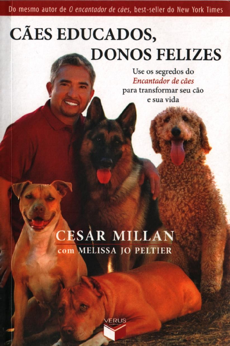 <p>Orelha da Capa:</p><p>Em Cães educados, donos felizes, Cesar Milian expõe de maneira mais profunda seus conhecimentos</p><p>sobre psicologia canina e mostra a você como desenvolver a energia calma e assertiva de um líder de</p><p>matilha bem-sucedido, usando-a para melhorar a vida do seu cão - e a sua também. Repleto de dicas e</p><p>t��cnicas úteis, além de histórias de sucesso de fãs, clientes e de seu programa de TV, Dog Whisperer, este</p><p>livro vai ajudá-lo a interpretar a sua energia e a do seu cão, para que você possa não só corrigir problemas</p><p>de comportamento do seu companheiro, mas principalmente fortalecer o elo entre vocês.</p><p>Os princípios da energia calma e assertiva o ajudarão a se tornar um líder de matilha mais consistente em</p><p>todos os aspectos da sua vida, melhorando seus relacionamentos com amigos, familiares e colegas de</p><p>trabalho.</p><p>Além disso, Cesar aborda pela primeira vez diversas questões importantes, incluindo tudo que você</p><p>precisa saber sobre as ferramentas de controle do comportamento canino disponíveis e as diferenças entre</p><p>personalidade e instabilidade. A leitura deste livro trará mais tranqüilidade para você e muito mais alegria</p><p>ao relacionamento com o seu melhor amigo!</p><p>Orelha da Contra Capa:</p><p>Fundador do Centro de Psicologia Canina, em Los Angeles, Cesar Millan apresenta o programa Dog</p><p>Whisperer, do National Geographic Channel. Em 2005 foi premiado pela National Humane Society, a</p><p>maior organização norte-americana de proteção aos animais, por seu trabalho de reabilitação de cães</p><p>abandonados. Além dos seminários ministrados por Cesar e de seu trabalho com cachorros instáveis, ele e</p><p>a esposa criaram a Fundação Cesar e Ilusion Millan, uma organização sem fins lucrativos dedicada a</p><p>oferecer apoio financeiro e consultoria em reabilitação a abrigos de cães. Nascido em Culiacán, no</p><p>México, Cesar vive em Los Angeles com a esposa, Ilusion, e os dois filhos, Andre e Calvin.</p><p>Melissa Jo Peltier, produtora executiva e redatora do programa Dog Whisperer, ganhou mais de cinqüenta</p><p>prêmios, incluindo um Emmy, por sua direção e redação em filmes e programas de TV. Ela vive na</p><p>cidade de Nyack, em Nova York, com o marido, o diretor e roteirista John Gray, e a enteada, Caitlin</p><p>(***).</p><p>www.cesarmillaninc.com</p><p>http://www.cesarmillaninc.com/</p><p>Cães Educados, Donos Felizes</p><p>CIP – BRASIL. CATALOGAÇÃO NA FONTE</p><p>SINDICATO NACIONAL DOS EDITORES DE LIVROS, RJ</p><p>M59c</p><p>Millan, Cesar</p><p>Cães educados, donos felizes: use os segredos do</p><p>Encantador de cães para transformar seu cão e sua vida / Cesar</p><p>Millan; com Melissa Jo Peltier ; tradução Carolina Caires Coelho.</p><p>-- Campinas, SP : Verus, 2008.</p><p>Apêndice</p><p>Inclui Bibliografia</p><p>ISBN 978-85-7686-038-9</p><p>1. Cães - Comportamento 2. Cão - Adestramento</p><p>3. Comunicação homem-animal I. Peltier, Melissa Jo.</p><p>II.Título.</p><p>08-2834 CDD: 636.70887</p><p>CDU: 636.76</p><p>CESAR MILLAN</p><p>COM MELISSA JO PELTIER</p><p>CÃES EDUCADOS,</p><p>DONOS FELIZES</p><p>Use os segredos do Encantador de cães</p><p>para transformar seu cão e sua vida</p><p>Tradução</p><p>Carolina Caires Coelho</p><p>VERUS</p><p>editora</p><p>Título original</p><p>Be the Pack Leader</p><p>Use Cesar's Way lo Transform Your Dog and Your Life</p><p>Copidesque</p><p>Ana Paula Gomes</p><p>Revisão</p><p>Anna Carolina G. de Souza</p><p>Projeto gráfico</p><p>André S. Tavares da Silva</p><p>Foto da capa:</p><p>Alan Weissman</p><p>Copyright © 2007 by Cesar Millan and Melissa Jo Peltier</p><p>Todos os direitos reservados, no Brasil, por Verus</p><p>Editora. Nenhuma parte desta obra pode ser reproduzi</p><p>da ou transmitida por qualquer forma e/ou quaisquer</p><p>meios (eletrônico ou mecânico, incluindo fotocópia e</p><p>gravação) ou arquivada em qualquer sistema ou banco</p><p>de dados sem permissão escrita da editora.</p><p>VERUS EDITORA LTDA.</p><p>Rua Benedicto Aristides Ribeiro, 55</p><p>Jd. Santa Genebra II - 13084-753</p><p>Campinas/SP - Brasil</p><p>Fone/Fax: (19) 3249-0001</p><p>verus@veruseditora.com.br</p><p>www.veruseditora.com.br</p><p>Dedicado à minha esposa, Ilusion,</p><p>inspiração e fonte da minha liderança</p><p>e</p><p>A você, leitor, pois acredito verdadeiramente que,</p><p>se podemos mudar nossa vida e nos tornar líderes de matilha</p><p>melhores para nossos cães, nossa família e para nós mesmos,</p><p>então, juntos, podemos mudar o mundo.</p><p>Esta é a Lei da Selva - tão antiga e</p><p>verdadeira quanto o céu;</p><p>E o Lobo que a seguir prosperará, mas o</p><p>Lobo que a desobedecer morrerá.</p><p>Como a trepadeira que envolve o tronco</p><p>da árvore, a Lei corre por todos os lados</p><p>Pois a força da Alcatéia é o Lobo, e a</p><p>força do Lobo é a Alcatéia.</p><p>Rudyard Kipling,- "A lei da selva"</p><p>AGRADECIMENTOS</p><p>Em meu último livro, “O encantador de cães”, agradeci a minha família, a meus modelos de conduta e a</p><p>todas as pessoas que me ajudaram nesta maravilhosa jornada, por meio da qual me tornei o "Encantador</p><p>de Cães". É claro que sempre me lembro desses indivíduos, e sem eles aquele meu livro não teria</p><p>existido. No entanto, neste livro, quero agradecer a todas as mulheres, e ao poder especial que elas têm -</p><p>mesmo que não o percebam. Eu me preocupo com o fato de meus filhos estarem crescendo em um mundo</p><p>muito instável, um mundo que vai precisar de líderes de matilha realmente bons para ser consertado.</p><p>Acredito que as mulheres têm a chave para colocar o mundo de volta no lugar. Mas elas não podem fazer</p><p>isso até que os homens reconheçam e honrem a sabedoria única e a liderança que elas têm a oferecer - e</p><p>até que elas mesmas consigam aceitar a líder de matilha que existe dentro de ca