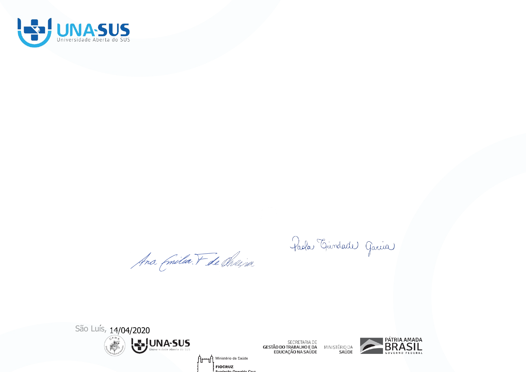 <p>CERTIFICADO DE CONCLUSÃO</p><p>A Universidade Federal do Maranhão (UFMA), por meio da Universidade</p><p>Aberta do SUS (UNA-SUS), certifica que</p><p>Elizabeth Machado Costa Vitoria</p><p>CPF no 00974356514</p><p>, concluiu o curso “Orientações gerais ao paciente</p><p>com COVID-19 na Atenção Primária à Saúde”, produzido pela Universidade Federal do Maranhão (UFMA), na categoria de curso de extensão, com carga</p><p>horária de 40 horas.</p><p>Ana Emília Figueiredo de Oliveira</p><p>Coordenadora Geral UNA-SUS/UFMA</p><p>Paola Trindade Garcia Coordenadora de Produção Pedagógica UNA-SUS/UFMA</p><p>São Luís, 14/04/2020</p><p>Este curso apresenta as fases epidemiológicas da COVID-19 e dá orientações sobre manifestações clínicas e condições de risco para complicações em casos de Síndrome Gripal. Você terá acesso ainda às diretrizes preconizadas pelo Ministério da Saúde e Organização Mundial da Saúde sobre o isolamento domiciliar, bem como às medidas de prevenção e redução do novo coronavírus na Unidade de Saúde da Família.Conteúdo Programático do Curso “Orientações gerais ao paciente com COVID-19 na Atenção Primária à Saúde”</p><p>OBJETIVO GERAL:</p><p>Descrever as orientações necessárias aos pacientes com COVID-19 na Atenção Primária à Saúde.</p><p>CONTEÚDO:</p><p>· Fases epidemiológicas da COVID-19: casos importados, transmissão local e transmissão comunitária</p><p>· Definições de casos operacionais (suspeitos, prováveis, confirmados, descartados e excluídos)</p><p>· Orientações aos usuários sobre as manifestações clínicas e condições de risco</p><p>· Isolamento domiciliar - orientações e gerenciamento de contatos</p><p>· Medidas de redução da transmissão do novo coronavírus na Unidade de Saúde da Família</p><p>· Medidas de prevenção para a comunidade</p><p>· Articulação da Rede de Atenção à Saúde</p><p>Universidade Federal do Maranhão</p><p>CNPJ: 06.279.103/0001-19</p><p>Emitido via Plataforma Arouca. Verifique a autenticidade em: https://www.unasus.gov.br/certificado/GXDMWWEA-HJRJBAAA.</p><p>image6.png</p><p>image7.png</p><p>image8.png</p><p>image9.png</p><p>image10.png</p><p>image11.png</p><p>image12.png</p><p>image13.png</p><p>image14.png</p><p>image1.png</p><p>image2.png</p><p>image3.png</p><p>image4.png</p><p>image5.png</p>
