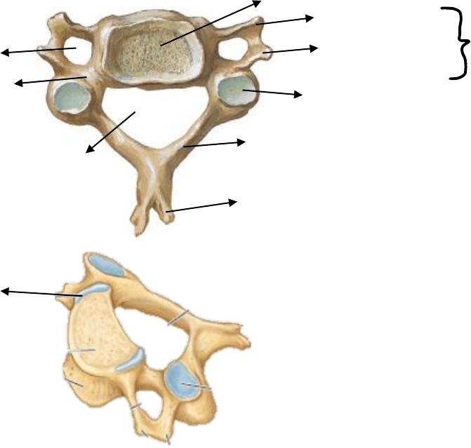 <p>Coluna vertebral – Vertebras cervicais</p><p>Vértebras típicas e atípicas</p><p>Vértebras típicas</p><p>Corpo vertebral reniforme</p><p>Processo unciforme</p><p>Forame transverso</p><p>lâmina</p><p>Processo espinhoso</p><p>bífido</p><p>Face articular superior</p><p>Tubérculo anterior</p><p>Tubérculo posterior</p><p>Pedículo</p><p>Processo</p><p>transverso</p><p>Forame vertebral triangular</p><p>Ligamento intertransverso</p><p>Ligamento longitudinal</p><p>posterior</p><p>Ligamento longitudinal</p><p>anterior</p><p>Ligamento amarelo</p><p>Ligamento amarelo</p><p>Ligamento interespinhoso</p><p>Ligamento supraespinhoso</p><p>Vértebras atípicas</p><p>Atlas (C1)</p><p>Fóvea do dente</p><p>Massa lateral</p><p>Forame vertebral</p><p>Tubérculo posterior</p><p>Arco posterior</p><p>Sulco para a artéria vertebral</p><p>Face articular superior</p><p>Processo</p><p>transverso</p><p>Forame</p><p>transverso</p><p>Arco anterior</p><p>Tubérculo anterior Tubérculo para</p><p>o ligamento</p><p>transverso</p><p>Arco posterior</p><p>Tubérculo posterior</p><p>Forame transverso</p><p>Processo transverso</p><p>Face articular</p><p>Tubérculo anterior</p><p>Forame vertebral</p><p>Áxis (C2)</p><p>Face articular posterior para</p><p>o ligamento transverso</p><p>Processo odontoide</p><p>Face articular</p><p>superior para o atlas</p><p>Massa lateral</p><p>Processo transverso</p><p>Processo articular</p><p>inferior</p><p>Processo espinhoso</p><p>Face articular anterior para o atlas</p><p>Face articular superior</p><p>para o atlas</p><p>Face articular inferior</p><p>para a C3</p><p>Pedículo</p><p>Corpo</p><p>Massa lateral</p><p>Processo transverso</p><p>Vertebras toracicas</p><p>T6</p><p>T12</p>