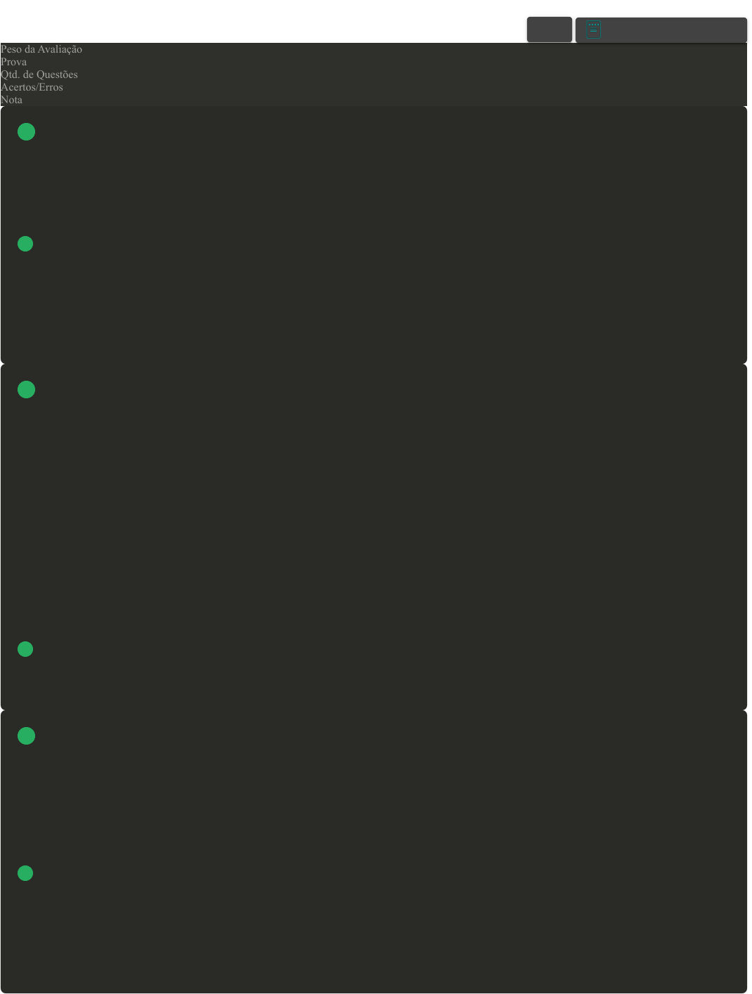 <p>Prova Impressa</p><p>GABARITO | Avaliação II - Individual (Cod.:986665)</p><p>Peso da Avaliação 2,00</p><p>Prova 87899324</p><p>Qtd. de Questões 10</p><p>Acertos/Erros 10/0</p><p>Nota 10,00</p><p>Compreender o domínio cognitivo é um fator crucial para o desenvolvimento de um bom projeto de aprendizagem com a Taxonomia de Bloom. Com base no</p><p>domínio cognitivo desenvolvido por Bloom, foram criadas as dimensões da taxonomia de Bloom, uma versão revisada do conteúdo original. Sobre os</p><p>elementos das dimensões da TB revisada, analise as sentenças a seguir:</p><p>I- Aplicar: ordenar, explicar, diferenciar e alcançar.</p><p>II- Lembrar: listar, descrever, tabular e uso factual.</p><p>III- Dimensão do conhecimento: factual, conceitual, procedimental e metacognitivo.</p><p>IV- Criar: resumir, interpretar, prever e executar.Assinale a alternativa CORRETA:</p><p>A As sentenças II e III estão corretas.</p><p>B As sentenças I, II e III estão corretas.</p><p>C As sentenças I e IV estão corretas.</p><p>D As sentenças II, III e IV estão corretas.</p><p>Diferente do que muitos imaginam, o EAD existe a mais de um século, aparecendo pela primeira vez em Boston (1728), nas páginas de um jornal, em que o</p><p>professor Caleb Phillips oferecia um curso de taquigrafia por correspondência. A partir daí, muito se aprendeu sobre o tema, o processo de Ensino e</p><p>Aprendizagem se atualizou, juntamente às tecnologias necessárias para os estudos e as capacidades necessárias para o desenvolvimento de um curso de</p><p>educação a distância, que também se modificaram. De acordo com Campos (2000), os objetivos do curso de EAD podem ser delimitados. Com base na</p><p>descrição dos objetivos do curso de EAD, classifique V para as sentenças verdadeiras e F para as falsas:</p><p>( ) Pode-se dizer que o ensino EAD é desenvolvido a partir de uma sequência pedagógica bem delineada de forma a ser observado o todo e não apenas</p><p>elementos do projeto.</p><p>( ) A equipe de planejamento do projeto deve pensar na execução da proposta, mas as tecnologias a serem utilizadas ficam a critério dos estudantes.</p><p>( ) O método para o planejamento de um programa está diretamente atrelado às estratégias de aprendizagem, uma vez que é a partir delas que se cria o</p><p>programa.</p><p>( ) Uma vez que os objetivos propostos são delimitados, o projeto pode ser organizado de forma síncrona para abertura do curso, sendo já disponibilizado</p><p>aos estudantes.</p><p>Assinale a alternativa que apresenta a sequência CORRETA:</p><p>Fonte: CAMPOS, G. H. B. de. Planejamento de projetos em educação a distância. Rio de Janeiro: Serviço Nacional de Aprendizagem Comercial, 2000.</p><p>A F - V - F - V.</p><p>B F - F - V - V.</p><p>C V - F - V - F.</p><p>D V - V - F - F.</p><p>A TB é uma ferramenta que norteia o desenvolvimento do processo de aprendizagem a ser contemplado por uma disciplina ou curso. Os domínios são uma</p><p>das características da Taxonomia de Bloom, sendo que dentre esses domínios existentes temos o domínio psicomotor. Sobre o domínio psicomotor, associe os</p><p>itens, utilizando o código a seguir:</p><p>I- Percepção.</p><p>II- Resposta orientada.</p><p>III- Mecanismo.</p><p>( ) Imitar os movimentos de escrita feitos pelo professor e os colegas.</p><p>( ) Identificar, dentre diferentes materiais, aqueles que poderiam ser utilizados para a escrita.</p><p>( ) Esboçar rabiscos com os materiais de escrita.Assinale a alternativa que apresenta a sequência CORRETA:</p><p>A II - I - III.</p><p>B III - II - I.</p><p>C I - III - II.</p><p>D II - III - I.</p><p>VOLTAR</p><p>A+ Alterar modo de visualização</p><p>1</p><p>2</p><p>3</p><p>A taxonomia de Bloom nos apresenta diversos instrumentos a serem empregados na estruturação da aprendizagem, um destes instrumentos é a compreensão</p><p>dos "Domínios do Conhecimento", que se sobrepõem um ao outro e se interseccionam, formando, dessa forma, o indivíduo completo. Um desses domínios é</p><p>o Afetivo, em que a partir dele são interpretadas características específicas de cada aluno individualmente. Sobre o Domínio Afetivo, avalie as asserções a</p><p>seguir e a relação proposta entre elas:</p><p>I- É nesse domínio que a forma de aprendizagem se dá a partir de sentimentos e comportamentos (pessoais, intrapessoais e interpessoais), gerando assim a</p><p>compreensão de si.</p><p>PORQUE</p><p>II- É no domínio socioafetivo/afetivo que se analisa as mudanças de interesse, sentimentos e cognição.Assinale a alternativa CORRETA:</p><p>A As duas asserções são proposições verdadeiras, mas a segunda não é uma justificativa correta da primeira.</p><p>B A primeira asserção é uma proposição falsa, e a segunda, uma proposição verdadeira.</p><p>C As duas asserções são proposições verdadeiras, e a segunda é uma justificativa correta da primeira.</p><p>D A primeira asserção é uma proposição verdadeira, e a segunda, uma proposição falsa.</p><p>O processo educacional é extremamente complexo e cheio de técnicas, seu planejamento deve sem bem estudado e projetado. Nesse sentido, compreender o</p><p>que exatamente estamos estudando é de suma importância. Assim, o processo educacional foi definido como o “[...] resultado de um processo de</p><p>planejamento que está diretamente relacionado à escolha do conteúdo, de procedimentos, de atividades, de recursos disponíveis, de estratégias, de</p><p>instrumentos de avaliação e da metodologia a ser adotada por um determinado período [...]” (FERRAZ; BELHOT, 2010, p. 421). Dentre as diferentes</p><p>técnicas existentes para a aprendizagem e educação, temos a Taxonomia de Bloom.</p><p>Sobre a taxonomia de Bloom, assinale a alternativa CORRETA:</p><p>Fonte: FERRAZ, A. P. C. M.; BELHOT, R. V. Taxonomia de Bloom: revisão teórica e apresentação das adequações do instrumento para definição de</p><p>objetivos instruciona