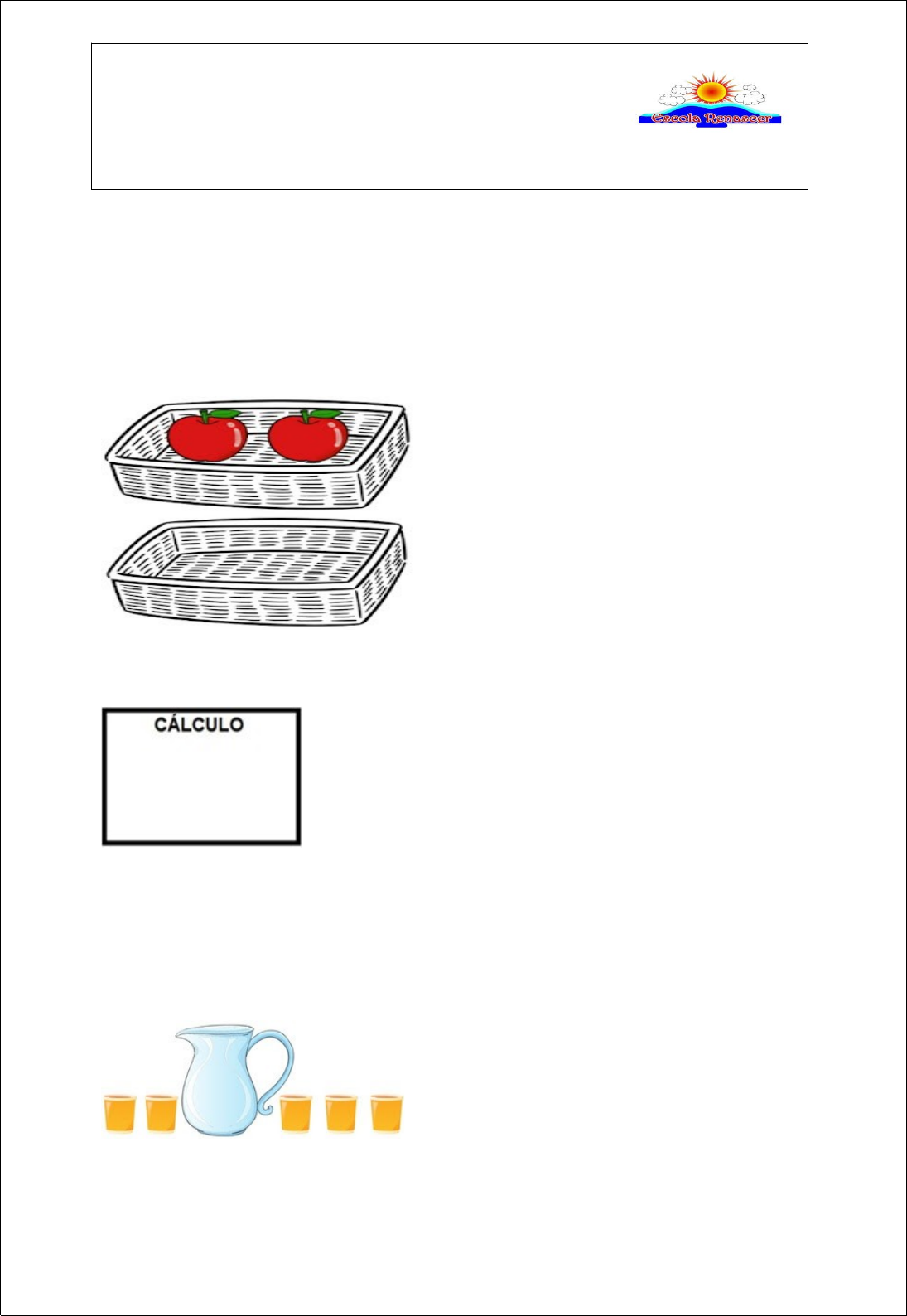 <p>ESCOLA RENASCER</p><p>SÃO LUÍS____ DE _______________DE _________________</p><p>ALUNO:___________________________________________</p><p>PROFESSORA :SILVERIA MARIA</p><p>TUMA:____________</p><p>AVALIÇÃO DE MATEMÁTICA</p><p>1. Desenhe na segunda sexta o triplo de maçãs da primeira.</p><p>2. Giovane comprou 3 dúzia de ovos. Quantos ovos ela tem?</p><p>Resposta:_________</p><p>3. A jarra abaixo completa com suco enche 5 copos iguais. Assim sendo, observe o desenho e resolva às questões.</p><p>a) Quantos copos 3 dessas jarras enchem?</p><p>______________________________</p><p>b) E quantos copos 5 jarras enchem?</p><p>______________________________</p><p>4. A reta numérica abaixo representa o percurso que Lucas já correu em uma maratona</p><p>Sabendo que Mario já percorreu o dobro de Lucas, em que posição ele se encontra nessa reta?</p><p>a) 2</p><p>b) 4</p><p>c) 6</p><p>d) 8</p><p>5. Marcelo tem 3 ioiôs. Seu primo Marcelo possui 5 vezes mais. Quantos ioiôs Marcelo tem?</p><p>a) 15</p><p>b) 8</p><p>c) 5</p><p>d) 3</p><p>BOA SORTE!</p><p>GABARITO</p><p>1. Desenhar seis maçãs. /</p><p>2. 36 ovos. /</p><p>3. a) 15 copos,</p><p>b) 25 copos. / 4D /</p><p>5. a)</p><p>9A /</p><p>image2.jpg</p><p>image3.jpg</p><p>image4.jpg</p><p>image5.jpg</p><p>image1.jpeg</p>