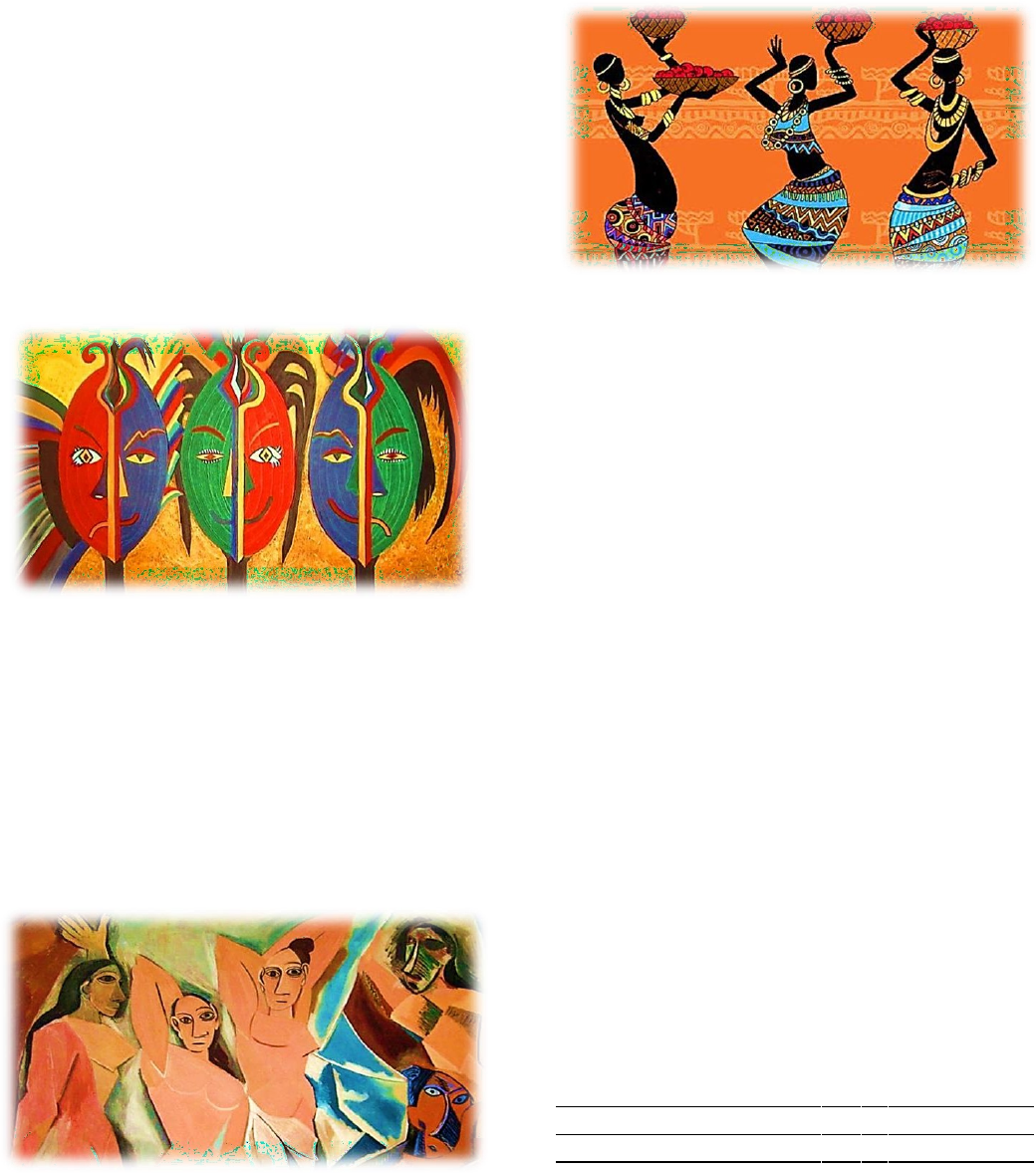 <p>CULTURA AFRICANA</p><p>Você já percebeu como a cultura africana é extremamente grande e diversa? Ela é considerada um conjunto de hábitos, costumes, religiões e valores dos povos africanos. Com a vinda deles para o Brasil durante a colonização portuguesa, toda essa cultura foi amplamente introduzida em território brasileiro.</p><p>Arte Africana</p><p>Tem a finalidade de representar os hábitos e os costumes das tribos africanas durante os tempos colonial e imperial. Os povos africanos criavam seus objetos artísticos usando elementos da natureza, como argila, terracota, madeira, ouro e bronze. Esculturas, pinturas e máscaras também fazem parte da arte africana.</p><p>Curiosidade</p><p>Pablo Picasso, apesar de não ter nacionalidade africana, produzia suas obras com máscaras e estátuas com características dessa cultura, com a finalidade de dar mais vida e elegância à sua arte.</p><p>Danças africanas</p><p>As danças africanas são manifestações culturais onde cada parte do corpo de um indivíduo se move com um ritmo diferente. Os pés e os braços seguem a base musical, enquanto o corpo se instrumentaliza numa única sinfonia. Kuduru, capoeira, quizomba, danças tribais e danço-congo são exemplos de danças africanas.</p><p>REFLETINDO</p><p>Não restam dúvidas que a cultura africana possui uma enorme riqueza material e imaterial, principalmente devido à variedade de grupos étnicos presentes em seu território, influenciada por outras nações que entraram em contato com os africanos ao longo do tempo. Assim, valorizar essa cultura é um ato de cidadania e respeito com os nossos antepassados.</p><p>Texto: Tudo Sala de Aula.</p><p>ATIVIDADE SOBRE O QUE VOCÊ APRENDEU</p><p>1. Conforme o que você leu, como a cultura africana é considerada?</p><p>2. Que artista produzia suas obras baseadas nas máscaras e esculturas africanas?</p><p>a) Leonardo da Vinci.</p><p>b) Di Cavalcanti.</p><p>c) Pablo Picasso.</p><p>· d) Martial Raysse.</p><p>3. Dos elementos abaixo, qual deles NÃO era comum ser usado pelos africanos para produzir seus objetos artísticos?</p><p>a) Ouro.</p><p>b) Argila.</p><p>c) Madeira.</p><p>d) Pinha.</p><p>4. Complete as frases segundo o texto.</p><p>a) Os povos africanos criavam seus objetos artísticos usando elementos da _ _ .</p><p>b) apropriava-se da cultura africana com a finalidade de dar mais</p><p>_ e _ às suas pinturas.</p><p>c) A cultura _ possui uma enorme riqueza imaterial.</p><p>d) Nas danças africanas, os pés e os braços seguem a base _ _.</p><p>5. Procure no diagrama três danças africanas.</p><p>C</p><p>A</p><p>P</p><p>O</p><p>E</p><p>I</p><p>R</p><p>A</p><p>D</p><p>E</p><p>F</p><p>G</p><p>B</p><p>J</p><p>K</p><p>I</p><p>O</p><p>H</p><p>P</p><p>L</p><p>Ç</p><p>O</p><p>H</p><p>Q</p><p>S</p><p>D</p><p>J</p><p>Q</p><p>K</p><p>U</p><p>D</p><p>U</p><p>R</p><p>O</p><p>W</p><p>U</p><p>C</p><p>T</p><p>G</p><p>A</p><p>D</p><p>T</p><p>Y</p><p>I</p><p>T</p><p>Q</p><p>U</p><p>I</p><p>Z</p><p>O</p><p>M</p><p>B</p><p>A</p><p>D</p><p>X</p><p>P</p><p>L</p><p>J</p><p>B</p><p>F</p><p>D</p><p>Z</p><p>X</p><p>6. Troque os símbolos pelas letras e descubra a palavra relacionada a esta aula.</p><p>7.</p><p>Associe as imagens abaixo aos nomes apresentados no quadro.</p><p>Esculturas</p><p>Pinturas</p><p>Máscaras</p><p>Danças</p><p>8. Desenhe no espaço abaixo uma máscara africana. Use sua criatividade.</p><p>U</p><p>C</p><p>R</p><p>A</p><p>L</p><p>T</p><p>F</p><p>I</p><p>N</p><p>image7.jpeg</p><p>image5.jpeg</p><p>image9.jpeg</p><p>image6.jpeg</p><p>image11.jpeg</p><p>image7.png</p><p>image13.png</p><p>image8.png</p><p>image9.png</p><p>image16.png</p><p>image10.png</p><p>image11.png</p><p>image12.png</p><p>image14.png</p><p>image15.png</p><p>image17.png</p><p>image23.png</p><p>image24.png</p><p>image18.png</p><p>image19.png</p><p>image27.png</p><p>image20.png</p><p>image21.png</p><p>image22.png</p><p>image25.png</p><p>image26.png</p><p>image28.png</p><p>image29.png</p><p>image30.png</p><p>image36.png</p><p>image37.png</p><p>image31.png</p><p>image32.png</p><p>image40.png</p><p>image33.png</p><p>image34.png</p><p>image1.png</p><p>image2.png</p><p>image3.png</p><p>image4.jpeg</p>