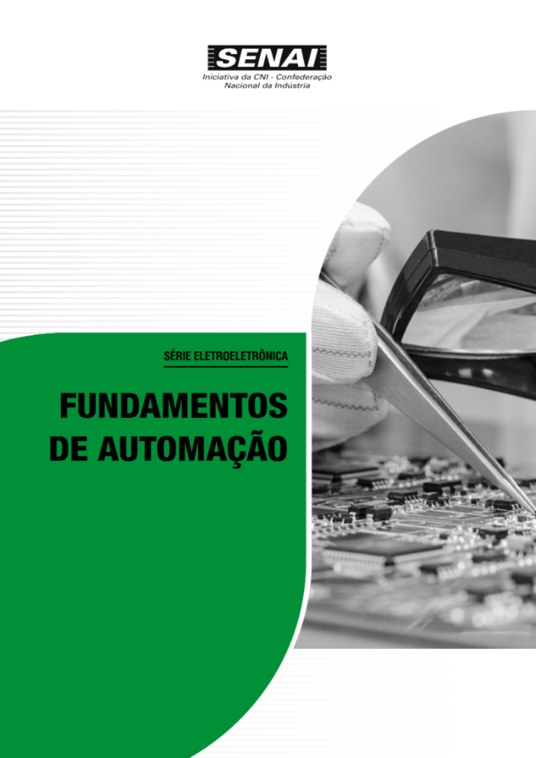 <p>SENAI Iniciativa da CNI Confederação Nacional da Indústria SÉRIE ELETROELETRÔNICA FUNDAMENTOS DE AUTOMAÇÃO</p><p>SENAI Iniciativa da CNI - Confederação Nacional da Indústria SÉRIE ELETROELETRÔNICA FUNDAMENTOS DE AUTOMAÇÃO</p><p>Iniciativa da CNI - Confederação Nacional da Indústria SÉRIE FUNDAMENTOS DE AUTOMAÇÃO</p><p>2016. SENAI - Departamento Nacional 2016. SENAI - Departamento Regional de Santa Catarina A reprodução total ou parcial desta publicação por quaisquer meios, seja eletrônico, mecânico, fotocópia, de gravação ou outros, somente será permitida com prévia autorização, por escrito, do Esta publicação foi elaborada pela equipe da Gerência de Educação e Tecnologia do SENAI de Santa Catarina, com a coordenação do SENAI Departamento Nacional, para ser utilizada por todos os Departamentos Regionais do SENAI nos cursos presenciais e a SENAI Departamento Nacional Unidade de Educação Profissional e Tecnológica - UNIEP SENAI Departamento Regional de Santa Catarina Gerência de Educação e Tecnologia - GEDUT FICHA CATALOGRÁFICA S491f Serviço Nacional de Aprendizagem Departamento Nacional Fundamentos de automação / Serviço Nacional de Aprendizagem Industrial. Departamento Serviço Nacional de Aprendizagem Departamento Regional de Santa Catarina. : 2016. 192 p. il. : 30 cm. - (Série Inclui e bibliografia ISBN 9 788550 501925 1. Automação 2. Controladores Serviço Nacional de Aprendizagem Departamento Regional de Santa Catarina II. III. Série. CDU: SENAI Sede Serviço Nacional de Setor Bancário Norte Quadra 1 Bloco C . Edifício Roberto Aprendizagem Industrial Simonsen 70040-903 Brasília - DF Tel.: (0xx61) 3317-9001 Departamento Nacional Fax: (0xx61) 3317-9190 http://www.senai.br</p><p>Lista de ilustrações Figura 1 Botão de acionamento manual 22 Figura 2 - Chave de segurança fim de curso 23 Figura 3 - Sensores NPN e PNP 25 Figura 4 Sensores PNP e NPN com resistor de definição de sinal para alta impedância 26 Figura 5 - Gráfico da curva de sensores PTC e NTC (genéricos) 28 Figura 6 Sonda com termopar 31 Figura 7 Curvas de termopares entre temperatura e tensão gerada em milivolts 31 Figura 8 - Piezoresistor utilizado como elemento detector de pressão 33 Figura 9 - Tubulação contendo um ponto de estrangulamento 35 Figura 10 Representação de um sensor tipo pitot 35 Figura 11 - Rotâmetro 36 Figura 12 - Representação do componente LDR e sua simbologia 38 Figura 13 Sensor ultravioleta 38 Figura 14 - Sensores de proximidade 39 Figura 15 Sensor de presença tipo emissor/receptor 40 Figura 16 Encoder 41 Figura 17 Atuadores de ação simples e respectiva simbologia 44 Figura 18 Cilindro de dupla ação 45 Figura 19 - Princípio de funcionamento e curva de desempenho de motor pneumático 46 Figura 20 - Simbologia da válvula direcional 5/3 vias e identificação conforme norma ISO 1219 47 Figura 21 - Válvula de controle proporcional de pressão/vazão 48 Figura 22 Vista explodida dos componentes do motor monofásico 52 Figura 23 - Vista explodida dos componentes do motor trifásico 56 Figura 24 Motor trifásico 57 Figura 25 Enrolamento do motor trifásico 58 Figura 26 Resistências industriais de aquecimento 61 Figura 27 Funcionamento básico de um solenoide e simbologia 63 Figura 28 Elementos construtivos do contator 64 Figura 29 Simbologia do contator (bobina e contatos principais) 65 Figura 30 Identificação de terminais dos contatos auxiliares 65 Figura 31 - Controlador programável 74 Figura 32 = Elementos da unidade central de processamento do CLP 75 Figura 33 Exemplo de processador 76 Figura 34 - Fonte de alimentação (1) incorporada ao CLP (2), seus módulos de entradas/saídas e de comunicação (3) 79 Figura 35 Estruturação das variáveis de entradas e saídas dos controladores programáveis 80 Figura 36 - Programa do usuário contendo uma lógica de programação Ladder 83 Figura 37 - Ciclo de varredura do controlador programável 84 Figura 38 - Interface do controlador programável 85</p><p>Figura 39 - Etapas constituintes do ciclo de scan 86 Figura 40 - Circuito para acionamento de sinalização 88 Figura 41 - Representação do diagrama Ladder para acionamento da sinalização 89 Figura 42 - Blocos de funções lógicas AND (a), OR (b) e NOT (c) e sua tabela-verdade 90 Figura 43 - Diagrama sequencial para acionamento da sinalização 92 Figura 44 - Linguagem em texto estruturado 94 Figura 45 - Estrutura funcional de um CLP 98 Figura 46 - Unidade CPU de um CLP de médio e grande porte 100 Figura 47 Entrada da rede de energia na fonte e saída para o CLP 101 Figura 48 - Fonte de alimentação acoplada a rack de CLP 102 Figura 49 Cartão de entrada de CLP 104 Figura 50 - Sensor de presença sem contato 106 Figura 51 - 107 Figura 52 - Sensor de pressão/vazão 109 Figura 53 Interface homem máquina (IHM) 111 Figura 54 - Sensor de temperatura tipo sonda 112 Figura 55 - Cartão de saída de CLP modular 114 Figura 56 - Lâmpadas de sinalização em um painel elétrico 116 Figura 57 - Contator de acionamento elétrico 116 Figura 58 - solenoide 117 Figura 59 Inversor de frequência 119 Figura 60 - Sinal de controle PWM 120 Figura 61 - Identificação do cabeamento de entradas e saídas em borneira de painel elétrico 122 Figura 62 Sinalização luminosa de CLP 123 Figura 63 - Instalação adequada e completa de um CLP 124 Figura 64 Exemplo de janela de trabalho do software de programação WEG Programming Suite v2.30 129 Figura 65 - Paleta de componentes e elementos Ladder do software de programação WEG Programming Suite v2.30 130 Figura 66 - Exemplo de ambiente de edição do software de programação WEG Programming Suite 131 Figura 67 - Metodologia de estruturação da linguagem Ladder 133 Figura 68 Caminhos de continuidade possíveis para o exemplo de lógica Ladder 134 Figura 69 - Configuração para comunicação entre CLP e computador 135 Figura 70 - Exemplo de compilação de programa Ladder no software de p