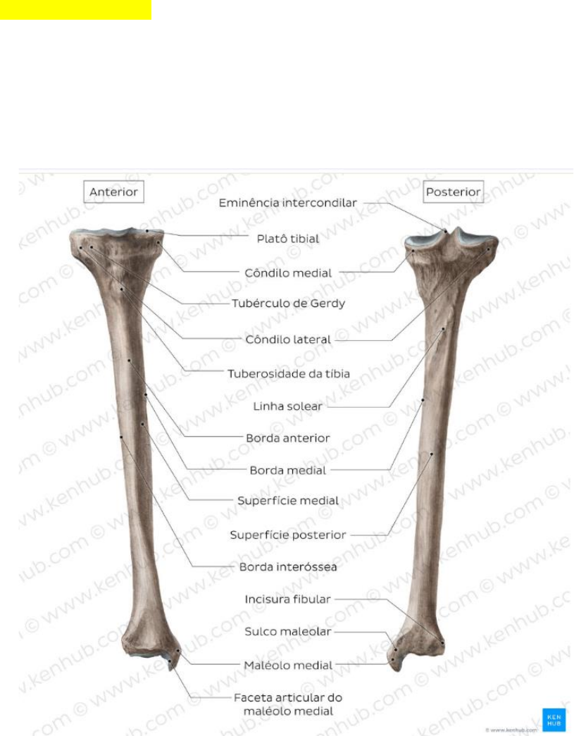 <p>PROBLEMA 02 – MÚSCULOS</p><p>OSSOS DA PERNA:</p><p>A TÍBIA E A FÍBULA SÃO DOIS OSSOS LONGOS QUE CURSAM PARALELOS UM AO</p><p>OUTRO, FORMANDO A SUSTENTAÇÃO DA PERNA E FORNECENDO PONTOS DE</p><p>INSERÇÃO PARA MUITOS MÚSCULOS.</p><p>Tíbia: o maior e mais medial osso da perna, formando tanto a articulação do joelho</p><p>quanto do tornozelo. Ela facilita a sustentação do peso e os movimentos.</p><p>A TÍBIA, POPULARMENTE CONHECIDA COMO “OSSO DA CANELA”, É O MAIOR E MAIS</p><p>MEDIAL DOS DOIS. VOCÊ PODE PALPAR A BORDA ANTERIOR QUANDO CURSA SEU</p><p>DEDO INFERIORMENTE NO ASPETO ANTERIOR DE SUA PERNA. VOCÊ COM CERTEZA</p><p>TAMBÉM É CAPAZ DE SENTÍ-LA QUANDO BATE EM ALGUMA SUPERFÍCIE POR</p><p>ACIDENTE. A TÍBIA É O OSSO SUPORTADOR DE PESO DA PERNA, E ESTÁ</p><p>DIRETAMENTE ENVOLVIDA NA FORMAÇÃO DAS ARTICULAÇÕES DO JOELHO E DO</p><p>TORNOZELO. ASSIM, ELA FACILITA OS MOVIMENTOS.</p><p>Fíbula: O osso mais delgado e mais lateral da perna, formando somente a articulação</p><p>do tornozelo. Ela facilita o movimento</p><p>A FÍBULA É MENOR, MAIS FINA, E POSICIONADA LATERALMENTE, SE COMPARADA À</p><p>TÍBIA. COMO RESULTADO, ELA NÃO POSSUI NENHUM PAPEL IMPORTANTE NA</p><p>SUSTENTAÇÃO DO PESO. ENTRETANTO, A FUNÇÃO DA FÍBULA É MAIS SUTIL - ELA</p><p>POSSUI UM PAPEL SECUNDÁRIO NA ARTICULAÇÃO DO TORNOZELO, FACILITANDO</p><p>SEU MOVIMENTO, E FORNECENDO O PONTO DE INSERÇÃO PROXIMAL PARA VÁRIOS</p><p>MÚSCULOS. A FÍBULA TAMBÉM SE ARTICULA COM A TÍBIA EM DOIS LOCAIS:</p><p>DISCRETAMENTE DISTAL AO JOELHO (ARTICULAÇÃO TIBIOFIBULAR SUPERIOR) E</p><p>LOGO SUPERIOR AO TORNOZELO (ARTICULAÇÃO TIBIOFIBULAR INFERIOR). ESTAS</p><p>ARTICULAÇÕES SÃO CERCADAS E REFORÇADAS POR FORTES LIGAMENTOS, QUE</p><p>TAMBÉM EVITAM MOVIMENTOS EXCESSIVOS E POTENCIALMENTE DANOSOS. AQUI</p><p>ESTÁ UM DIAGRAMA COM A TÍBIA E A FÍBULA, DESTACANDO OS SEUS PRINCIPAIS</p><p>RELEVOS ÓSSEOS.</p><p>ARTICULAÇÃO DO JOELHO</p><p>OSSOS E TECIDOS MOLES</p><p>As principais partes da articulação do joelho são o fêmur, a tíbia, a patela e os ligamentos</p><p>de suporte. Os côndilos do fêmur e da tíbia ficam próximos para formar a estrutura</p><p>principal da articulação. A patela é um osso sesamóide que encontra-se no interior do</p><p>tendão do quadríceps femoral. Ela possui uma função protetora para o joelho, e facilita o</p><p>movimento ao agir como uma roldana para o músculo quadríceps femoral.</p><p>A articulação do joelho é uma estrutura bastante complexa. Na verdade, ela consiste de</p><p>duas articulações separadas, abrigadas em uma única cápsula articular:</p><p>Articulação tibiofemoral (articulações medial e lateral) -> entre os côndilos femorais</p><p>e tibiais correspondentes</p><p>Articulação patelofemoral -> situada entre a patela e o fêmur</p><p>Já que a articulação do joelho deve demonstrar um equilíbrio perfeito entre força para</p><p>sustentação de peso e flexibilidade para movimentos, ela é reforçada por várias estruturas</p><p>de tecidos moles. A articulação é cercada por vários coxins adiposos (O Coxim</p><p>gorduroso ou gordura de Hoffa é uma espécie de almofada presente dentro do</p><p>joelho. Localizada logo abaixo da patela e atrás do tendão patelar, sua função é,</p><p>basicamente, auxiliar no amortecimento do impacto e da dissipação da energia</p><p>cinética do nosso movimento do dia a dia.) e bursas, que são sacos cheios de líquido</p><p>sinovial que reduzem o atrito causado pelos tendões e músculos conforme eles se movem</p><p>sobre áreas ósseas. A articulação contém dois amortecedores (meniscos), cuja função é</p><p>melhorar a congruência da articulação do joelho.</p><p>Além disso, a articulação do joelho é reforçada por vários ligamentos, como o ligamento</p><p>patelar, os ligamentos colaterais: tibial e fibular (medial e lateral), e o ligamento poplíteo</p><p>oblíquo. Dentro da articulação há ligamentos adicionais para o reforço articular, como o</p><p>ligamento transverso, junto com os ligamentos cruzados anterior e posterior. Estes</p><p>ligamentos intracapsulares do joelho impedem a luxação da articulação, mas podem</p><p>frequentemente ser lesionados em atletas profissionais.</p><p>ARTICULAÇÃO DO JOELHO</p><p>Ossos: tíbia, fíbula, patela</p><p>Articulações:</p><p>Tibiofemoral - > côndilos lateral e medial do fêmur + platôs tibiais da tíbia</p><p>Patelofemoral - > superfície patelar do fêmur + superfície posterior da patela</p><p>Meniscos: lateral, medial</p><p>Ligamentos:</p><p>Ligamentos frontais - estabilizam a patela: ligamento patelar (extensão do músculo</p><p>quadríceps femoral), retináculo (dos vastos medial e lateral)</p><p>Ligamentos medial/lateral - impedem o movimento lateral excessivo: ligamento</p><p>colateral medial (tibial), ligamento colateral lateral (fibular)</p><p>Dorsal - eles impedem extensão excessiva do joelho: ligamento poplíteo oblíquo,</p><p>ligamento poplíteo arqueado</p><p>Cruzados - eles impedem o deslizamento do fêmur sobre a tíbia: ligamento cruzado</p><p>anterior (LCA), ligamento cruzado posterior (LCP)</p><p>Cápsula articular: Cápsula fibrosa com a membrana sinovial interna; músculo poplíteo</p><p>penetra o lado lateral da cápsula</p><p>Bursas: supra patelar, pré-patelar, infra patelar</p><p>MÚSCULOS DA PERNA</p><p>A articulação do joelho propriamente dita é movida por vários músculos, a maioria dos</p><p>quais é parte do COMPARTIMENTO ANTERIOR DA COXA. Estes incluem o</p><p>sartório e os quatro músculos do quadríceps femoral (reto femoral, vastos medial,</p><p>intermédio e lateral), todos estendendo a perna na articulação do joelho. Eles recebem</p><p>inervação através do nervo femoral.</p><p>Os músculos antagonistas das articulações do joelho são chamados de músculos do jarrete</p><p>(músculos isquiotibiais). Eles também são parte da coxa, mas estão localizados no</p><p>compa