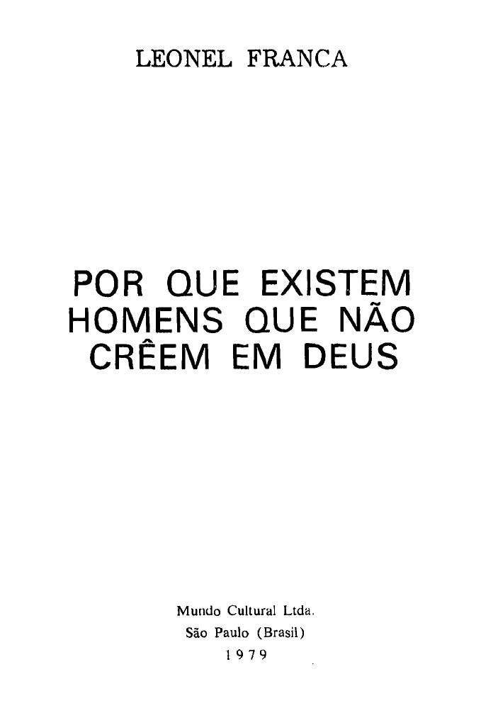 <p>LEONEL FRANCA</p><p>POR QUE EXISTEM</p><p>HOMENS QUE NÃO</p><p>CRÊEM EM DEUS</p><p>Mundo Cultural Ltda.</p><p>São Paulo (Brasil)</p><p>1 9 7 9</p><p>NOTA CATALOGRÂFICA</p><p>Franca, Leonel</p><p>1893-1948</p><p>Por que existem homens que não crêem em Deus — Título</p><p>original: A psicologia da fé — São Paulo, Brasil, Mundo Cultural,</p><p>1979 — 248 páginas.</p><p>1. Filosofia. 2. Problema do conhecimento. 3. Ateísmo.</p><p>4. Psicologia. 5. Inteligência e vontade. 6. Moral. 7. Orgulho</p><p>e sensualidade. 8. Religião. 9. Conversão.</p><p>Reedição da obra publicada</p><p>com o título original de:</p><p>•‘A PSICOLOGIA DA FE"</p><p>*</p><p>Devidamente autorizada por</p><p>SOCIEDADE BRASILEIRA DE EDUCAÇAO</p><p>e</p><p>LIVRARIA AGIR EDITORA</p><p>Direitos desta edição para</p><p>MUNDO CULTURAL LTDA.</p><p>Caixa Postal 9007</p><p>01000 — São Paulo — SP</p><p>(Brasil)</p><p>*</p><p>Diretor Editorial e Diretor Responsável:</p><p>JOSÉ G. M. ORSINI</p><p>ÍNDICE ANALÍTICO</p><p>Livro I</p><p>ANÁLISE DO ATO DE FÉ</p><p>Capítulo I — A definição da fé .................................. 13</p><p>Crer, na linguagem vulgar. No ensino da Igreja.</p><p>No Novo Testamento.</p><p>Capítulo II — A fé e a inteligência ..................... 21</p><p>Certeza e dúvida. Certeza de ciência e certeza de</p><p>fé. A fé na vida intelectual e social do homem.</p><p>Na sua vida religiosa. Comparação dos diferentes</p><p>estados do espírito em face da verdade.</p><p>Capítulo III — A fé e a vontade.................................. 35</p><p>Vontade e fé. Um ato intelectual pode ser livre.</p><p>Liberdade e certeza da fé. Intervenções livres da</p><p>vontade na preparação da fé. No próprio ato de</p><p>fé. Fé científica e fé de autoridade. Conclusões:</p><p>ir à verdade com tôda a alma; objeto integral da</p><p>Apologética.</p><p>Livro II</p><p>OBSTÁCULOS INTELECTUAIS</p><p>Capítulo I — Ignorância religiosa .............................</p><p>O fato. Verificação dos apologistas: Tertuliano,</p><p>Pascal e Ollé-Laprune. Confissão dos convertidos:</p><p>Santo Agostinho, La Moricière, Claudel. Demons</p><p>tração nos incrédulos: Voltaire, Kant, Spencer,</p><p>Sõderblom, Draper. Suas causas: causas ineren</p><p>tes à psicologia humana, agravadas pela vida mo</p><p>derna; laicização do ensino — seus efeitos no povo</p><p>e nas classes cultas; suas conseqüências funestas</p><p>para a cultura geral e para a vida religiosa. Neces</p><p>sidade da instrução religiosa — nos incrédulos,</p><p>questão de sinceridade; nos crentes, para a defesa</p><p>da fé e para a elevação da vitalidade interior.</p><p>Capítulo II — Vícios de m étodo..................................</p><p>Unilateralidade de espíritos e de métodos; Spencer.</p><p>Preconceito: noção, origem e duração dos precon</p><p>ceitos. O preconceito racionalista; Renan. Evolu</p><p>ção do racionalismo e persistência do seu precon</p><p>ceito fundamental, na interpretação do Evangelho;</p><p>Reimarus, Voltaire, Strauss e Renan. Conclusão.</p><p>63</p><p>105</p><p>Livro III</p><p>OBSTÁCULOS MORAIS</p><p>Capítulo I — O orgulho .................................................</p><p>O fato — incrédulos orgulhosos: Berthelot, Re</p><p>nan, Taine, Comte, Voltaire, Kant. Explicação do</p><p>fato: análise do orgulho. Antítese entre orgulho</p><p>e religião. Conseqüências: o orgulho destrói a sin</p><p>ceridade da investigação e a docilidade. Obstá</p><p>culos particulares que o catolicismo opõe ao orgu</p><p>lho: o dogma; a igualdade cristã. Conclusão: de</p><p>cadência moral dos orgulhosos; Berthelot, Comte,</p><p>R enan .</p><p>Capitulo II — A sensualidade......................................</p><p>O fato — a desordem da sensualidade; sensualida</p><p>de, crise e perda da fé. Confissão de F. Coppée;</p><p>Voltaire; Sainte-Beuve. Explicação do fato — con</p><p>seqüências da sensualidade: no organismo; no co</p><p>ração; na inteligência. Pureza de vida e conquista</p><p>da verdade: testemunho dos filósofos antigos; dos</p><p>Padres e Doutores cristãos; dos filósofos modernos.</p><p>Razão psicológica. O caso particular da verdade</p><p>religiosa e sobrenatural. Questão de lógica; de</p><p>amor sincero à verdade; de indispensável experiên</p><p>cia: conhecimento católico, abstrato e prático; de</p><p>assimilação entre o sujeito e o objeto.</p><p>dmkbe</p><p>Realce</p><p>CONCLUSÃO</p><p>A conversão.......................................................................</p><p>Várias espécies. Drama interior: a ação de Deus.</p><p>A colaboração da alma — psicologia da conversão:</p><p>1.° ato) A alma inquieta: Santo Agostinho,</p><p>Foucauld, Psichari, Maria Favre, Gratry, Retté;</p><p>motivos.</p><p>2.° ato) A alma que busca — investigação inte</p><p>lectual: Newman, Brunetière etc.; luta da vonta</p><p>de: Santo Agostinho, Claudel, Newman, Manning,</p><p>3.° ato) A alma que encontra — confissão:</p><p>Foucauld, Nabuco, Bordeu; comunhão: Nabuco,</p><p>Ruville. Paz dos convertidos — primeiros cristãos;</p><p>convertidos modernos: De la Rive, Ruville, New</p><p>man, Manning, Foucauld, Schouvaloff, Maritain.</p><p>Conclusões.</p><p>LIVRO I</p><p>ANALISE DO ATO DE FÉ</p><p>CAPITULO I</p><p>DEFINIÇÃO DA FÉ</p><p>Não é possível discriminar as múltiplas influências que faci</p><p>litam ou dificultam o ato de fé, sem Ihe conhecer a natureza</p><p>do dinamismo interior. Simples, na aparência de sua unidade</p><p>vital, a atitude do crente revela-se aos olhos da análise psicolo-</p><p>gica de uma complexidade singular. Inteligência e vontade,</p><p>uma, aberta a todos os raios da verdade, outra, solicitada por</p><p>todas as atrações do bem, casam-se harmoniosamente no ato</p><p>superior de quem crê e, na sua crença, encontra a solução supre</p><p>ma do enigma das coisas e a