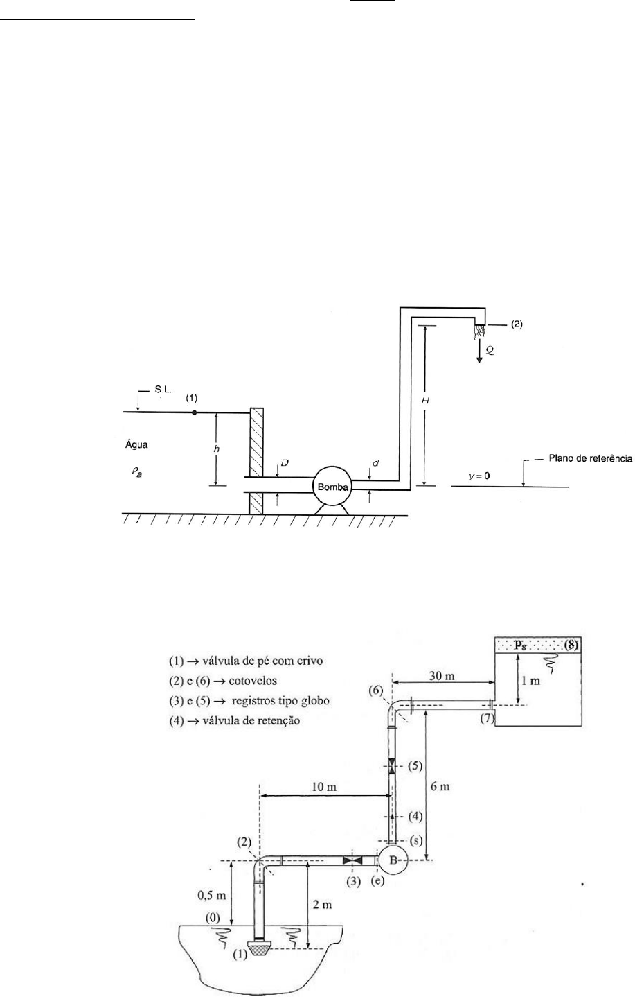<p>Universidade Federal Rural do Rio de Janeiro</p><p>IT395 Princípio das Operações Unitárias</p><p>DEQ/IT/UFRRJ</p><p>Professor: Cristiano</p><p>Lista 1</p><p>TRANSPORTE DE FLUIDO</p><p>1) Mostrar a equação de Bernoulli Modificada e definir o significado de cada termo desta equação.</p><p>2) Determinar a diferença de pressão entre a entrada e saída de uma tubulação de aço comercial com 1 km de</p><p>comprimento e diâmetro de 45 cm. O fluido é óleo (ρ = 840 kg/m</p><p>3</p><p>e ν = µ/ρ = 1,06.10</p><p>-5</p><p>m</p><p>2</p><p>/s) e vazão de 190</p><p>litros/segundos.</p><p>R: ΔP = 28.647 Pa</p><p>3) A figura abaixo mostra um esquema simplificado e fora de escala de uma bomba que retira água, através de um duto de</p><p>diâmetro interno D = 10 cm, de um reservatório de grandes dimensões com a superfície livre (S.L.) mantida em nível</p><p>constante. A água é descarregada, com vazão constante Q = 0,02 m</p><p>3</p><p>/s, a uma altura H = 38 m acima da bomba, através de</p><p>um duto de diâmetro interno d = 8 cm, em uma caixa-d´água aberta para a atmosfera. Considerando que entre as seções</p><p>(1) e (2) mostradas na Figura abaixo existe uma perda de carga ht = 2 m e que h = 3 m, determine a potência que a bomba</p><p>fornece ao escoamento para um rendimento de 70%.</p><p>R: Pot = 10.493 W</p><p>4) Sendo a pressão P8 mantida igual a 532 kPa constante, determinar a potência da bomba que possui 70% de rendimento</p><p>e a pressão na entrada dela se a vazão for de 40 L/s. Dados: Tubo de ferro galvanizado; Dsucção= 15 cm e Drecalque= 10 cm;</p><p>ν = 10</p><p>-6</p><p>m</p><p>2</p><p>/s; γágua=10</p><p>4</p><p>N/m</p><p>3</p><p>; Patm= 101 kPa.</p><p>R: Pot = 47,36 kW;</p><p>CARACTERIZAÇÃO DE PARTÍCULAS</p><p>1) Um profissional foi convocado para projetar um reator do tipo leito fluidizado, destinado ao craqueamento catalítico de</p><p>petróleo. Para tanto, a primeira informação a ser obtida sobre o projeto refere-se à caracterização do material</p><p>particulado. A classificação foi conduzida por meio de peneiramento de uma amostra de 100g de partículas, cujos</p><p>resultados percentuais de massa, retido em cada peneira, são mostrados abaixo.</p><p>a) Construa uma tabela que mostre as fracções ponderais das partículas xi, yi e zi;</p><p>b) Determine o gráfico da distribuição de tamanho acumulada;</p><p>c) Determine o diâmetro médio de Sauter.</p><p>Peneiras (mesh) Percentual em</p><p>massa retido</p><p>-65 +80 0</p><p>-80 +100 1,29</p><p>-100 +115 5,93</p><p>-115 +150 9,70</p><p>-150 +170 14,16</p><p>-170 +200 16,97</p><p>-200 +250 15,21</p><p>-250 +270 14,32</p><p>-270 +325 11,21</p><p>-325 +400 6,18</p><p>-400 fundo 5,03</p><p>R:</p><p>mesh d#(-) mm d#(+) mm d(med) mm massa retida (g) xi yi zi</p><p>-65 +80 0,21 0,177 0,194 0,00 0,000 1,000 0,000</p><p>-80 +100 0,177 0,149 0,163 1,29 0,013 0,987 0,013</p><p>-100 +115 0,149 0,125 0,137 5,93 0,059 0,928 0,072</p><p>-115 +150 0,125 0,105 0,115 9,70 0,097 0,831 0,169</p><p>-150 +170 0,105 0,088 0,097 14,16 0,142 0,689 0,311</p><p>-170 +200 0,088 0,074 0,081 16,97 0,170 0,520 0,481</p><p>-200 +250 0,074 0,063 0,069 15,21 0,152 0,367 0,633</p><p>-250 +270 0,063 0,053 0,058 14,32 0,143 0,224 0,776</p><p>-270 +325 0,053 0,044 0,049 11,21 0,112 0,112 0,888</p><p>-325 +400 0,044 0,037 0,041 6,18 0,062 0,050 0,950</p><p>-400 0,037 fundo 0,037 5,03 0,050 0,000 1,000</p><p>100,00 1,000</p><p>Dmed. Sauter = 0,0675</p><p>OBS: para calcular o diâmetro médio de Sauter utiliza-se o diâmetro médio da partícula!</p><p>2) Os resultados de uma análise granulométrica de quartzo estão representados na tabela abaixo. Determine graficamente</p><p>as distribuições de tamanho acumulativa, bem como as frações ponderais xi, yi e zi. Determine o diâmetro médio de</p><p>Sauter.</p><p>Peneiras (mesh) Massa retida (g)</p><p>4 0</p><p>6 6,68</p><p>8 9,096</p><p>10 14,992</p><p>14 23,408</p><p>20 8,976</p><p>28 4,88</p><p>35 3,424</p><p>48 2,328</p><p>65 1,882</p><p>100 1,712</p><p>150 1,422</p><p>325 1,2</p><p>fundo 0</p><p>0,0</p><p>0,2</p><p>0,4</p><p>0,6</p><p>0,8</p><p>1,0</p><p>0 0,1 0,2 0,3</p><p>y</p><p>d (mm)</p><p>Distribuição acumulada</p>
