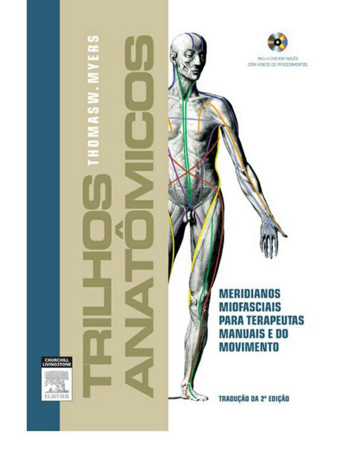 <p>TRILHOS ANATÔMICOS</p><p>MERIDIANOS MIOFASCIAIS PARA TERAPEUTAS</p><p>MANUAIS E DO MOVIMENTO</p><p>2ª EDIÇÃO</p><p>THOMAS W. MYERS</p><p>Licensed Massage Therapist (LMT), Nationally Certified in Therapeutic, Massage</p><p>and Bodywork (NCTMB), Certified Rolfer® (ARP)</p><p>Practitioner and Lecturer, Director, Kinesis Incorporated, Maine, USA</p><p>CHURCHILL LIVINGSTONE</p><p>2</p><p>Front Matter</p><p>TRILHOS ANATÔMICOS</p><p>MERIDIANOS MIOFASCIAIS PARA TERAPEUTAS MANUAIS E DO MOVIMENTO</p><p>2ª EDIÇÃO</p><p>THOMAS W. MYERS</p><p>Licensed Massage Therapist (LMT)</p><p>Nationally Certified in Therapeutic</p><p>Massage and Bodywork (NCTMB)</p><p>Certified Rolfer® (ARP)</p><p>Practitioner and Lecturer</p><p>Director, Kinesis Incorporated</p><p>Maine, USA</p><p>Ilustrações coloridas por:</p><p>Debbie Maizels</p><p>Philip Wilson</p><p>Graeme Chambers</p><p>3</p><p>Copyright</p><p>Do original: Anatomy Trains, second edition</p><p>© 2009, 2001 por Elsevier Limited</p><p>Tradução autorizada do idioma inglês da edição publicada por Elsevier Limited</p><p>ISBN: 978-0-4431-0283-7</p><p>© 2010 Elsevier Editora Ltda.</p><p>Todos os direitos reservados e protegidos pela Lei 9.610 de 19/02/1998.</p><p>Nenhuma parte deste livro, sem autorização prévia por escrito da editora, poderá</p><p>ser reproduzida ou transmitida sejam quais forem os meios empregados: eletrônicos,</p><p>mecânicos, fotográficos, gravação ou quaisquer outros.</p><p>ISBN: 978-85-352-3788-7</p><p>Capa</p><p>Folio Design Ltda.</p><p>Editoração Eletrônica</p><p>Arte e Ideia Identidade Visual Ltda.</p><p>Elsevier Editora Ltda.</p><p>Conhecimento sem Fronteiras</p><p>Rua Sete de Setembro, n° 111 – 16° andar</p><p>20050-006 – Centro – Rio de Janeiro – RJ</p><p>Rua Quintana, n° 753 – 8° andar</p><p>04569-011 – Brooklin – São Paulo – SP</p><p>Serviço de Atendimento ao Cliente</p><p>0800 026 53 40</p><p>sac@elsevier.com.br</p><p>Preencha a ficha de cadastro no final deste livro e receba gratuitamente</p><p>informações sobre os lançamentos e promoções da Elsevier.</p><p>4</p><p>Consulte também nosso catálogo completo, os últimos lançamentos e os serviços</p><p>exclusivos no site www.elsevier.com.br.</p><p>NOTA</p><p>O conhecimento médico está em permanente mudança. Os cuidados normais de segurança devem</p><p>ser seguidos, mas, como as novas pesquisas e a experiência clínica ampliam nosso conhecimento,</p><p>alterações no tratamento e terapia à base de fármacos podem ser necessárias ou apropriadas. Os</p><p>leitores são aconselhados a checar informações mais atuais dos produtos, fornecidas pelos fabricantes</p><p>de cada fármaco a ser administrado, para verificar a dose recomendada, o método e a duração da</p><p>administração e as contraindicações. É responsabilidade do médico, com base na experiência e contando</p><p>com o conhecimento do paciente, determinar as dosagens e o melhor tratamento para cada um</p><p>individualmente. Nem o editor nem o autor assumem qualquer responsabilidade por eventual dano ou</p><p>perda a pessoas ou a propriedade originada por esta publicação.</p><p>O Editor</p><p>CIP-BRASIL. CATALOGAÇÃO-NA-FONTE</p><p>SINDICATO NACIONAL DOS EDITORES DE LIVROS, RJ</p><p>M995t</p><p>Myers, Thomas W.</p><p>Trilhos anatômicos / Thomas W. Myers ; [tradução Marcelo Cairrão Araújo Rodrigues… et al.]. -</p><p>Rio de Janeiro : Elsevier, 2010.</p><p>il.</p><p>Tradução de: Anatomy trains, 2nd ed.</p><p>Inclui bibliografia e índice</p><p>ISBN 978-85-352-3788-7</p><p>1. Fáscia. 2. Anatomia cirúrgica e topográfica. 3. Cinesiologia. I. Título.</p><p>10-1006.</p><p>CDD: 612.75</p><p>CDU: 611.74</p><p>05.03.10</p><p>16.03.10</p><p>017983</p><p>5</p><p>http://www.elsevier.com.br</p><p>Revisão Científica e Tradução</p><p>Supervisão da Revisão Científica</p><p>Victor Hugo do Vale Bastos</p><p>Professor Adjunto do Departamento de Fisioterapia da Universidade Federal dos Vales</p><p>do Jequitinhonha e Mucuri (UFVJM), Diamantina, MG</p><p>Doutor em Saúde Mental pelo Instituto de Psiquiatria da Universidade Federal do Rio</p><p>de Janeiro (IPUB/UFRJ)</p><p>Mestre em Motricidade Humana pela Universidade Castelo Branco (UCB), RJ</p><p>Especialista em Neurofisiologia pelo Instituto Brasileiro de Medicina de Reabilitação</p><p>(IBMR), RJ</p><p>Revisão Científica</p><p>Dionis de Castro Dutra Machado (Caps. 2 a 4 e Termos dos</p><p>Trilhos Anatômicos)</p><p>Professora Substituta do Departamento de Fisioterapia da UFVJM</p><p>Doutoranda em Saúde Mental pelo IPUB/UFRJ</p><p>Mestre em Saúde Mental pelo IPUB/UFRJ</p><p>Especialista em Anatomia e Biomecânica Humana pela UCB, RJ</p><p>Especialista em Fisioterapia em Traumato-ortopedia pela UCB, RJ</p><p>Juliana Bittencourt Marques (Caps. 8 e 9, Introdução e</p><p>Apêndices 1 a 3)</p><p>Mestranda em Saúde Mental pelo Laboratório de Mapeamento Cerebral e Integração</p><p>6</p><p>Sensório Motora do IPUB/UFRJ</p><p>Fisioterapeuta pelo Centro Universitário Serra dos Órgãos (UNIFESO), Teresópolis, RJ</p><p>Formação em Reeducação Postural Global pelo Método RPG/RPM</p><p>Julio Guilherme Silva (Cap. 11)</p><p>Doutor em Saúde Mental pelo IPUB/UFRJ</p><p>Professor Adjunto do Departamento de Anatomia da Universidade Gama Filho (UGF),</p><p>RJ</p><p>Professor do Mestrado em Ciências de Reabilitação do Centro Universitário Augusto</p><p>Motta (UNISUAM), RJ</p><p>Coordenador-técnico dos Cursos de Pós-graduação em Fisioterapia Neurofuncional e</p><p>Fisioterapia Traumato-ortopédica da UGF, RJ</p><p>Luiz Claudio Miana de Faria Furtado (Caps. 7 e 10)</p><p>Fisioterapeuta pela UGF, RJ</p><p>Mestre em Ciência da Motricidade Humana pela UCB, RJ</p><p>Osteopata D.O. pela Escola Brasileira de Osteopatia (EBOM), MG</p><p>Professor da EBOM, MG</p><p>Formação em Terapia Manual</p><p>Professor do Curso de Pós-graduação em Ortopedia e Traumatologia da Universidade</p><p>Veiga de Almei
