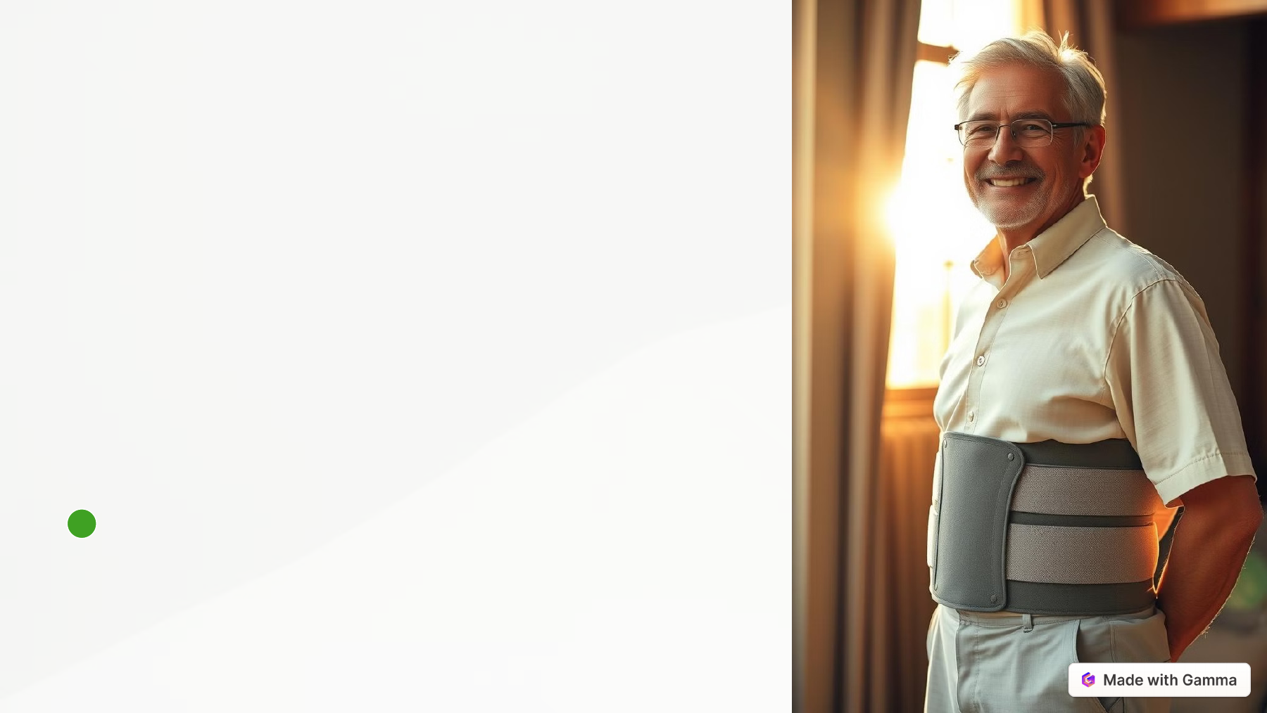 <p>Introdução à Cinta</p><p>Lombar</p><p>A cinta lombar é um acessório que pode ajudar a reduzir a dor nas costas e</p><p>melhorar a postura. É um dispositivo de suporte que pode ser usado por atletas,</p><p>trabalhadores que levantam pesos pesados, ou pessoas que sofrem de dores nas</p><p>costas.</p><p>by VENICIO SANTANAVS</p><p>https://gamma.app/?utm_source=made-with-gamma</p><p>Anatomia da Coluna Vertebral</p><p>A Coluna Vertebral</p><p>A coluna vertebral é composta por 33</p><p>vértebras, divididas em 5 regiões:</p><p>cervical, torácica, lombar, sacral e</p><p>coccígea.</p><p>As vértebras lombares são as maiores e</p><p>mais resistentes, suportando o peso do</p><p>corpo.</p><p>Discos Intervertebrais</p><p>Os discos intervertebrais atuam como</p><p>amortecedores entre as vértebras,</p><p>absorvendo impactos e permitindo o</p><p>movimento da coluna.</p><p>A degeneração dos discos pode levar à</p><p>dor e à perda de mobilidade.</p><p>Músculos do Tronco</p><p>Os músculos do tronco, como os</p><p>abdominais e os paravertebrais,</p><p>sustentam a coluna vertebral e permitem</p><p>movimentos.</p><p>Exercícios regulares fortalecem esses</p><p>músculos, prevenindo dores nas costas.</p><p>https://gamma.app/?utm_source=made-with-gamma</p><p>Função da Cinta Lombar</p><p>1 Suporte Muscular</p><p>A cinta lombar fornece suporte</p><p>adicional aos músculos da</p><p>região lombar, aliviando a</p><p>tensão e o estresse.</p><p>2 Estabilidade da Coluna</p><p>Ela ajuda a estabilizar a coluna</p><p>vertebral, limitando o</p><p>movimento excessivo e</p><p>prevenindo lesões.</p><p>3 Alívio da Dor</p><p>A cinta pode reduzir a dor nas</p><p>costas, especialmente em</p><p>casos de hérnia de disco,</p><p>espondilolistese ou lombalgia.</p><p>4 Postura Correta</p><p>A cinta pode auxiliar na</p><p>manutenção da postura</p><p>correta, evitando desvios e</p><p>desalinhamentos da coluna.</p><p>https://gamma.app/?utm_source=made-with-gamma</p><p>Benefícios do Uso da Cinta</p><p>Lombar</p><p>1</p><p>Prevenção de Lesões</p><p>A cinta pode ajudar a prevenir lesões na região lombar,</p><p>especialmente em atividades que exigem esforço físico.</p><p>2</p><p>Redução da Dor</p><p>A cinta pode aliviar a dor nas costas, tanto em casos agudos</p><p>quanto crônicos.</p><p>3</p><p>Melhora da Mobilidade</p><p>Com o alívio da dor, a cinta pode contribuir para a melhora da</p><p>mobilidade e da funcionalidade da coluna.</p><p>4</p><p>Aumento da Força Muscular</p><p>Ao auxiliar na estabilidade da coluna, a cinta permite que os</p><p>músculos se recuperem e se fortaleçam.</p><p>https://gamma.app/?utm_source=made-with-gamma</p><p>Tipos de Cinta Lombar</p><p>Tipo Características Aplicações</p><p>Cinta Lombar Simples Confeccionada em tecido elástico com</p><p>ajuste de velcro. Oferece compressão e</p><p>suporte.</p><p>Dor nas costas leve, prevenção de lesões</p><p>em atividades físicas.</p><p>Cinta Lombar Ortopédica Com estrutura rígida de metal ou</p><p>plástico, com ajuste e suporte</p><p>específicos. Pode ter faixas adicionais.</p><p>Tratamento de hérnia de disco,</p><p>espondilolistese, lesões graves.</p><p>Cinta Lombar com Suporte Abdominal Combina o suporte lombar com</p><p>compressão abdominal, auxiliando na</p><p>postura e na estabilidade do tronco.</p><p>Pessoas com dor lombar associada a</p><p>problemas abdominais, como hérnia</p><p>inguinal.</p><p>https://gamma.app/?utm_source=made-with-gamma</p><p>Dicas para Usar a Cinta Lombar Corretamente</p><p>Ajuste Correto</p><p>Ajuste a cinta de forma que ela</p><p>fique firme, mas não apertada</p><p>demais, permitindo que você</p><p>respire confortavelmente.</p><p>Posição Adequada</p><p>Posicione a cinta na região</p><p>lombar, cobrindo a parte</p><p>inferior das costas, e certifique-</p><p>se que ela está nivelada.</p><p>Uso Regular</p><p>Use a cinta apenas quando</p><p>necessário e siga as</p><p>recomendações do seu médico</p><p>ou fisioterapeuta.</p><p>Cuidados com a Higiene</p><p>Lave a cinta regularmente de</p><p>acordo com as instruções do</p><p>fabricante para evitar o</p><p>acúmulo de suor e bactérias.</p><p>https://gamma.app/?utm_source=made-with-gamma</p><p>Cuidados ao Usar a Cinta Lombar</p><p>Tempo de Uso</p><p>Evite usar a cinta por longos períodos, pois o uso prolongado</p><p>pode enfraquecer os músculos da região lombar.</p><p>Exercícios</p><p>A cinta não substitui a necessidade de exercícios físicos para</p><p>fortalecer os músculos da região lombar.</p><p>Consulta Médica</p><p>Consulte um médico ou fisioterapeuta para determinar a</p><p>necessidade e o tipo de cinta lombar mais adequado para você.</p><p>Monitoramento</p><p>Observe atentamente qualquer sinal de irritação da pele, dor</p><p>intensa ou outras reações adversas.</p><p>https://gamma.app/?utm_source=made-with-gamma</p><p>Conclusão e Recomendações</p><p>A cinta lombar é um recurso auxiliar que pode ser útil no tratamento de dores</p><p>nas costas e na prevenção de lesões.</p><p>No entanto, é importante lembrar que a cinta não é uma solução definitiva para</p><p>problemas de saúde. Combine o uso da cinta com exercícios físicos, postura</p><p>adequada e hábitos saudáveis para manter a saúde da coluna vertebral.</p><p>https://gamma.app/?utm_source=made-with-gamma</p>