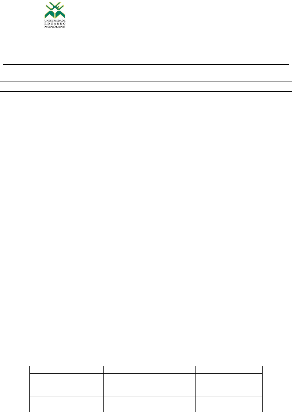 <p>1</p><p>UNIVERSIDADE EDUARDO MONDLANE</p><p>FACULDADE DE CIÊNCIAS</p><p>DEPARTAMENTO DE CIÊNCIAS BIOLÓGICAS</p><p>Teste 1</p><p>Data: 12-04-2019. Disciplina: Bioestatística I Duração: 100 min</p><p>Leia atentamente o enunciado do teste e responda de forma clara e concisa, evitando borrões e rasuras.</p><p>1. Para cada um dos estudos abaixo, classifique a variável de interesse em qualitativa ou quantitativa</p><p>(discreta/continua) e diga se o estudo é do tipo experimental ou observacional: (3×1.5 V)</p><p>a) Pesquisadores florestais queriam comparar as taxas de crescimento de árvores que crescem em alta</p><p>altitude e as árvores que crescem em baixa altitude. Eles mediram a taxa de crescimento usando o espaço</p><p>entre anéis de árvores em um conjunto de árvores selecionadas de uma floresta natural.</p><p>b) Pesquisadores alocaram aleatoriamente pacientes com diabetes a dois grupos. No primeiro grupo, os</p><p>pacientes receberam um novo medicamento, enquanto que no outro grupo os pacientes receberam o</p><p>tratamento padrão sem o novo medicamento. Os pesquisadores compararam a taxa de insulina libertada</p><p>nos dois grupos;</p><p>c) Psicólogos testaram se a frequência do uso de drogas ilegais difere entre pessoas que sofrem de</p><p>esquizofrenia e aquelas que não têm a doença. Eles mediram o uso de drogas em um grupo de pacientes</p><p>com esquizofrenia e compararam-no com um grupo de pessoas de igual tamanho escolhido</p><p>aleatoriamente.</p><p>2. Nas afirmações abaixo apresentadas, diga quais são verdadeiras (V) e quais as falsas (F): (6×1.0 V)</p><p>a) A média é uma medida de tendência central porque sempre se localiza no centro duma distribuição e é</p><p>influenciada por valores extremos;</p><p>b) Inferência estatística é uma metodologia para tirar conclusões válidas duma amostra a partir dos dados</p><p>da população;</p><p>c) Quanto menor for o desvio-padrão de um conjunto de dados, menor é a sua variabilidade;</p><p>d) Uma variável é discreta quando pode tomar qualquer valor num certo intervalo;</p><p>e) Gráficos de barras e histogramas são ferramentas gráficas recomendadas para exibir distribuições de</p><p>frequência de variáveis categóricas e numéricas, respectivamente;</p><p>f) Em estudos experimentais, o pesquisador é incapaz de alocar os participantes aleatoriamente à diferentes</p><p>tratamentos ou grupos.</p><p>3. Considere a Tabela 1 abaixo mostrando o número de Peixes-luas de acordo com a quantidade de pigmentação</p><p>preta (que é expresso por classes numericamente ordenadas):</p><p>Tabela 1: Distribuição de peixes-luas de acordo com a quantidade de pigmentação preta</p><p>Classe de Pigmentação Quantidade de Pigmentação Número de peixes</p><p>0 Sem pigmentação preta 13</p><p>1 Ligeiramente salpicado 68</p><p>2 Moderadamente salpicado 44</p><p>3 Fortemente salpicado 21</p><p>4 Pigmentação preta sólida 8</p><p>2</p><p>a) Identifica o tipo de tabela apresentada e classifique a variável em questão. (0.5 V)</p><p>b) Construa um gráfico adequado tendo em conta o tipo de variável. (1.0 V)</p><p>4. Considere a Tabela 2 abaixo mostrando os pesos de folhas de tabaco (em gramas):</p><p>Tabela 2: Peso de folhas de tabaco (em gramas).</p><p>Peso (gramas) Frequência</p><p>1.85 ͱ 1.95 2</p><p>1.95 ͱ 2.05 1</p><p>2.05 ͱ 2.15 2</p><p>2.15 ͱ 2.25 3</p><p>2.25 ͱ 2.35 5</p><p>2.35 ͱ 2.45 6</p><p>2.45 ͱ 2.55 4</p><p>2.55 ͱ 2.65 3</p><p>2.65 ͱ 2.75 1</p><p>a) Calcule a média, mediana e moda da distribuição do peso de folhas de tabaco. (3.0 V)</p><p>b) Calcule e interprete o desvio-padrão da amostra. (1.0 V)</p><p>c) Classifique a distribuição quanto a assimetria. (0.5 V)</p><p>5. A Arthemisina e o Fransidar são duas linhas de tratamento de malaria usadas em Moçambique. Abaixo são os</p><p>registos do tempo de cura da doença de 10 pacientes, em cada linha de tratamento, em dias.</p><p>Arthemisina 28 29 32 37 33 25 29 32 41 44</p><p>Fransidar 29 31 33 32 34 30 31 32 35 33</p><p>a) Obtenha o tempo de cura mediano e médio para cada linha de tratamento. (0.5 V)</p><p>b) Qual o tempo mínimo dos 25% com tempo de cura mais lento, em cada linha de tratamento? (1.0 V)</p><p>c) Se tivesses que decidir, que linha de tratamento escolherias? Justifique. (2.0 V)</p><p>BOM TRABALHO!!!!</p><p>3</p><p>Formulário</p><p>;</p>