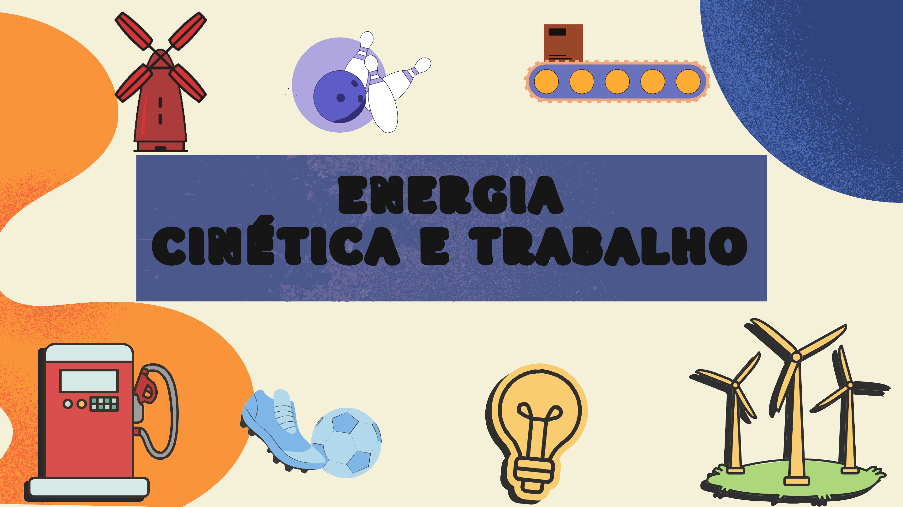 <p>E N E R G I A</p><p>C I N É T I C A E T R A B A L H O</p><p>A L U N O S :</p><p>Mariana Rosa de Carvalho Barbosa Amanda Stefany Neto Lopes</p><p>Ana Clara Ventura Jaques Amanda Luísa Paes Pinto Pablo Diogo de Oliveira</p><p>O que é</p><p>ENERGIA?</p><p>T Ó P I C O S :</p><p>01</p><p>03</p><p>O que é ENERGIA CINÉTICA?</p><p>02</p><p>O que é</p><p>TRABALHO?</p><p>Não há uma definição exata para energia, mas podemos dizer que ela está associada à capacidade de produção de ação e/ou movimento e manifesta-se de muitas formas diferentes, como movimento de corpos, calor, eletricidade, etc.</p><p>Segundo o Princípio de Lavoisier, a energia não pode surgir do nada e nem pode ser destruída. A única possibilidade que existe é a transformação de um tipo de energia em outro, como a energia da queda d´água nas hidrelétricas que é convertida em energia elétrica.</p><p>O QUE É ENERGIA?</p><p>O QUE É ENERGIA?</p><p>"O conhecimento sobre a energia é muito vasto e engloba diversas áreas do conhecimento. Essa interdisciplinaridade pode ser percebida quando analisamos a ação simples de agirmos contra a gravidade.</p><p>Quando agachamos e levantamos uma caixa do chão, estamos transformando energia. Essa energia, que foi transferida para a caixa em forma de energia potencial gravitacional, foi exercida por uma força externa, gerada a partir da contração de um grande número de fibras musculares. Essa contração ocorre quando há passagem de corrente elétrica, que é originada em células especializadas. Essas células, por sua vez, só conseguem produzir corrente quando obtêm energia das ligações químicas presentes nos alimentos, que, quando rompidas, liberam calorias.</p><p>Diante da complexidade da energia, nos limitaremos ao que é energia para a Física: Energia é uma grandeza física escalar, cuja unidade de medida, de acordo com o SI, é o joule. A energia é definida a partir do trabalho. Quando exercemos trabalho sobre um corpo, esse corpo está trocando energia conosco. O trabalho é, portanto, a transformação ou transferência da energia que ocorre a um corpo que é submetido a aplicação de uma força externa."</p><p>Trabalho é uma grandeza física relacionada a transferência de energia devido a atuação de uma força. Realizamos um trabalho quando aplicamos uma força em um corpo e este sofre um deslocamento. Apesar da força e do deslocamento serem duas grandezas vetoriais, o trabalho é uma grandeza escalar, ou seja, fica totalmente definida com um valor numérico e uma unidade.</p><p>A unidade de medida do trabalho no sistema internacional de unidades é o N.m. Essa unidade recebe o nome de joule (J).</p><p>Este nome é em homenagem ao físico inglês James</p><p>Prescott Joule (1818-1889), que realizou importantes estudos no estabelecimento da relação entre trabalho mecânico e calor.</p><p>O QUE É TRABALHO?</p><p>O trabalho é caracterizado como a transferência de energia mediante a aplicação de uma força. A seguir, mostramos a fórmula usada para calcular essa grandeza, confira:</p><p>τ – Trabalho (J) F – Força (N)</p><p>d – Distância percorrida (m)</p><p>θ – Ângulo entre força e distância (º) Ao realizarmos trabalho sobre um corpo, fazemos com que esse corpo “adquira” ou “perca” energia cinética, dessa forma, dizemos que o trabalho realizado sobre um corpo é equivalente à variação de energia cinética:</p><p>O QUE É TRABALHO?</p><p>ΔEC – Variação de energia cinética (J) ECF – Energia cinética final (J)</p><p>ECi – Energia cinética inicial (J)</p><p>A partir da relação mostrada, conhecida como teorema do trabalho e energia cinética, podemos perceber que, caso a energia cinética de um corpo permaneça constante, nenhum trabalho está sendo realizado sobre ele, em outras palavras, esse corpo não recebe nem transfere energia de outros corpos.</p><p>Mas afinal o que é Energia Cinética?</p><p>É a energia associada ao estado de movimento de um objeto, quanto mais depressa o objeto se move, maior é a energia cinética. Quando um objeto está em repouso a energia cinética é NULA.</p><p>O QUE É ENERGIA CINÉTICA?</p><p>K=1/2MV²</p><p>Texto do seu parágrafo</p><p>K=Energia Cinética (J) M=Massa (kg) V=Velocidade (m/s)</p><p>De acordo com o Sistema Internacional de Unidades, a unidade de medida da energia cinética é dada em Joule:</p><p>1 Joule= 1J = 1 kg*m²/s²</p><p>De acordo com a fórmula, caso um corpo se encontre em repouso, a energia cinética a ele associada é nula. Além disso, a energia cinética depende da velocidade desse corpo ao quadrado, sendo assim, ao duplicarmos a velocidade de um corpo, sua energia cinética aumenta quatro vezes, ao triplicá-la, a energia cinética desse corpo fica nove vezes maior.</p><p>energia cinética em função da</p><p>O gráfico velocidade.</p><p>qualitativo mostra a variação da</p><p>Texto do seu parágrafo</p><p>image9.png</p><p>image10.png</p><p>image11.png</p><p>image12.png</p><p>image13.png</p><p>image14.png</p><p>image15.png</p><p>image16.png</p><p>image17.png</p><p>image18.png</p><p>image1.png</p><p>image19.png</p><p>image20.png</p><p>image21.png</p><p>image22.png</p><p>image23.png</p><p>image24.png</p><p>image25.png</p><p>image26.png</p><p>image27.png</p><p>image28.png</p><p>image2.png</p><p>image29.png</p><p>image30.png</p><p>image31.png</p><p>image32.png</p><p>image33.png</p><p>image34.png</p><p>image35.png</p><p>image36.png</p><p>image37.png</p><p>image38.png</p><p>image3.png</p><p>image39.png</p><p>image4.png</p><p>image5.png</p><p>image6.png</p><p>image7.png</p><p>image8.png</p><p>image40.png</p><p>image41.png</p><p>image42.png</p><p>image43.png</p><p>image44.png</p><p>image45.png</p><p>image46.png</p><p>image47.png</p><p>image48.png</p><p>image49.png</p><p>image50.jpg</p><p>image51.jpg</p><p>image52.png</p><p>image53.png</p><p>image54.jpg</p>