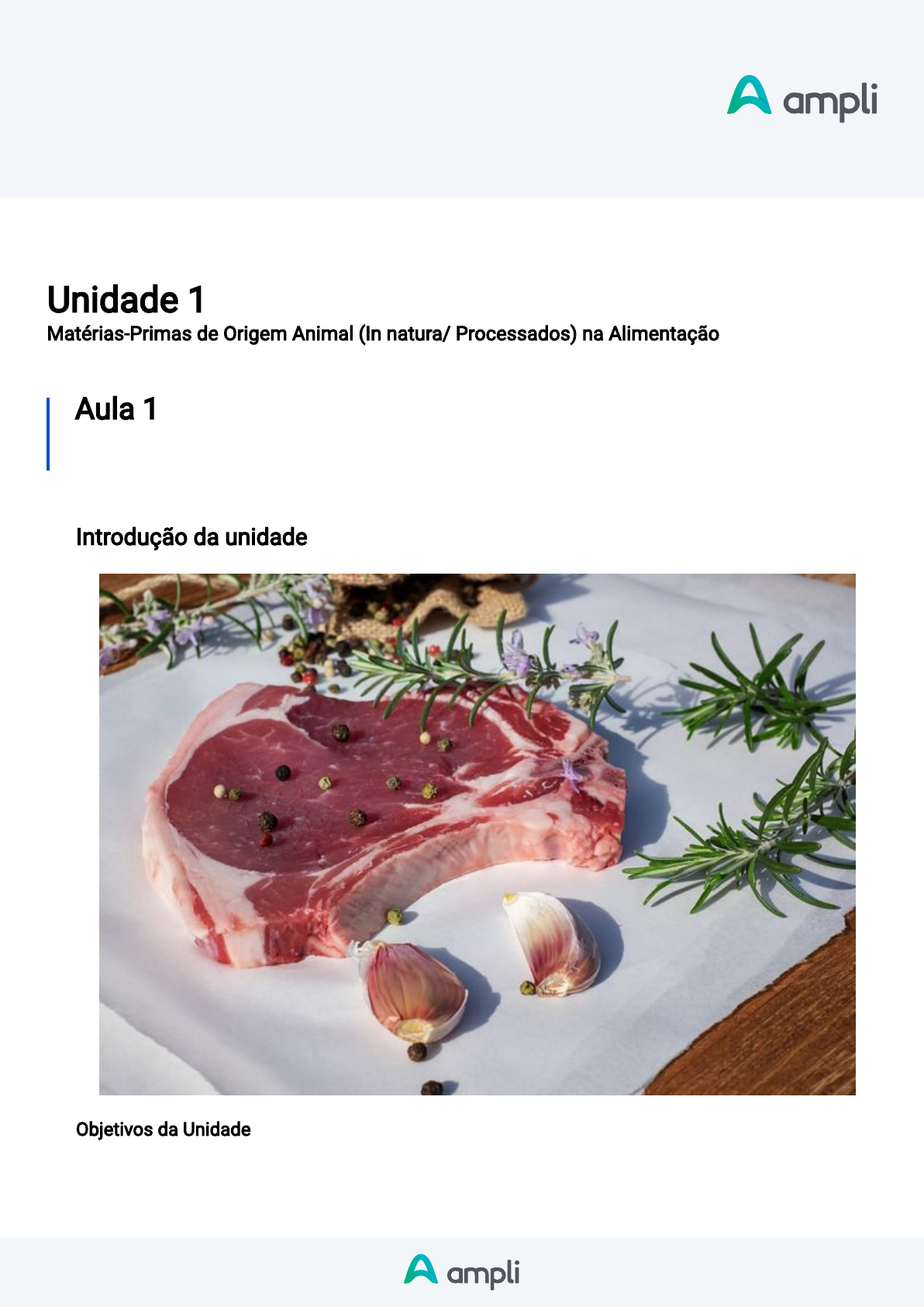 <p>Disciplina</p><p>Matérias-Primas de Origem</p><p>Animal e Vegetal</p><p>Unidade 1</p><p>Matérias-Primas de Origem Animal (In natura/ Processados) na Alimentação</p><p>Aula 1</p><p>Produtos Cárneos: Aves e seus Derivados (ovos) e Produtos Lácteos: Análise Nutricional,</p><p>Seleção, Preparo e Técnicas de Conservação na Cadeia Produtiva de Alimentos</p><p>Introdução da unidade</p><p>Objetivos da Unidade</p><p>Ao �nal desta Unidade, você será capaz de:</p><p>Disciplina</p><p>Matérias-Primas de Origem</p><p>Animal e Vegetal</p><p>discutir sobre a qualidade e importância das carnes de aves, caprina, ovina exóticas, suína,</p><p>bovina;</p><p>identi�car os seus derivados como o leite e seus produtos, bem como os ovos.</p><p>criar uma cartilha informativa sobre carnes e embutidos, destacando a qualidade</p><p>nutricional e características de consumo desses produtos.</p><p>Esta unidade destaca as principais características dos alimentos de origem animal. As carnes de</p><p>diferentes espécies são ingredientes de destaque nos menus que apresentam particularidades</p><p>como tipo de corte, composição, características de qualidade e métodos de conservação.</p><p>Estudaremos nesta unidade os produtos cárneos das aves, caprinos, suínos, ovinos, bovinos e os</p><p>seus derivados como o leite e seus produtos, bem como os ovos.</p><p>A competência técnica desta unidade é conhecer sobre a qualidade e importância das carnes de</p><p>aves, caprina, ovina exóticas, suína, bovina e dos produtos lácteos e seus derivados. O</p><p>fechamento desta unidade será por meio da elaboração de uma cartilha informativa sobre carnes</p><p>e embutidos, destacando a qualidade nutricional e características de consumo desses produtos.</p><p>Para facilitar a compreensão e o aprendizado das situações do dia a dia de trabalho, vamos</p><p>acompanhar a rotina do chef Jean. Ele completou três meses de trabalho no Resort Eco Village, e</p><p>já estava em total sintonia com a sua equipe e em dia com as regras sanitárias e Boas Práticas</p><p>de Fabricação (BPF). Infelizmente, a calmaria não durou muito, um surto de dengue fora de</p><p>época na região atingiu oito de seus funcionários: dois cozinheiros líderes, quatro auxiliares de</p><p>cozinha e dois auxiliares de limpeza. Para contornar a situação, ele promoveu temporariamente a</p><p>auxiliar de cozinha Fernanda para assumir as funções de um dos cozinheiros líderes e o Resort</p><p>contratou três auxiliares temporários, dois para a cozinha e outro para a limpeza. Os funcionários</p><p>�caram sobrecarregados porque uma pessoa fazia muita falta na equipe.</p><p>Fernanda �cou feliz com a promoção temporária e avistou uma oportunidade para �car como</p><p>de�nitiva. O problema é que ela ainda se confundia com os diferentes cortes de carnes e</p><p>respectivos tipos de preparação. Márcio, o auxiliar de cozinha temporário, foi se queixar com o</p><p>chef Jean de que os queijos recebidos estavam fora dos padrões de qualidade e com cheiro</p><p>muito forte de mofo. O chef constatou que deveria rever o treinamento de seus funcionários,</p><p>como forma de reciclar os conhecimentos adquiridos e também para integrar os novatos</p><p>substitutos. A nutricionista, que prestava um serviço de consultoria, deixou descrito no relatório</p><p>que os derivados lácteos estavam sendo armazenados de forma inadequada, junto com as</p><p>carnes. Com essas informações, o que poderia ser feito para sanar as falhas encontradas?</p><p>Como reconhecer as características de qualidade dos alimentos de origem animal? Estudaremos</p><p>nesta unidade os assuntos necessários para responder essas duas perguntas e outras</p><p>relacionadas ao controle higiênico sanitário. A aula 1 compreende o estudo das aves e seus</p><p>derivados, das carnes exóticas, caprina e ovina. A aula 2 abrange a composição, a qualidade e os</p><p>produtos das carnes bovina e suína. Para encerrar o conteúdo, a aula 3 traz as informações sobre</p><p>o leite e seus derivados, desde os aspectos de qualidade, manipulação e aplicações na</p><p>gastronomia.</p><p>Aproveite o conteúdo, leia com atenção as explicações e não deixe de consultar as referências</p><p>de cada aula para complementar seu aprendizado.</p><p>Disciplina</p><p>Matérias-Primas de Origem</p><p>Animal e Vegetal</p><p>Introdução da aula</p><p>Qual é o foco da aula?</p><p>Nesta aula, você aprenderá sobre as aves e seus derivados, das carnes exóticas, caprina e ovina.</p><p>Objetivos gerais de aprendizagem</p><p>Ao �nal desta aula, você será capaz de:</p><p>discutir sobre as aves mais consumidas, sua composição nutricional, seleção e seu</p><p>preparo;</p><p>identi�car qual seria a temperatura segura para o descongelamento;</p><p>analisar o conceito das carnes caprina, ovina e exótica, sua composição nutricional,</p><p>seleção e preparo.</p><p>Situação-problema</p><p>Estudaremos nesta aula os aspectos de qualidade das carnes das aves, dos ovinos, dos caprinos</p><p>e também das carnes exóticas. Agora que você já sabe sobre as Boas Práticas de Fabricação e a</p><p>seleção, o recebimento e o armazenamento da matéria-prima, chegou a hora de aprender mais</p><p>detalhes a respeito da qualidade das carnes. Elas ocupam posição de destaque no menu e, a</p><p>partir delas, os demais ingredientes são selecionados a �m de oferecer uma combinação</p><p>harmoniosa.</p><p>Para ajudar no aprendizado, seguimos acompanhando o dia a dia do chef Jean no resort. O</p><p>cardápio do Eco Village era composto por cinco diferentes pratos principais, à base de carnes, a</p><p>saber: ave, carne bovina, pescado do dia, frutos do mar e uma quinta opção variável. Essa quinta</p><p>opção de prato principal poderia ser uma carne exótica, caprina ou ovina.</p><p>Disciplina</p><p>Matérias-Primas de Origem</p><p>Animal e Vegetal</p><p>Para impress