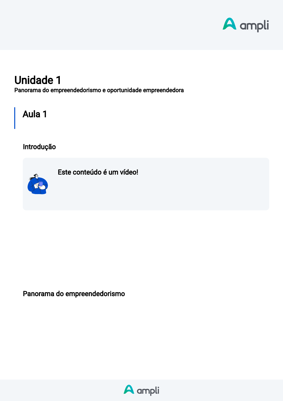 <p>Disciplina</p><p>Empreendedorismo e Inovação</p><p>Unidade 1</p><p>Panorama do empreendedorismo e oportunidade empreendedora</p><p>Aula 1</p><p>Empreendedorismo: conceitos e contexto no Brasil e no mundo</p><p>Introdução</p><p>Este conteúdo é um vídeo!</p><p>Para assistir este conteúdo é necessário que você acesse o AVA pelo computador</p><p>ou pelo aplicativo. Você pode baixar os vídeos direto no aplicativo para assistir</p><p>mesmo sem conexão à internet.</p><p>Olá, estudante, seja bem-vindo à primeira aula da disciplina Empreendedorismo e Inovação. Aqui,</p><p>você aprenderá que existem muitas de�nições para o termo empreendedorismo, mas todas tratam</p><p>essencialmente da habilidade de identi�car problemas reais da sociedade e desenvolver soluções</p><p>para esses problemas, por meio do investimento de recursos �nanceiros e não �nanceiros. Além de</p><p>ter contato com as principais de�nições, você compreenderá em detalhes a origem de cada uma</p><p>delas e como a prática do empreendedorismo no mundo in�uenciou as características do universo</p><p>empreendedor no Brasil. Após o estudo desta aula, você estará munido dos fundamentos</p><p>importantes para que possa estimular a sua motivação em encontrar boas oportunidades para</p><p>empreender com um novo negócio ou na empresa em que atua.</p><p>Panorama do empreendedorismo</p><p>Disciplina</p><p>Empreendedorismo e Inovação</p><p>Há 20 anos, o termo empreendedorismo, certamente, não seria encontrado nos principais dicionários</p><p>brasileiros. Porém, não signi�ca que na história de evolução econômica do mundo não existam</p><p>pessoas ultrapassando barreiras estruturais, comerciais e culturais para desenvolver soluções para</p><p>os grandes paradigmas da sociedade. A diferença é que, por muitos anos, no nosso país, essas</p><p>pessoas eram associadas a agentes de mudanças ou, até mesmo, desestruturadoras sociais.</p><p>Contudo, o crescimento populacional desencadeou o crescimento dos grandes centros urbanos e</p><p>evidenciou problemas ainda mais ameaçadores para a continuidade da sociedade, como o dé�cit de</p><p>moradias e a escassez da matriz energética, exigindo o desenvolvimento de soluções rápidas. Por</p><p>outro lado, a humanidade evoluiu, e o comportamento de consumo das pessoas passou a demandar</p><p>grandes transformações e experiências inovadoras ainda não atendidas com os negócios existentes.</p><p>É então que o termo empreendedorismo ganha espaço nos dicionários brasileiros, com base nos</p><p>estudos dos precursores do tema, como Joseph A. Schumpeter, Peter Drucker e Richard Cantillon, e</p><p>difundidos por Fernando Dolabela e José Dornelas.</p><p>Inicialmente, na Idade Média, empreendedorismo era um termo designado às pessoas que</p><p>gerenciavam grandes projetos de produção, por meio da utilização dos recursos disponíveis que</p><p>eram oferecidos pelo governante. Como não se tratava de recursos do próprio empreendedor, que se</p><p>limitava a gerenciar os projetos, este não assumia riscos �nanceiros.</p><p>Posteriormente, no século XVII, uma importante mudança no uso da palavra foi dada por Richard</p><p>Cantillon, economista franco-irlandês, que diferenciou o empreendedor do capitalista, sendo o</p><p>primeiro aquele que assume riscos, e o segundo, o que fornece o capital, com per�l conservador.</p><p>Durante todo esse século e no seguinte, vários economistas europeus se dedicaram ao</p><p>aprofundamento das de�nições de empreendedor e capitalista e, em todos os estudos, a de�nição</p><p>que traz a busca por riscos, reunindo capital e trabalho disponível, já aproxima as duas personas, a</p><p>do capitalista e a do empreendedor, para uma única. O resultado desta aproximação fez com que, no</p><p>Disciplina</p><p>Empreendedorismo e Inovação</p><p>período compreendido entre o �nal do século XIX e o início do século XX, o termo</p><p>empreendedorismo passasse a ser classi�cado como a prática de toda e qualquer pessoa que</p><p>gerencia ou administra uma empresa, paga os empregados, planeja e executa as ações, visando a</p><p>resultados superiores, corroborando com o capitalismo (DORNELAS, 2001).</p><p>Porém, faltava o componente da inovação para solucionar problemas e criar oportunidades para</p><p>chegarmos à de�nição atual de empreendedorismo. Então, em 1911, o economista e cientista</p><p>político austríaco Joseph Schumpeter publicou uma obra intitulada Teoria do Desenvolvimento</p><p>Econômico, na qual a de�nição atual de empreendedorismo passa a vigorar. Segundo Schumpeter</p><p>(1985), o empreendedorismo é praticado por uma pessoa que realiza novas combinações dos meios</p><p>produtivos, gerando desenvolvimento econômico, por meio da introdução de um novo bem ou</p><p>método de produção, ou ainda da abertura de um novo mercado ou da conquista de uma nova fonte</p><p>de oferta de matérias-primas ou bens semimanufaturados, entre outras possibilidades de inovação.</p><p>E é nessa de�nição que nos ancoramos no Brasil.</p><p>Desde a década de 1980, cursos de graduação e especialização começaram a oferecer disciplinas</p><p>associadas ao empreendedorismo, como “Novos Negócios” e “Criação de Empresas”, pela Fundação</p><p>Getúlio Vargas (FGV) e pela Universidade de São Paulo (USP), respectivamente. Mais recentemente,</p><p>nos anos 1990, o Serviço Brasileiro de Apoio às Micro e Pequenas Empresas (Sebrae) protagonizou a</p><p>formação de grupos de estudo na área. Mas, Fernando Dolabela, consultor e palestrante, foi o</p><p>pioneiro na difusão do movimento empreendedor nacionalmente, por meio do contato com</p><p>especialistas mundiais. A partir de então, diversos órgãos e universidades passaram a se dedicar</p><p>não só ao ensino mas também à formação de empreendedores nacionais.</p><p>Números do empreendedorismo<