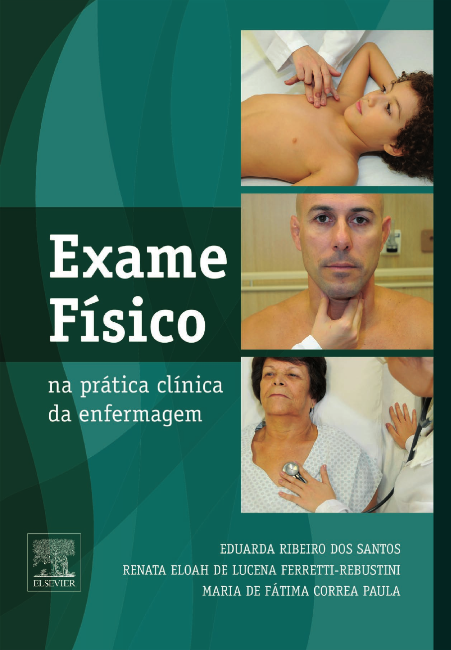<p>Exame Físico na</p><p>Prática Clínica</p><p>da Enfermagem</p><p>Exame Físico na</p><p>Prática Clínica</p><p>da Enfermagem</p><p>EDUARDA RIBEIRO DOS SANTOS</p><p>Enfermeira pela Fundação Hermínio Ometto. Residência em Enfermagem</p><p>Cardiovascular pelo Instituto Dante Pazzanese de Cardiologia. Especialista</p><p>em Enfermagem Cardiovascular pela Sociedade Brasileira de Enfermagem</p><p>Cardiovascular (SOBENC). Doutora e Mestre em Ciências pela Universidade Federal</p><p>de São Paulo – UNIFESP. Docente do Mestrado Profissional e da Graduação em</p><p>Enfermagem e Coordenadora de Pós‑Graduação da Faculdade Israelita de Ciências</p><p>da Saúde Albert Einstein</p><p>RENATA ELOAH DE LUCENA FERRETTI‑REBUSTINI</p><p>Enfermeira pela Universidade Federal de São Paulo. Especialista em Enfermagem</p><p>Geriátrica e Gerontológica pela Universidade Federal de São Paulo. Doutora em</p><p>Ciências pela Faculdade de Medicina da Universidade de São Paulo. Pós‑doutora</p><p>em Psicometria pela Universidade de Quebec em Trois‑Rivières. Professora Doutora</p><p>do Departamento de Enfermagem Médico‑Cirúrgica da Escola de Enfermagem</p><p>da Universidade de São Paulo. Coordenadora do Programa de Residência em</p><p>Enfermagem em Cardiopneumologia de Alta Complexidade da EEUSP/INCOR e</p><p>Coordenadora do Laboratório de Fisiopatologia no Envelhecimento do SGHC/LIM</p><p>22 da Faculdade de Medicina da USP</p><p>MARIA DE FÁTIMA CORREA PAULA</p><p>Enfermeira pela Escola de Enfermagem Anna Nery da Universidade Federal do</p><p>Rio de Janeiro. Especialista em Enfermagem em Terapia Intensiva pela Escola de</p><p>Enfermagem da Universidade de São Paulo. Mestre em Gerontologia pela Pontifícia</p><p>Universidade Católica de São Paulo. Doutoranda em Ciências pela Universidade</p><p>Federal de São Paulo. Docente do Curso de Graduação e Pós‑Graduação da</p><p>Faculdade Israelita de Ciências da Saúde Albert Einstein. Coordenadora de Estágio</p><p>Curricular do Curso de Graduação em Enfermagem da Faculdade Israelita de</p><p>Ciências da Saúde Albert Einstein</p><p>© 2015, Elsevier Editora Ltda.</p><p>Todos os direitos reservados e protegidos pela Lei no 9.610, de 19/02/1998.</p><p>Nenhuma parte deste livro, sem autorização prévia por escrito da editora, poderá ser reproduzida ou transmiti‑</p><p>da sejam quais forem os meios empregados: eletrônicos, mecânicos, fotográficos, gravação ou quaisquer outros.</p><p>ISBN: 978‑85‑352‑8281‑8</p><p>ISBN (versão digital) 978‑85‑352‑8377‑8</p><p>Capa</p><p>Studio Creamcrackers</p><p>Editoração Eletrônica</p><p>Arte & Ideia</p><p>Elsevier Editora Ltda.</p><p>Conhecimento sem Fronteiras</p><p>Rua Sete de Setembro, 111 – 16o andar</p><p>20050‑006 – Centro – Rio de Janeiro – RJ</p><p>Rua Quintana, 753 – 8o andar</p><p>04569‑011 – Brooklin – São Paulo – SP</p><p>Serviço de Atendimento ao Cliente</p><p>0800 026 53 40</p><p>atendimento1@elsevier.com</p><p>Consulte nosso catálogo completo, os últimos lançamentos e os serviços exclusivos no site www.elsevier.com.br.</p><p>NOTA</p><p>Como as novas pesquisas e a experiência ampliam o nosso conhecimento, pode haver necessidade de alteração dos</p><p>métodos de pesquisa, das práticas profissionais ou do tratamento médico. Tanto médicos quanto pesquisadores</p><p>devem sempre basear‑se em sua própria experiência e conhecimento para avaliar e empregar quaisquer informa‑</p><p>ções, métodos, substâncias ou experimentos descritos neste texto. Ao utilizar qualquer informação ou método,</p><p>devem ser criteriosos com relação a sua própria segurança ou a segurança de outras pessoas, incluindo aquelas</p><p>sobre as quais tenham responsabilidade profissional. Com relação a qualquer fármaco ou produto farmacêutico</p><p>especificado, aconselha‑se o leitor a cercar‑se da mais atual informação fornecida (i) a respeito dos procedimentos</p><p>descritos, ou (ii) pelo fabricante de cada produto a ser administrado, de modo a certificar‑se sobre a dose reco‑</p><p>mendada ou a fórmula, o método e a duração da administração, e as contraindicações. É responsabilidade do</p><p>médico, com base em sua experiência pessoal e no conhecimento de seus pacientes, determinar as posologias e</p><p>o melhor tratamento para cada paciente individualmente, e adotar todas as precauções de segurança apropriadas.</p><p>Para todos os efeitos legais, nem a Editora, nem autores, nem editores, nem tradutores, nem revisores ou cola‑</p><p>boradores, assumem qualquer responsabilidade por qualquer efeito danoso e/ou malefício a pessoas ou proprie‑</p><p>dades envolvendo responsabilidade, negligência etc. de produtos, ou advindos de qualquer uso ou emprego de</p><p>quaisquer métodos, produtos, instruções ou ideias contidos no material aqui publicado.</p><p>O Editor</p><p>CIP‑BRASIL. CATALOGAÇÃO‑NA‑FONTE</p><p>SINDICATO NACIONAL DOS EDITORES DE LIVROS, RJ</p><p>S233e</p><p>Santos, Eduarda Ribeiro dos</p><p>Exame físico na prática clínica da enfermagem / Eduarda Ribeiro dos Santos,</p><p>Renata Eloah de Lucena Ferretti, Maria de Fatima Correa Paula. ‑ 1. ed. ‑ Rio de</p><p>Janeiro: Elsevier, 2015.</p><p>il. ; 23 cm.</p><p>Inclui índice</p><p>ISBN 978‑85‑352‑8281‑8</p><p>1. Enfermagem. I. Título.</p><p>15‑23456 CDD: 610.73012</p><p>CDU: 616‑083</p><p>v</p><p>Colaboradores</p><p>Adriana da Silva Rodrigues. Enfermeira. Professora Visitante (Pós‑Graduação) do Insti‑</p><p>tuto Israelita de Ensino e Pesquisa do Hospital Albert Einstein. Mestre em Enfermagem</p><p>e Doutora em Ciências pela Universidade de São Paulo. Graduação e Licenciatura em</p><p>Enfermagem pela Universidade de Mogi das Cruzes. Especialização em Enfermagem</p><p>Obstétrica pela Faculdade de Ciências da Saúde São Camilo; Especialização em Admi‑</p><p>nistração Hospitalar e Sistemas de Saúd