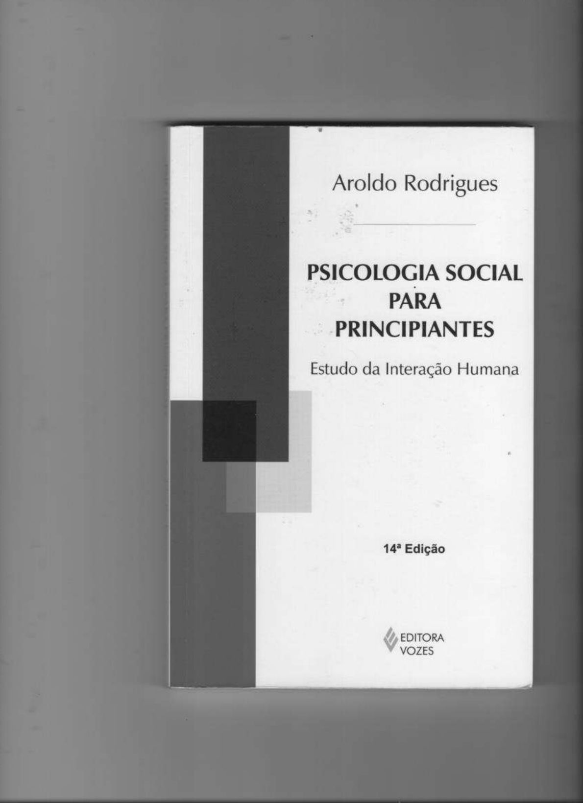 <p>Aroldo Rodrigues PSICOLOGIA SOCIAL PARA PRINCIPIANTES Estudo da Interação Humana Edição EDITORA VOZES</p><p>ABDR ASSOCIAÇÃO DE Dados Internacionais de Catalogação na Publicação (CIP) (Câmara Brasileira do Livro, SP, Brasil) Rodrigues, 1933- Psicologia social para principiantes : Estudo da interação humana Aroldo Rodrigues - 14. ed. - RJ : 2012. Bibliografia reimpressão, 2018. ISBN 978-85-326-0839-0 1. Psicologia social I. 05-1303 CDD-302 Índices para catálogo sistemático: 1. Psicologia social 302</p><p>1 Como é o "social" da psicologia social? A psicologia social e o estudo da depen- dência e da interdependência entre as pes- soas. Robert B. Zajone um estudante universitário muito preocupado com pro- blemas sociais. Pertence ao Diretório filiado a um partido de esquerda, participa ativamente de movimentos tanto no ambiente restrito da universidade como no da comunidade em que vive, e não se furta adar sua colaboração quando seu partido dele necessita para participar de atividades de estadual ou Embora não seja estudante de psicologia, Fer- nando decidiu matricular-se no curso Psicologia Social oferecide pelo departamento de psicologia de sua Seu ao não era outro senão de melhor para de- sempenho de sua atividade em geral e. mais especificamen- te, aprender a lidar com as massas e habilitar-se melhor para resol- ver os graves problemas sociais dos do Terceiro Fer- nando é uma aluno e interessado. Entretanto, após dois me- ses e meio de ele decidiu trancar a matrícula na disciplina e disse para si mesmo! "Que vim cu fazer aqui? Nunca pensei que num curso de psicologia social se pudesse passar quase três meses sem uma referência sequer aos problemas da miséria, da injustiça social, da violência urbana, da distribuição de do menor abandonado, enfim. dos graves problemas sociais que estão a exi- gir solução urgente. Não estou para saber como se formam as atrações interpessoais, nem como uma unanimidade errada influen-</p><p>cia julgamento de nem por que minhas atribuições susci- de interação social. Como esse convívio social, essa interação, não se pro- tam determinadas emoções e e muito menos para cessam num vácuo mas sim numa sociedade. com suas tradições, entender por que procuro justificar um comportamento a influências e condicionamentos é esperar-se que minhas Vou deixar este curso já, pois isto de a psicologia social possa contribuir com subsídios importantes para aqueles social não tem nada!" setores do saber cujo objeto primordial de estudo é a sociedade e não indi- A reação de Fernando é muito comum, tanto entre estudantes que ingres- víduo em sociedade e para as pessoas que se preocupam em resolver os pro- sam pela primeira vez num curso de psicologia social, como entre pessoas blemas sociais por meio de ativismo É errôneo pensar, todavia, que que procuram inteirar-se dos ensinamentos desta disciplina por meio de li- tais objetivos constituam a preocupação principal do social. vros, participação em conferências etc. Acredito mesmo que a maioria dos leitores interessados em Psicologia social para principiantes tenha uma ex- Estudando cientificamente processo de interação entre as pes- pectativa mais ou menos parecida com a de Esperam encontrar na soas, a psicologia social permite que se tenha uma melhor com- psicologia social elementos que lhes possam facilitar entendimento e a preensão do comportamento social humano. solução dos graves problemas sociais que enfrentamos na sociedade atual. Se leitor for mais paciente que o aluno de nosso exemplo acredita- mos que ele não sairá totalmente decepcionado ao concluir a leitura deste Fernando ao trancar a matrícula no curso de Psico- livro. Verá que a psicologia social pode, de contribuir para o melhor logia Social I. Embora seu não fosse exatamente que ele espera- entendimento de vários problemas sociais e até fornecer subsídios para a ao final do mesmo ele teria acumulado conhecimentos úteis para serem solução de alguns deles. Jamais todavia, receitas prontas para utilizados na ocasião oportuna. Afinal, a sociedade, apesar de não ser a soma serem seguidas de acordo com a natureza do problema a ser enfrentado. É das características das pessoas que a integram, é constituída por pessoas que preciso logo de início, de que a essência de um sobre se relacionam com outras em seu dia a dia. Entender as causas do comporta- psicologia social versará sobre a interação humana, ou seja, sobre os com- mento social e do pensamento ensejado pelo contato com os outros dei- portamentos e pensamentos ensejados pelo fato de vivermos em constante xa de ser algo muito relevante e com possibilidades de aplicações em qual- relacionamento com outras pessoas. o objeto principal da psicologia social é quer situação em que mais de uma envolvida. indivíduo em sociedade e não a sociedade propriamente dita. fato de não Não foi só do curso, que aborreceu Fernando, vivermos isoladamente mas. ao de estarmos em constante intera- levando-o a trancar a matrícula. A utilização do método ção com nossos familiares, com nossos amigos, com nossos inimigos, com com manipulação de variáveis independentes e verificação de seus efei- nossos chefes, com nossos subordinados, com nossos pares, com pessoas tos nas variáveis dependentes, seguido de análises estatísticas complica- que conhecemos bem, com pessoas que conhecemos com pessoas que das no tratamento dos dados obtidos, tal como descrito na maioria dos admiramos, com aquelas que desprezamos, com as que participam de nossos estudos reportados em aula pelo foi demais para valores, com as que a eles se a circunstância de sermos ani- Parecia que ele estava cursando uma disciplina num departamento de mais sociais que não podem prescindir do relacionamento com outro, faz naturais, na qual a matéria é manipulada pelo experimentador para a com que nosso pensamento e nosso comportamento sejam afetados por e