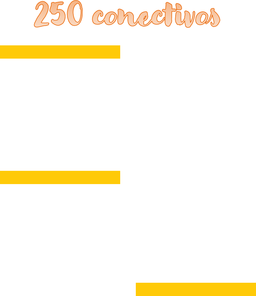 <p>PRIORIDADE, RELEVANCIA</p><p>➢ Em primeiro lugar</p><p>➢ Antes de mais nada</p><p>➢ Antes de tudo</p><p>➢ Em principio</p><p>➢ Primeiramente</p><p>➢ Acima de tudo</p><p>➢ Precipuamente</p><p>➢ Principalmente</p><p>➢ Primordialmente</p><p>➢ Sobretudo</p><p>➢ A priori</p><p>➢ A posteriori</p><p>TEMPO</p><p>➢ Então</p><p>➢ Enfim</p><p>➢ Logo</p><p>➢ Logo depois</p><p>➢ Imediatamente</p><p>➢ Logo após</p><p>➢ A principio</p><p>➢ No momento em que</p><p>➢ Pouco antes</p><p>➢ Pouco depois</p><p>➢ Anteriormente</p><p>➢ Posteriormente</p><p>➢ Em seguida</p><p>➢ Afinal</p><p>➢ Por fim</p><p>➢ Finalmente</p><p>➢ Agora</p><p>➢ Atualmente</p><p>➢ Hoje</p><p>➢ Frequentemente</p><p>➢ Constantemente</p><p>➢ ÀS vezes</p><p>➢ Eventualmente</p><p>➢ Por vezes</p><p>➢ Ocasionalmente</p><p>➢ Sempre</p><p>➢ Raramente</p><p>➢ Não raro</p><p>➢ Ao mesmo tempo</p><p>➢ Simultaneamente</p><p>➢ Nesse interim</p><p>➢ Nesse meio tempo</p><p>➢ Nesse hiato</p><p>➢ Enquanto</p><p>➢ Quando</p><p>➢ Antes que</p><p>➢ Depois que</p><p>➢ Logo que</p><p>➢ Sempre que</p><p>➢ Assim que</p><p>➢ Desde que</p><p>➢ Todas as vezes que</p><p>➢ Cada vez que</p><p>➢ Apenas</p><p>➢ Já</p><p>➢ Mal</p><p>➢ Nem bem</p><p>CONDIÇÃO, HIPOTESE</p><p>➢ Se</p><p>➢ Caso</p><p>➢ Eventualmente</p><p>➢ Desde que</p><p>➢ Ainda que</p><p>➢ Dado que</p><p>➢ A menos que</p><p>➢ A não ser que</p><p>➢ Exceto que</p><p>➢ Contanto que</p><p>➢ Pode ser que</p><p>➢ Estima-se que</p><p>➢ Somente assim</p><p>➢ Sem que</p><p>SEMELHANÇA, COMPARAÇÃO,</p><p>CONFORMIDADE</p><p>➢ Igualmente</p><p>➢ Da mesma forma</p><p>➢ Assim também</p><p>➢ Do mesmo modo</p><p>➢ Similarmente</p><p>➢ Semelhantemente</p><p>➢ Analogamente</p><p>➢ Por analogia</p><p>➢ De maneira idêntica</p><p>➢ De conformidade com</p><p>➢ De acordo com</p><p>➢ Segundo</p><p>➢ Conforme</p><p>➢ Sob o mesmo ponto de vista</p><p>➢ Tal qual</p><p>➢ Tanto quanto</p><p>➢ Como</p><p>➢ Assim como</p><p>ADIÇÃO, CONTINUAÇÃO</p><p>➢ Além disso</p><p>➢ Demais</p><p>➢ Ademais</p><p>➢ Outrossim</p><p>➢ Ainda mais</p><p>➢ Ainda por cima</p><p>➢ Por outro lado</p><p>➢ Também</p><p>➢ E</p><p>➢ Nem</p><p>➢ Não só..., mas também</p><p>➢ Não só ... como também</p><p>➢ Não apenas ... como também</p><p>➢ Não só ... bem como</p><p>➢ Como</p><p>DUVIDA</p><p>➢ Talvez</p><p>➢ Provavelmente</p><p>➢ Possivelmente</p><p>➢ Quiçá</p><p>➢ Quem sabe</p><p>➢ É provável</p><p>➢ Não é certo</p><p>➢ Se é que</p><p>CERTEZA, ENFASE</p><p>➢ De certo</p><p>➢ Por certo</p><p>➢ Certamente</p><p>➢ Indubitavelmente</p><p>➢ Inquestionavelmente</p><p>➢ Sem duvida</p><p>➢ Inegavelmente</p><p>➢ Com certeza</p><p>SURPRESA, IMPREVISTO</p><p>➢ Inesperadamente</p><p>➢ Inopinadamente</p><p>➢ De súbito</p><p>➢ Subitamente</p><p>➢ De repente</p><p>➢ Imprevisivelmente</p><p>➢ Surpreendentemente</p><p>ILUSTRAÇÃO, ESCLARECIMENTO</p><p>➢ Por exemplo</p><p>➢ Só para ilustrar</p><p>➢ Só para exemplificar</p><p>➢ Isto é</p><p>➢ Quer dizer</p><p>➢ Em outras palavras</p><p>➢ Ou por outra</p><p>➢ A saber</p><p>➢ Ou seja</p><p>➢ Alias</p><p>PROPOSITO, INTENÇÃO, FINALIDADE</p><p>➢ Com o fim de</p><p>➢ A fim de</p><p>➢ Com o propósito de</p><p>➢ Com a finalidade de</p><p>➢ Com o intuito de</p><p>➢ Para que</p><p>➢ A fim de que</p><p>➢ Para</p><p>➢ Como</p><p>LUGAR, PROXIMIDADE, DISTANCIA</p><p>➢ Perto de</p><p>➢ Próximo a/de</p><p>➢ Junto a/de</p><p>➢ Dentro</p><p>➢ Fora</p><p>➢ Mais adiante</p><p>➢ Aqui</p><p>➢ Além</p><p>➢ Acolá</p><p>➢ Lá</p><p>➢ Ali</p><p>➢ Este</p><p>➢ Esta</p><p>➢ Isto</p><p>➢ Esse</p><p>➢ Essa</p><p>➢ Isso</p><p>➢ Aquele</p><p>➢ Aquela</p><p>➢ Aquilo</p><p>➢ Ante</p><p>➢ A</p><p>SURPRESA, IMPREVISTO</p><p>➢ Ou</p><p>➢ Ou ... ou</p><p>➢ Quer ... quer</p><p>➢ Ora ... ora</p><p>➢ Seja ... seja</p><p>➢ Já ... já</p><p>➢ Nem ... nem</p><p>RESUMO, RECAPITULAÇÃO,</p><p>CONCLUSAO</p><p>➢ Em suma</p><p>➢ Em síntese</p><p>➢ Em conclusão</p><p>➢ Enfim</p><p>➢ Em resumo</p><p>➢ Portanto</p><p>➢ Assim</p><p>➢ Dessa forma</p><p>➢ Dessa maneira</p><p>➢ Desse modo</p><p>➢ Logo</p><p>➢ Pois (entre virgulas )</p><p>➢ Dessarte</p><p>➢ Destarte</p><p>➢ Assim sendo</p><p>CAUSA E CONSEQUENCIA,</p><p>EXPLICAÇÃO</p><p>➢ Por consequência</p><p>➢ Por conseguinte</p><p>➢ Como resultado</p><p>➢ Por isso</p><p>➢ Por causa de</p><p>➢ Na medida em que</p><p>➢ Em virtude de</p><p>➢ De fato</p><p>➢ Com efeito</p><p>➢ Tao (tanto, tamanho) ... que</p><p>➢ Porque</p><p>➢ Porquanto</p><p>➢ Já que</p><p>➢ Uma vez que</p><p>➢ Visto que</p><p>➢ Como (porque)</p><p>➢ Logo</p><p>➢ Que (porque)</p><p>➢ De tal sorte que</p><p>➢ De tal forma que</p><p>➢ Haja vista</p><p>➢ Pois (anteposto ao verbo)</p><p>CONTRASTE, OPOSIÇÃO, RESTRIÇÃO</p><p>➢ Pelo contrario</p><p>➢ Em contraste com</p><p>➢ Salvo</p><p>➢ Exceto</p><p>➢ Menos</p><p>➢ Mas</p><p>➢ Contudo</p><p>➢ Todavia</p><p>➢ Entretanto</p><p>➢ No entanto</p><p>RESSALVA</p><p>➢ Embora</p><p>➢ Apesar de</p><p>➢ Ainda que</p><p>➢ Mesmo que</p><p>➢ Posto que</p><p>➢ Posto</p><p>➢ Conquanto</p><p>➢ Se bem que</p><p>➢ Por mais que</p><p>➢ Por menos que</p><p>➢ Só que</p><p>➢ Ao passo que</p><p>PROPORCIONALIDADE</p><p>➢ À proporção que</p><p>➢ À medida que</p><p>➢ Ao passo que</p><p>➢ Quanto mais</p><p>➢ Quanto menos</p>